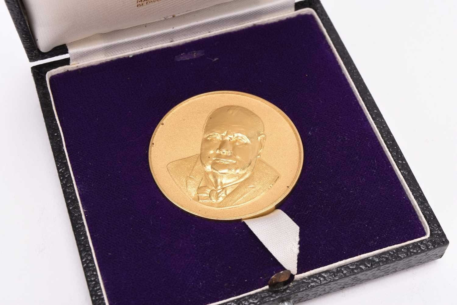 Sir Winston Churchill, 1874-1965 22ct gold commemorative medal, diam: 38mm, limited edition no. 459/1000, within case and with a certificate of authenticity, weight approx 41.2g