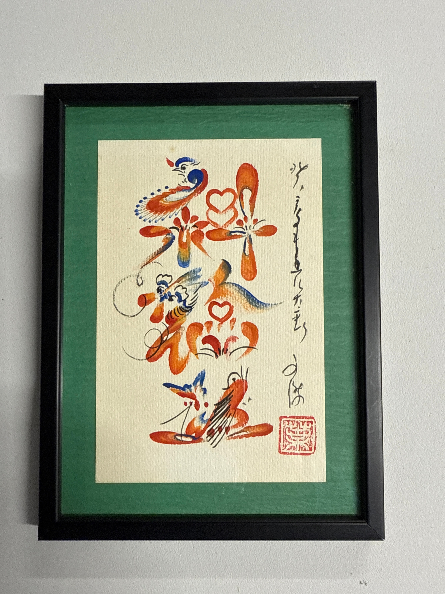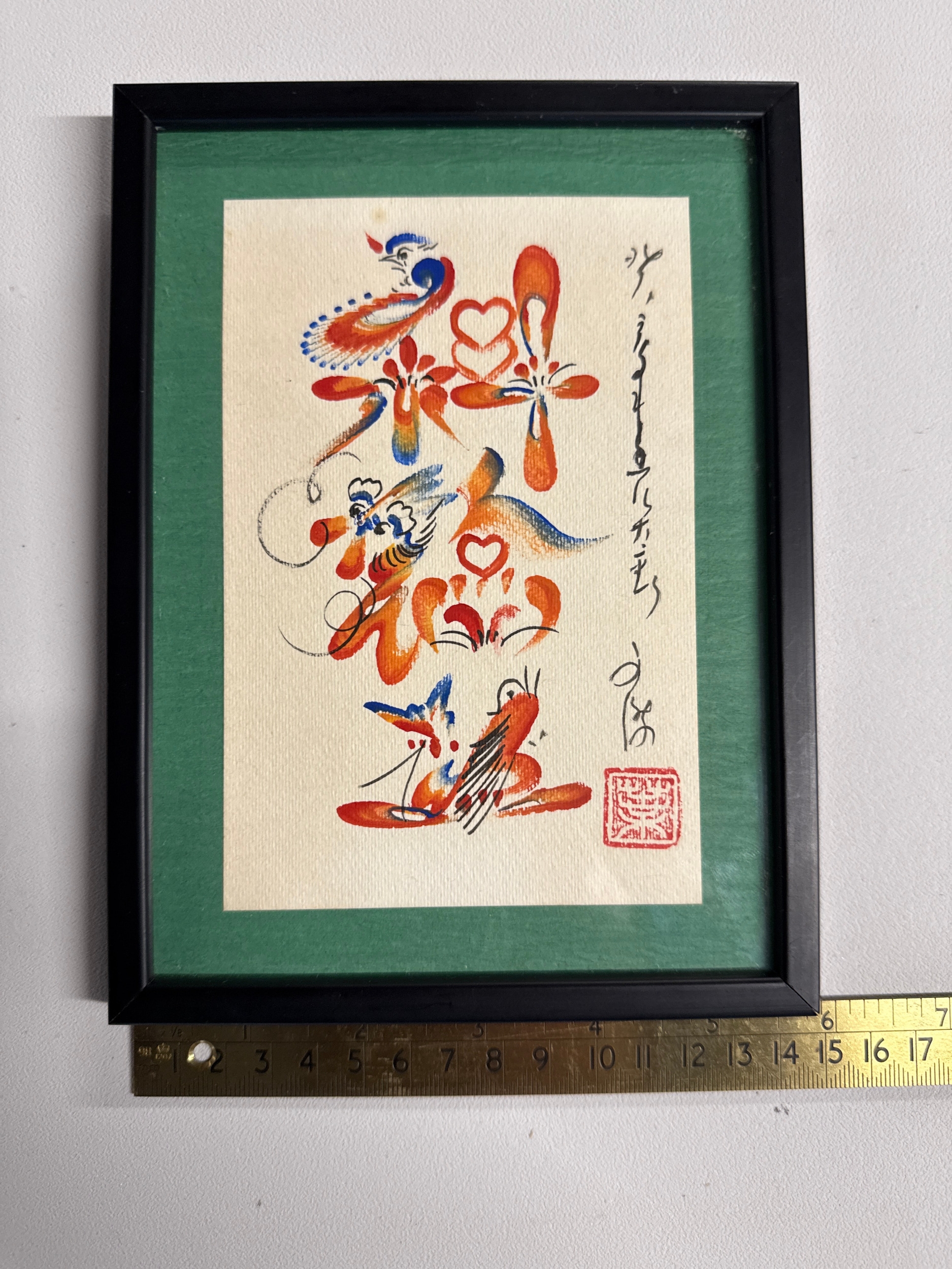 Framed Chinese Calligraphy Artwork, 'Double Happiness' Character