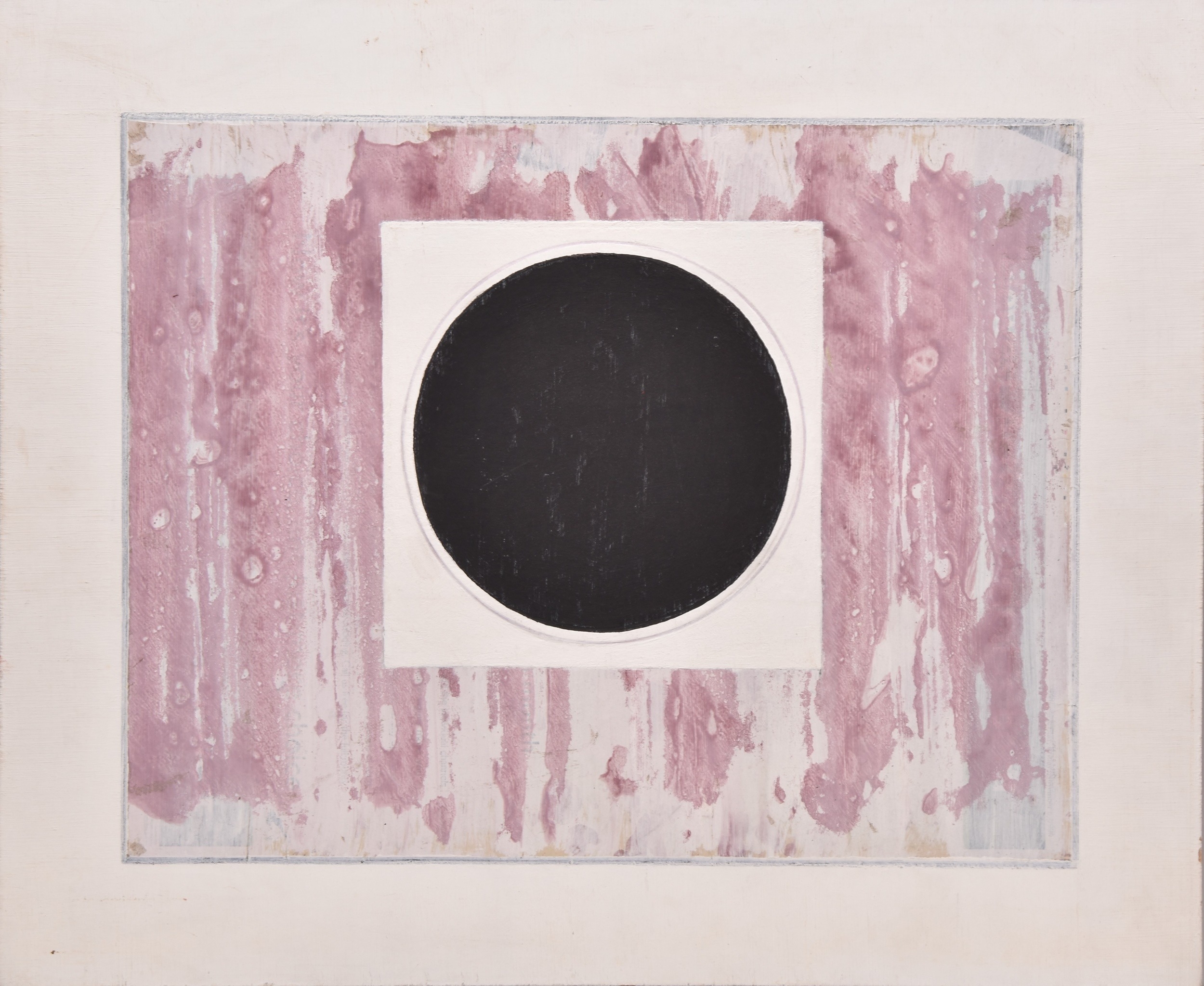 George Holt (British 1924-2005) Abstract composition in pink and black, signed and dated 2001/2 to verso, mixed media on board, 45 x 54.5 cm George Holt was a West Midlands artist who is best known for his abstract works. Holt found inspiration in the works of the St Ives School artists and preferred to compose directly onto the canvas and react to and be stimulated by the experience and process of creating the work. He began his career in design having been apprenticed as a draftsman and became a Senior Lecturer at the Wolverhampton Technical College. He was a member of the Eagle Works Artist's Group in Wolverhampton and exhibited widely throughout the West Midlands throughout his career.