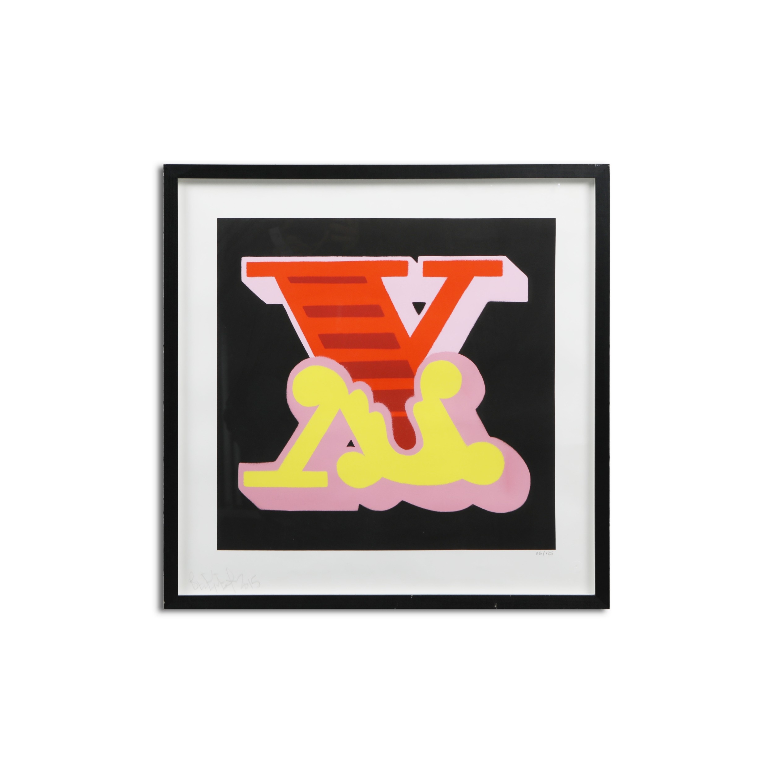 BEN EINE (BRITISH B. 1970). LETTER X. screen print in colour, 2015 signed, dated and numbered from an edition of 116/125 in pencil, framed and glazed, 57.5 cm H x 57.5 cm W (framed).