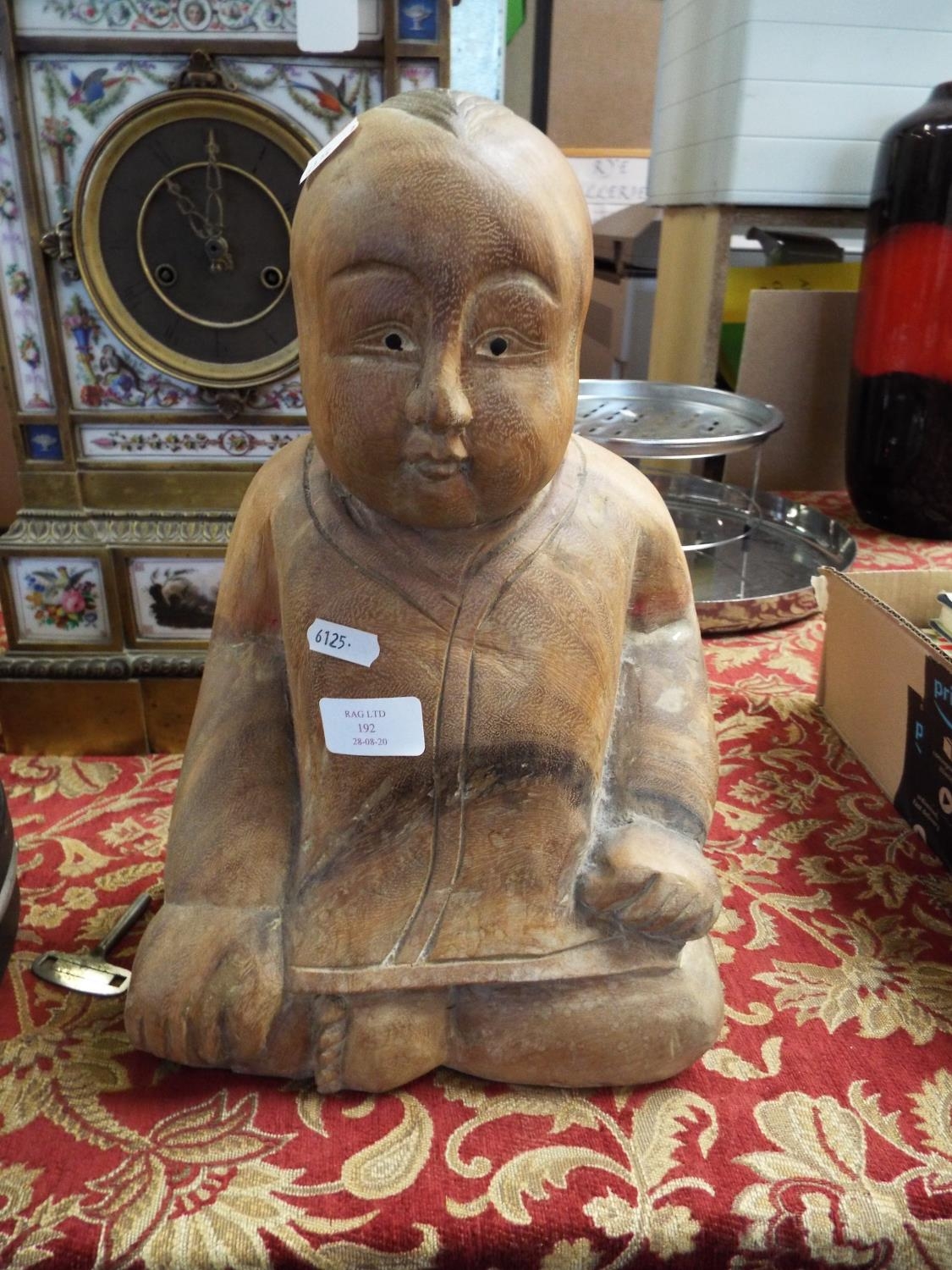 A carved hardwood Oriental seated gent
