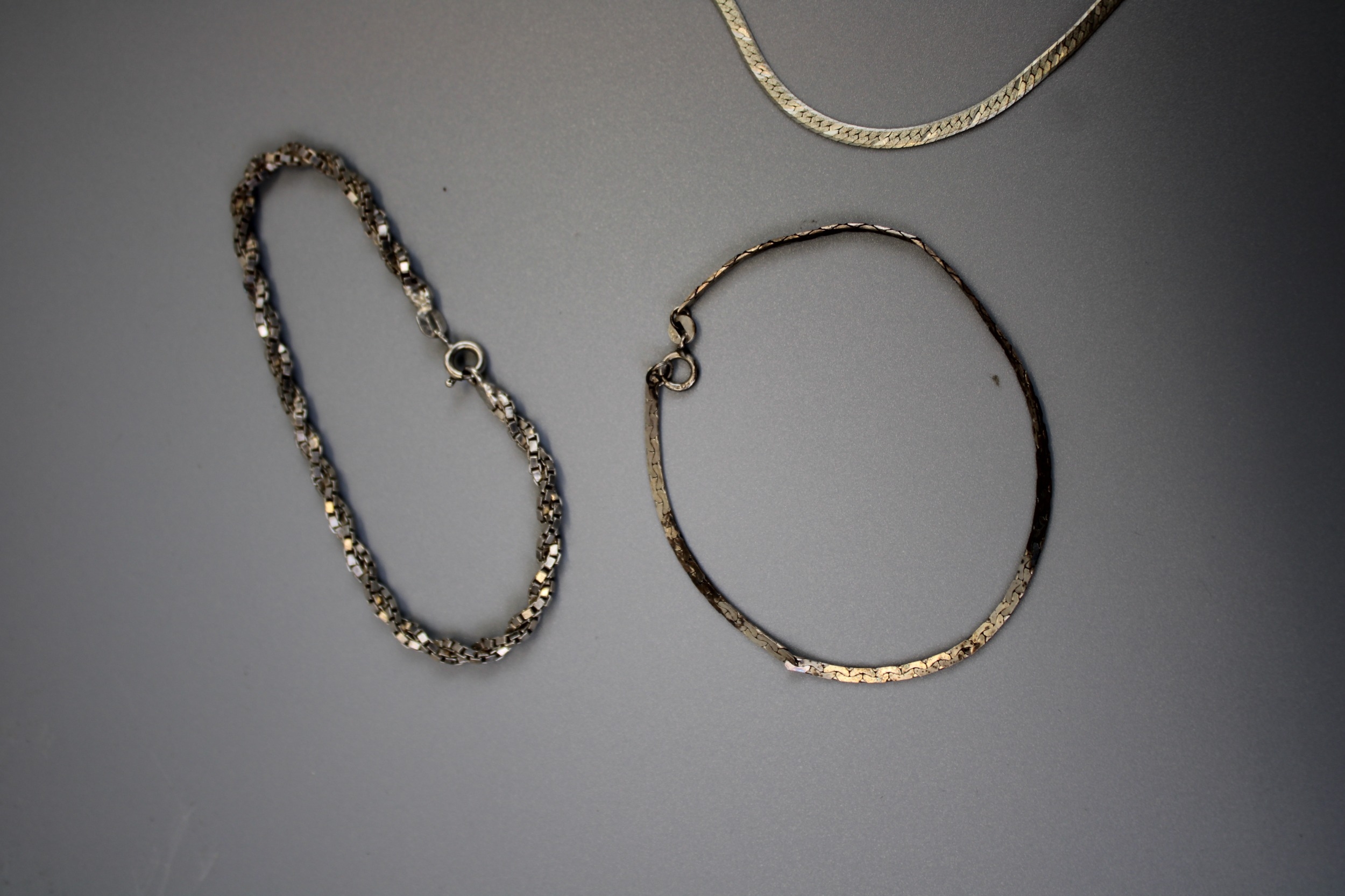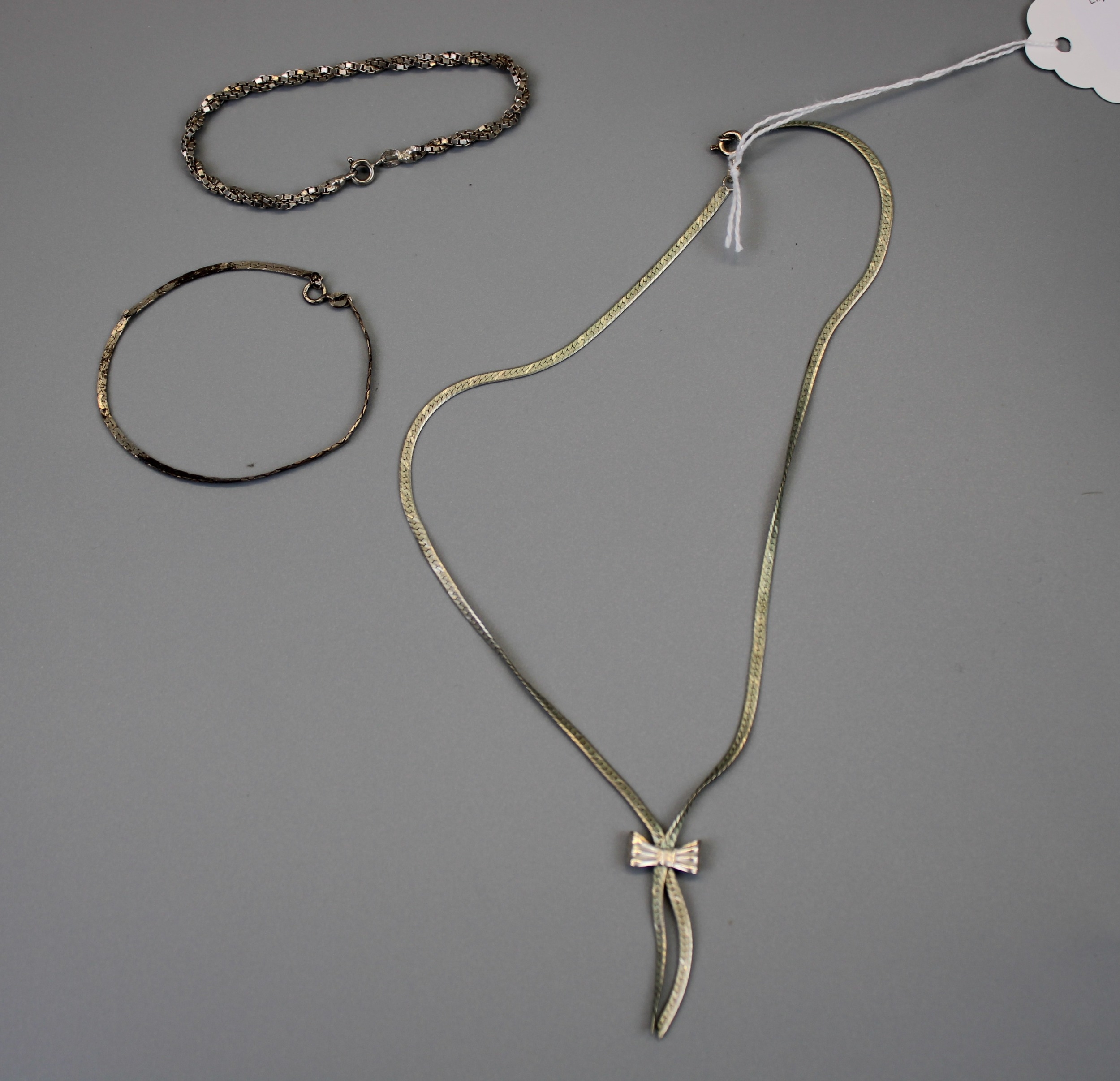 2 Vintage Silver Bracelets & a Silver Chain with Bow Detail Approx. Weight 15g