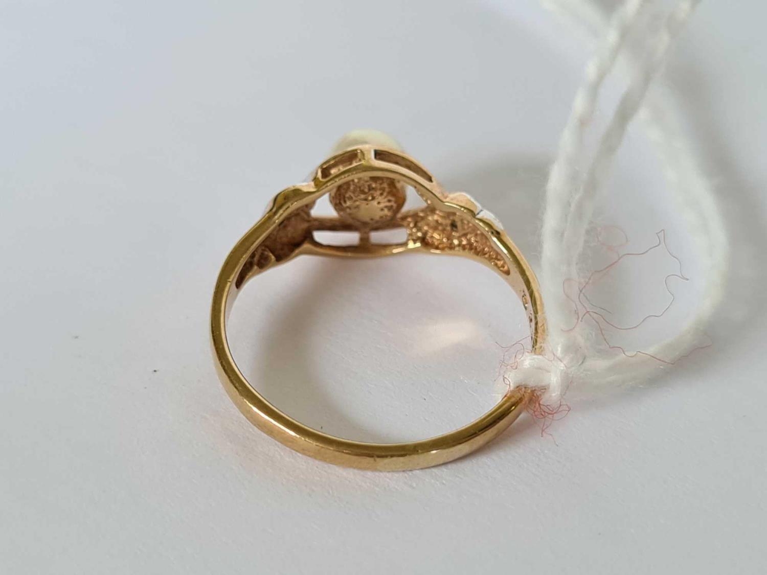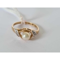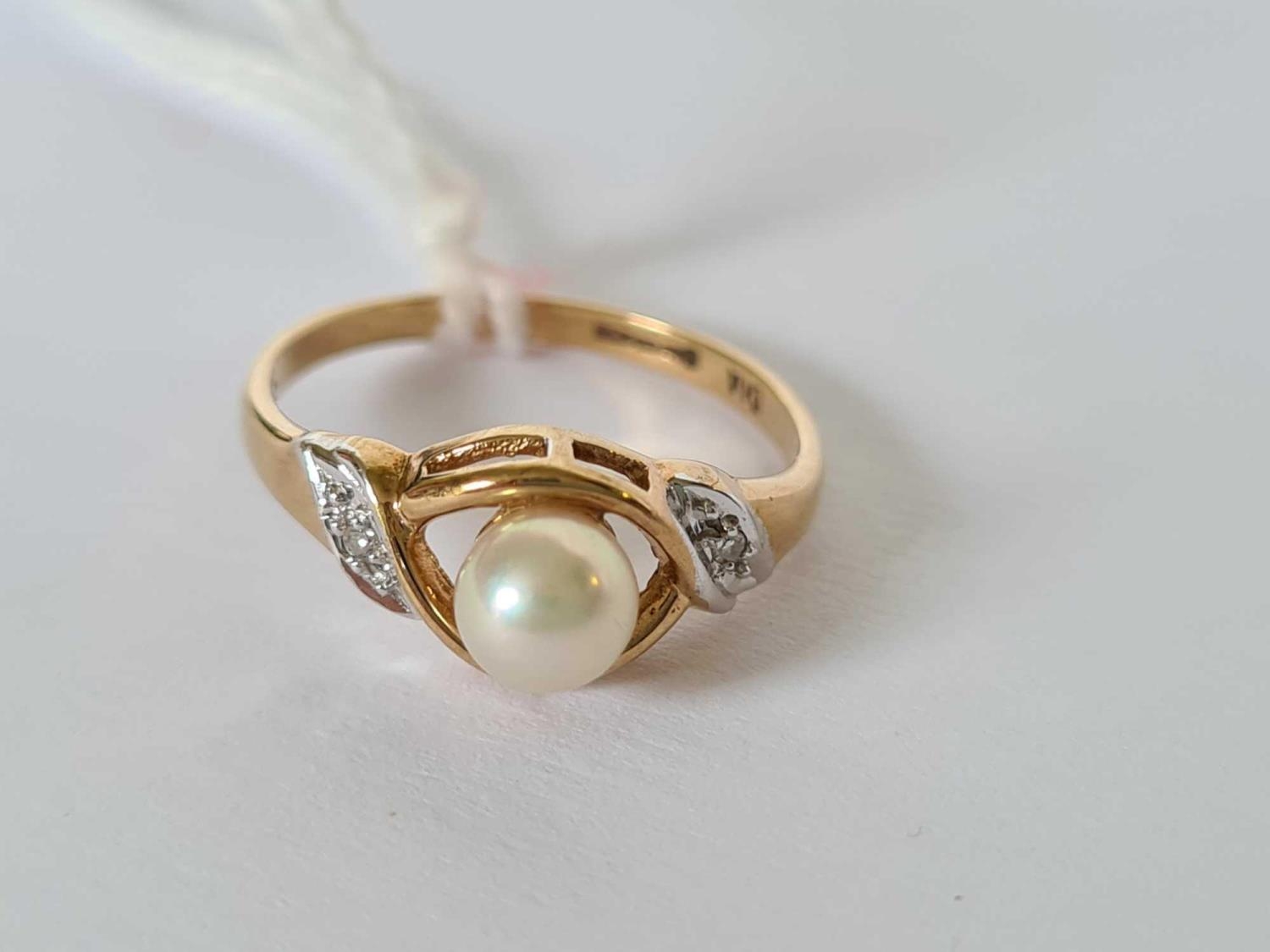 A pearl and diamond ring 9ct size I 1/2 - 1.5 gms