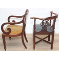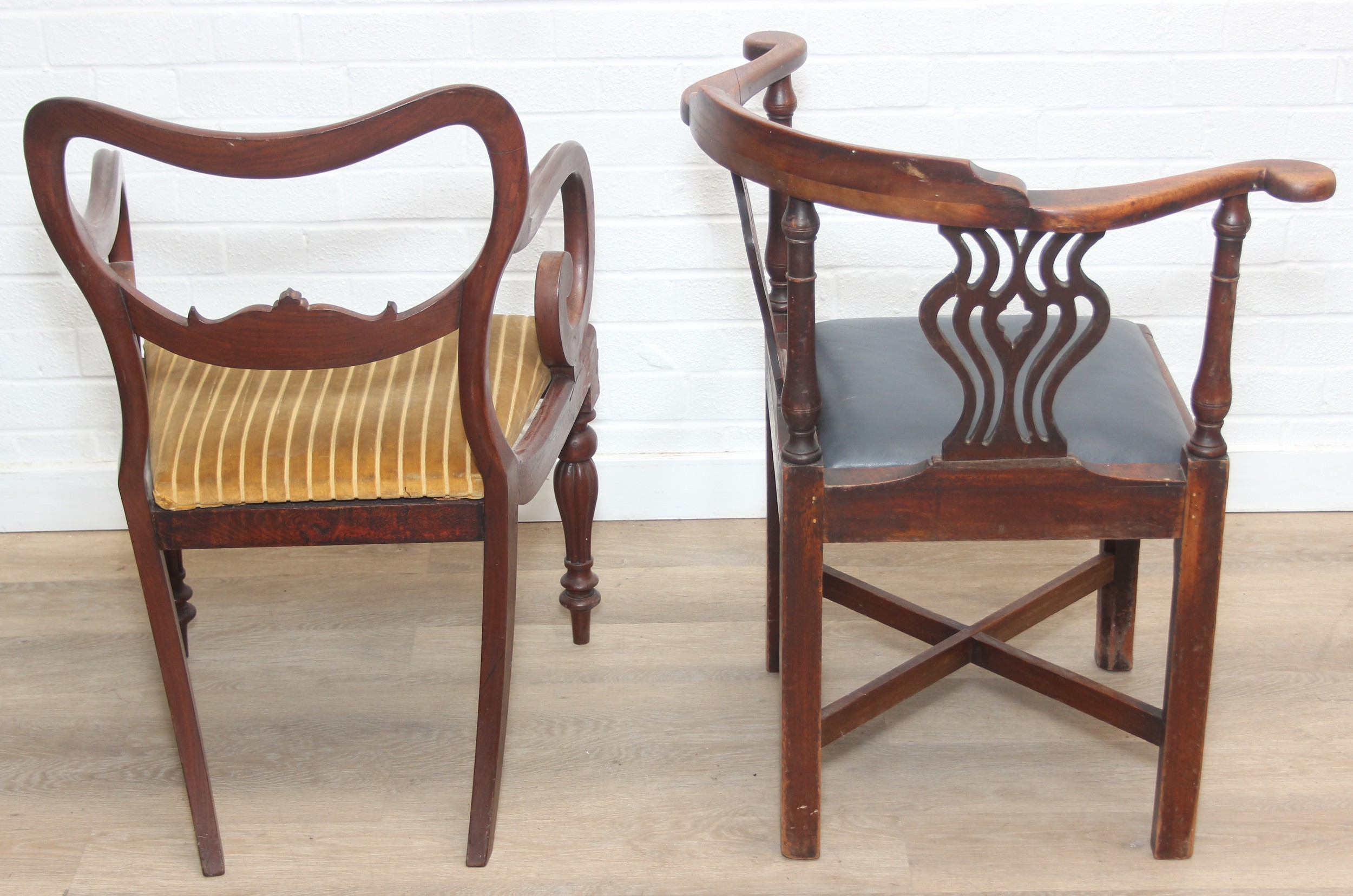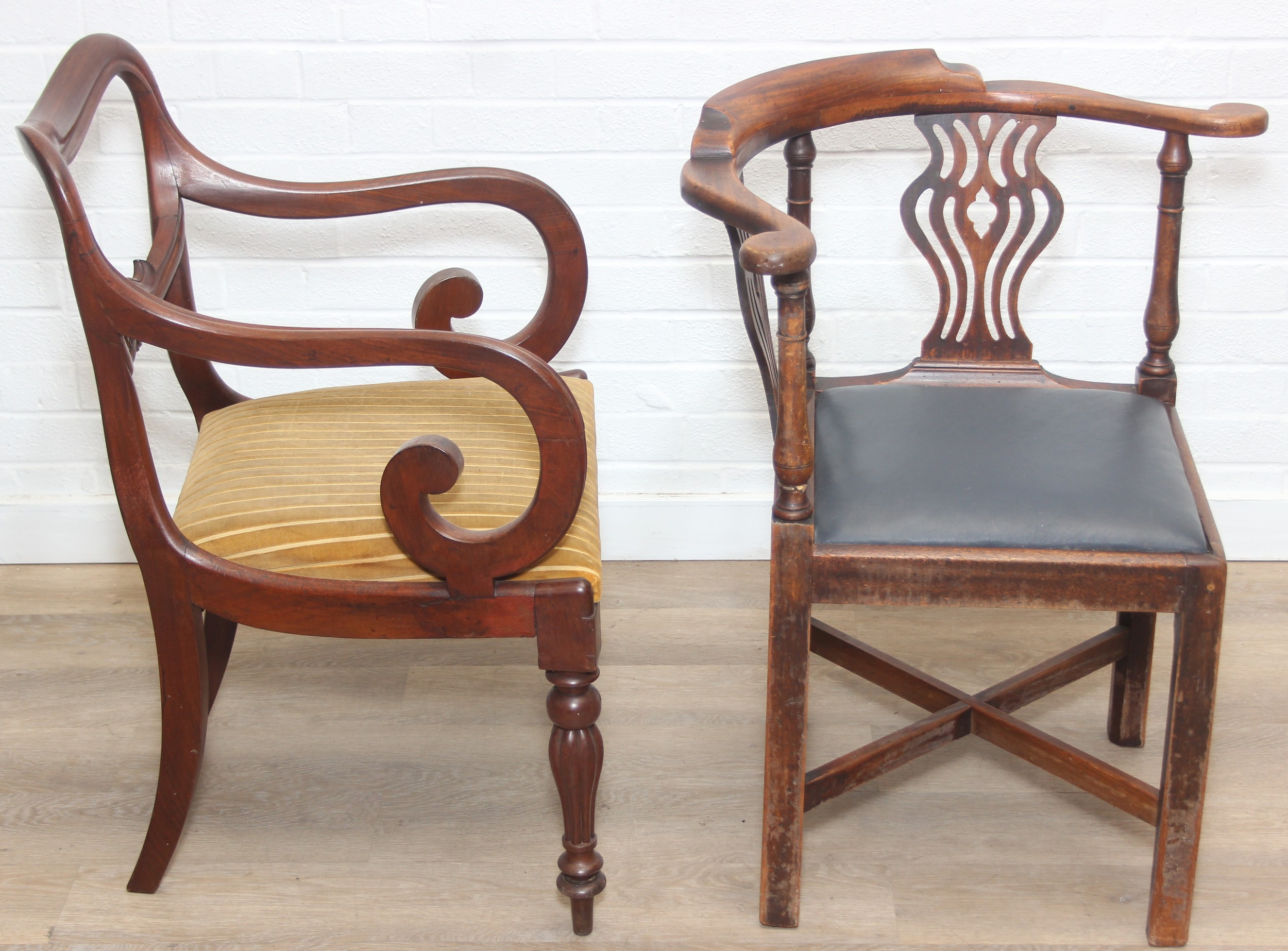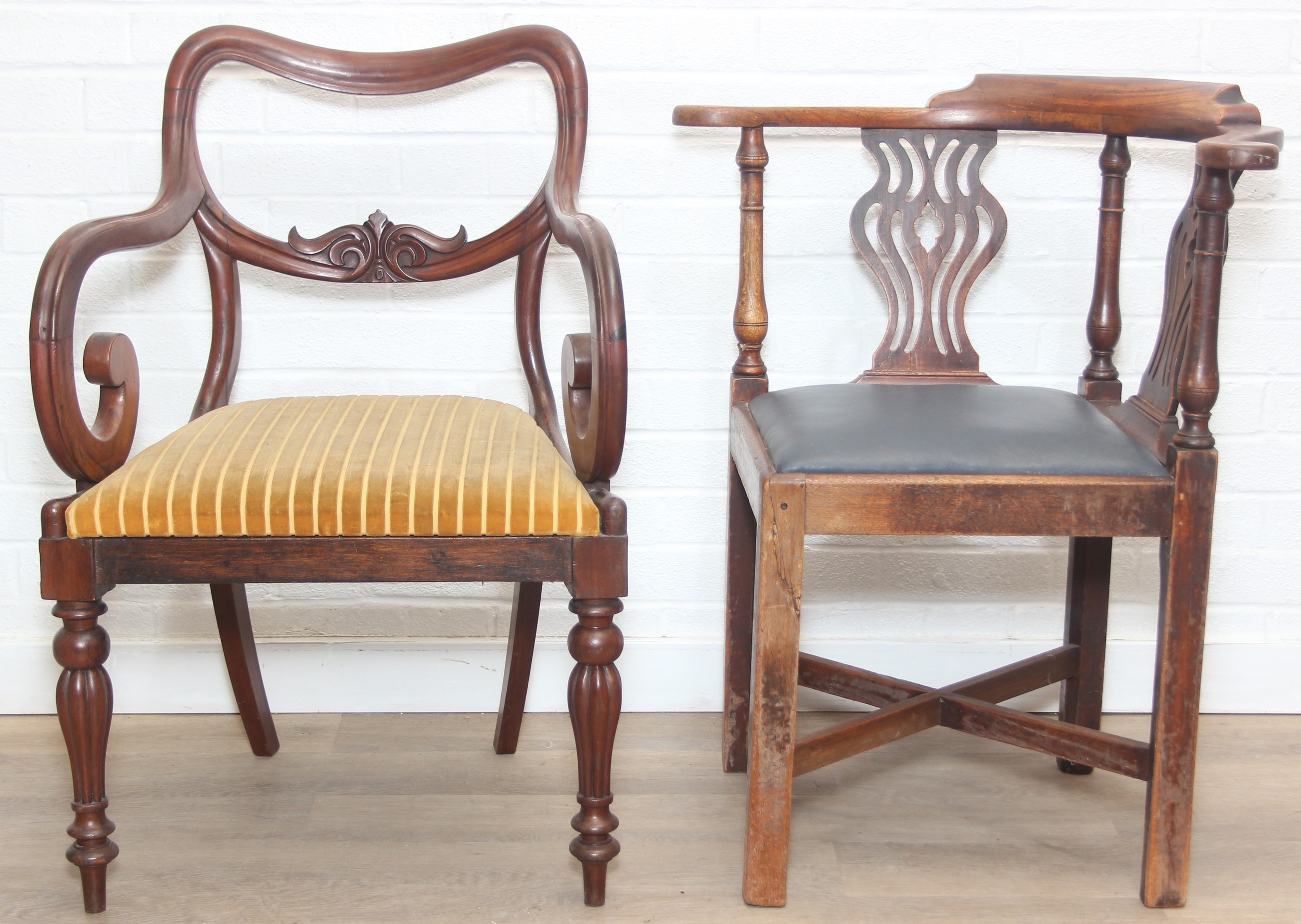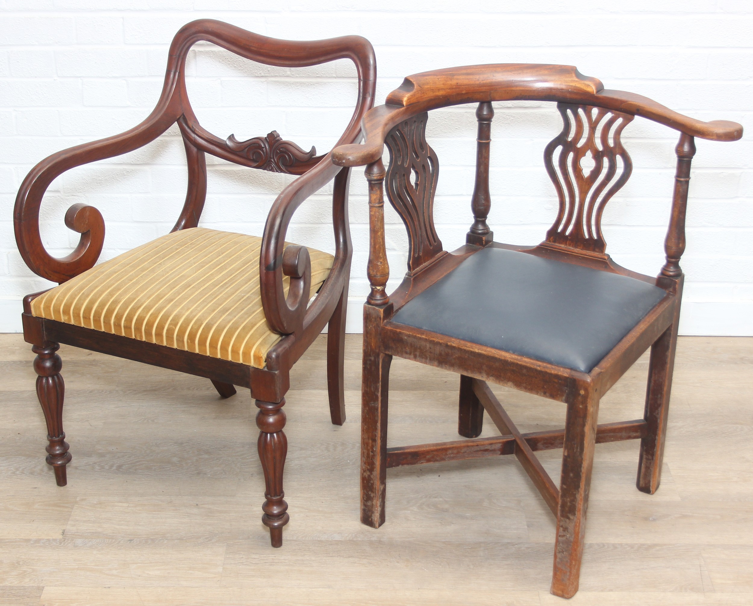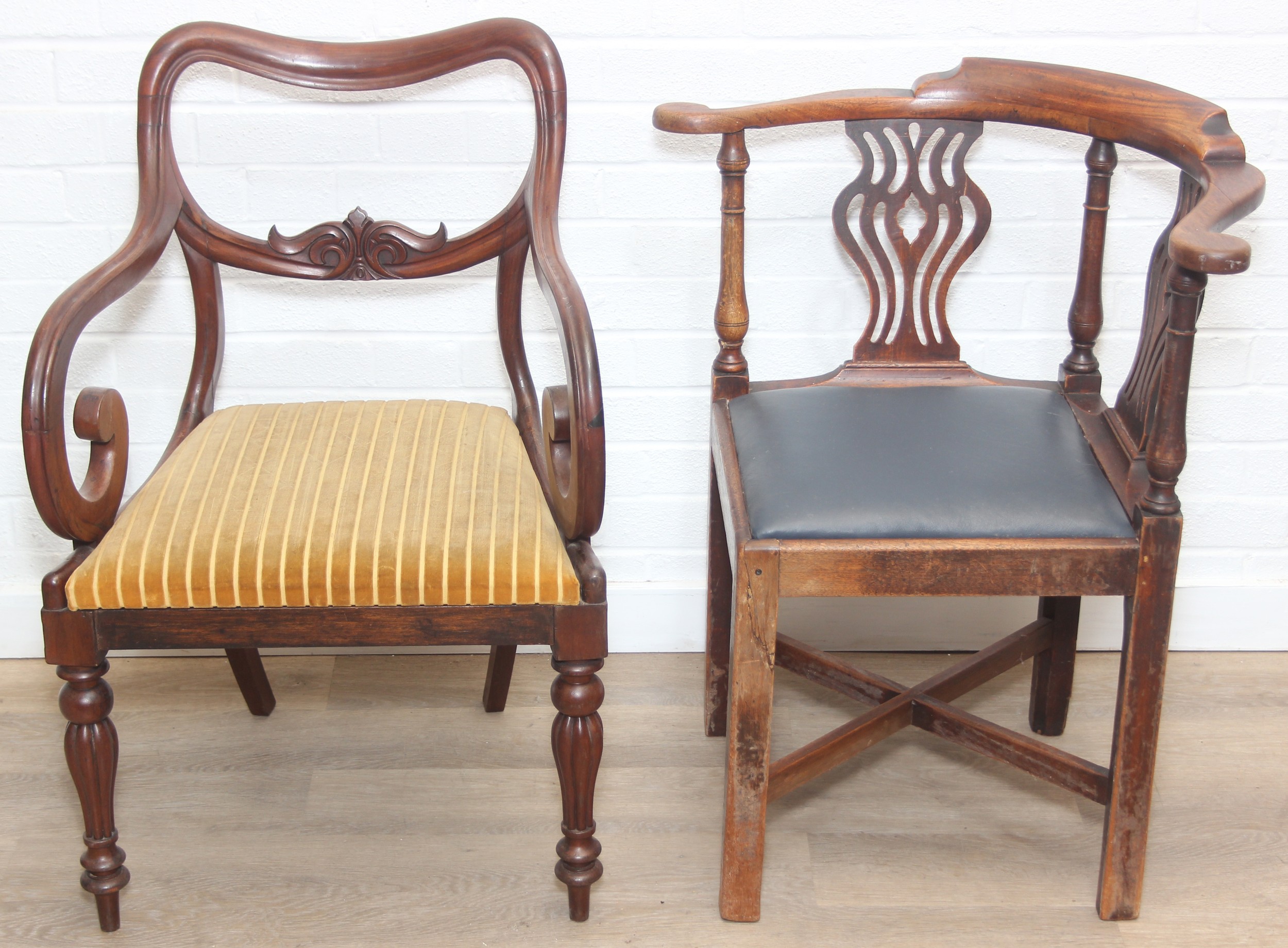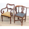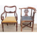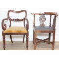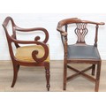 Two antique chairs, a mahogany carver chair and an antique mahogany corner chair, both 19th century [2]