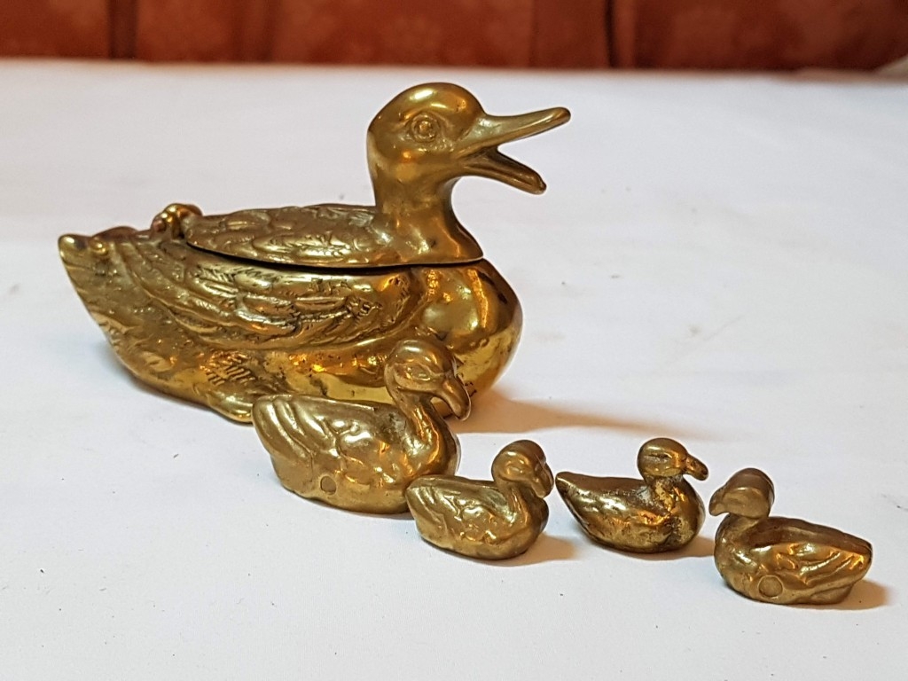 1940’s Duck shaped brass ashtray with 4 brass ducklings – 12 cm long (5 pcs)