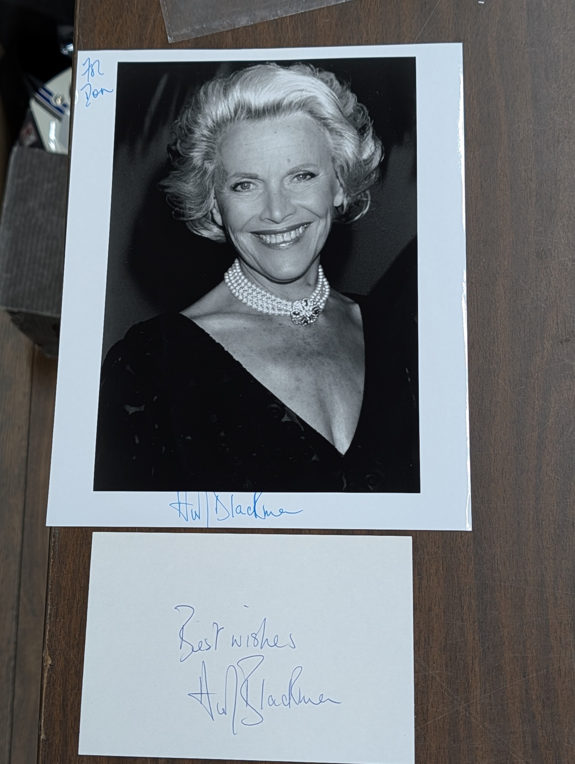 Two Honor Blackman Autographed Items: Inscribed 8x10 Photograph and Signed Note Card