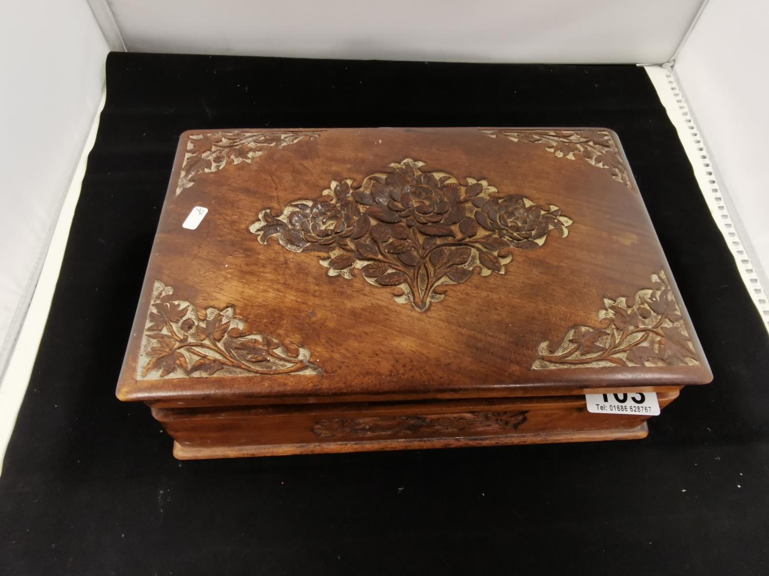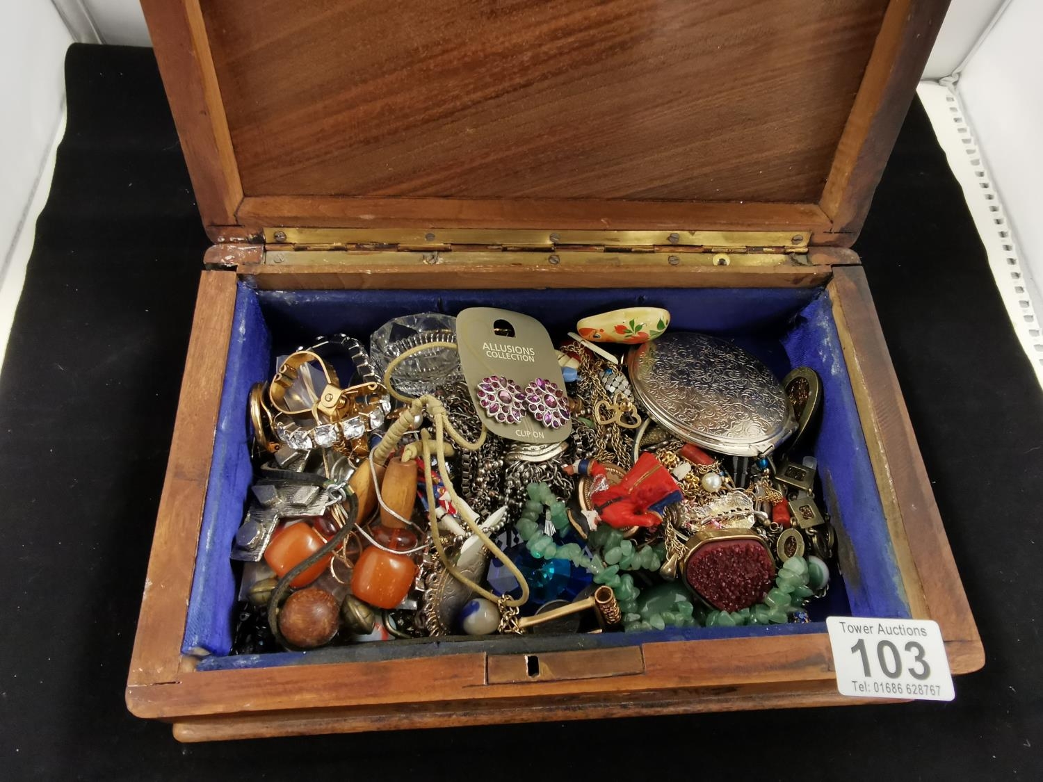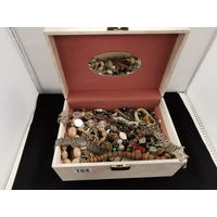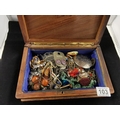 Carved Wooden Box Containing Quantity of Costume Jewellery