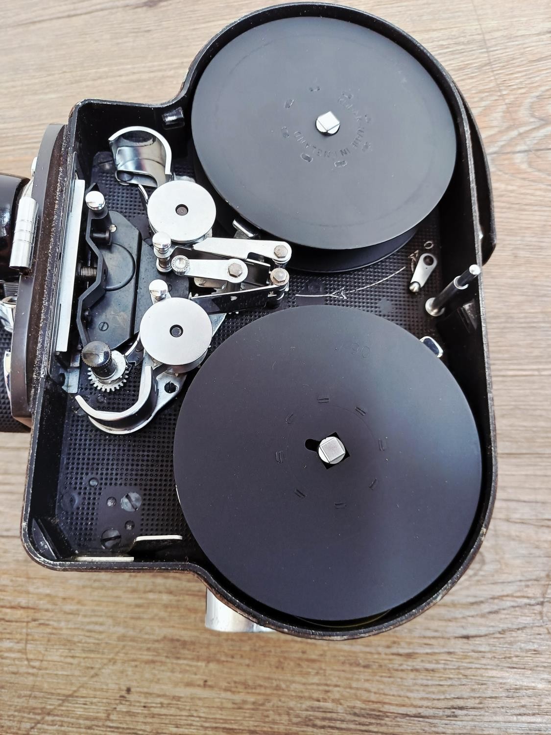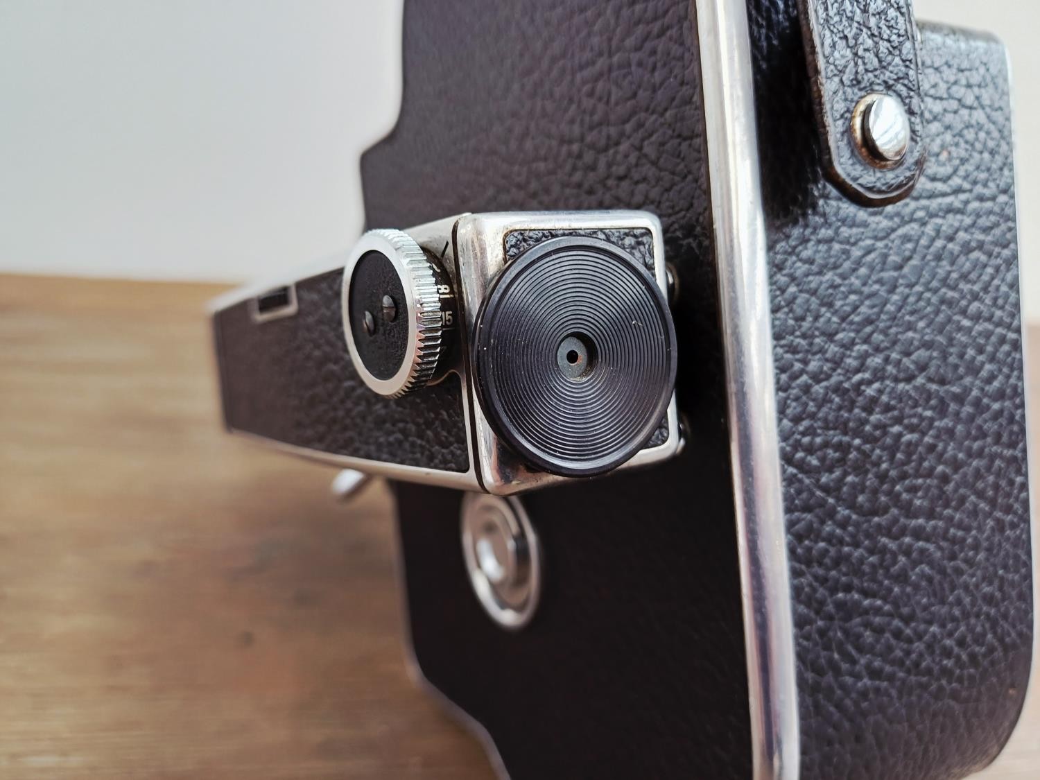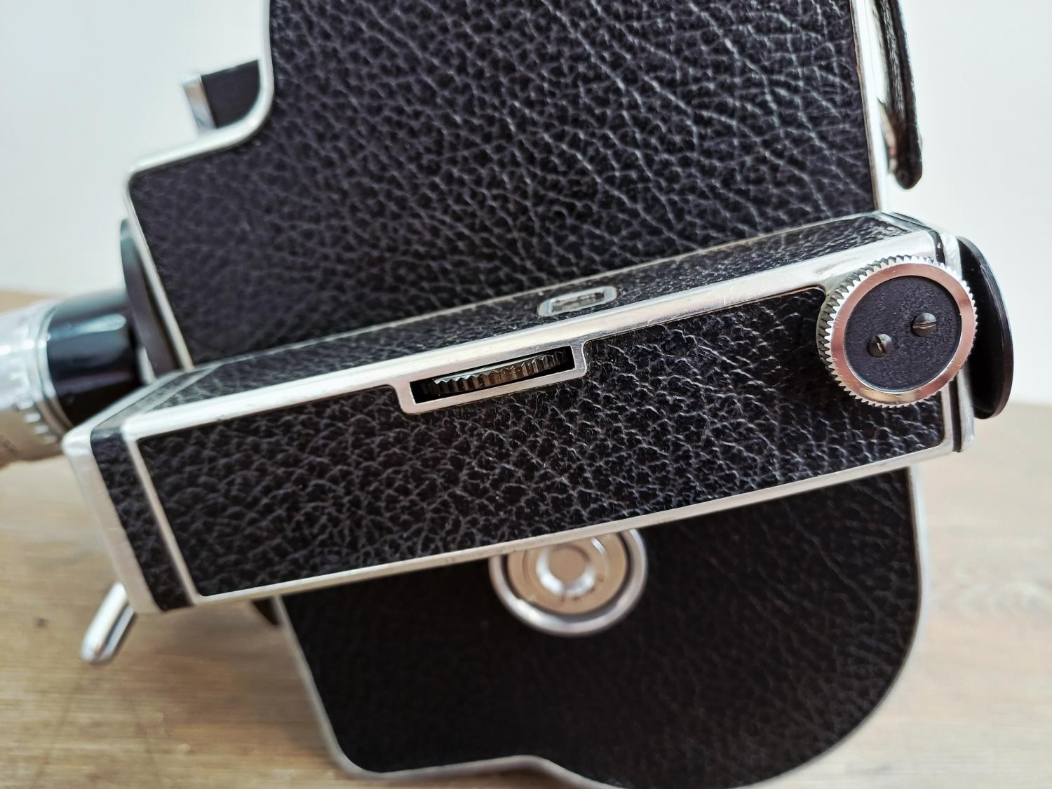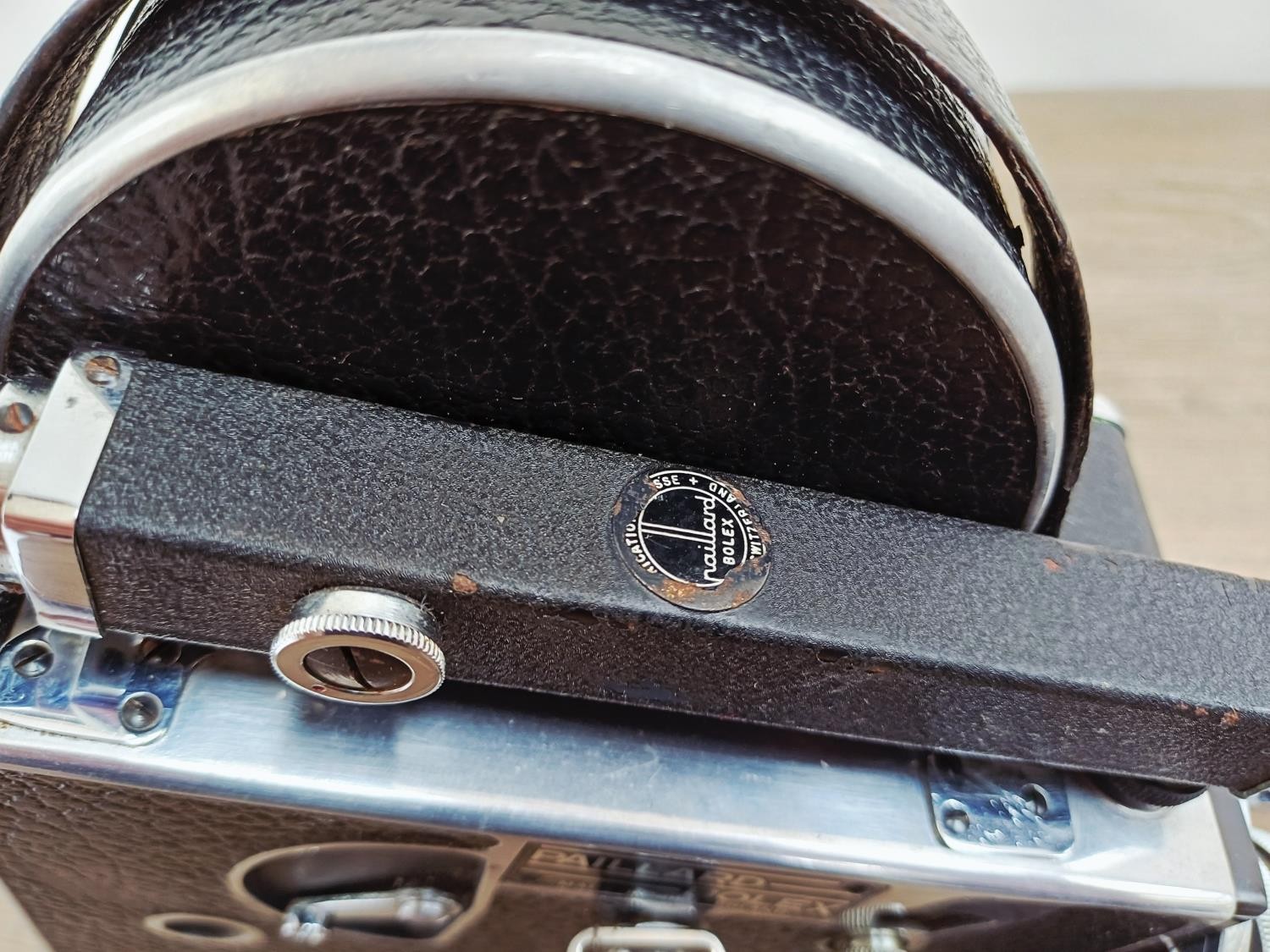 A c.1957 Paillard Bolex H16 Supreme 16mm cine camera with lens turret fitted with Cosmicar Television 1:1.5 8.5mm, Switar AR 1:1.4 25mm and Elgeet Cine-Tel 1:2.9 3" lenses