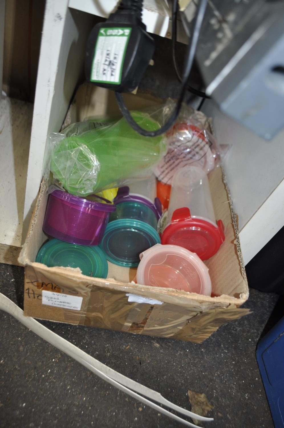 A QUANTITY OF PLASTIC DRINKING VESSELS, SEALED CONTAINERS, SOME NEW