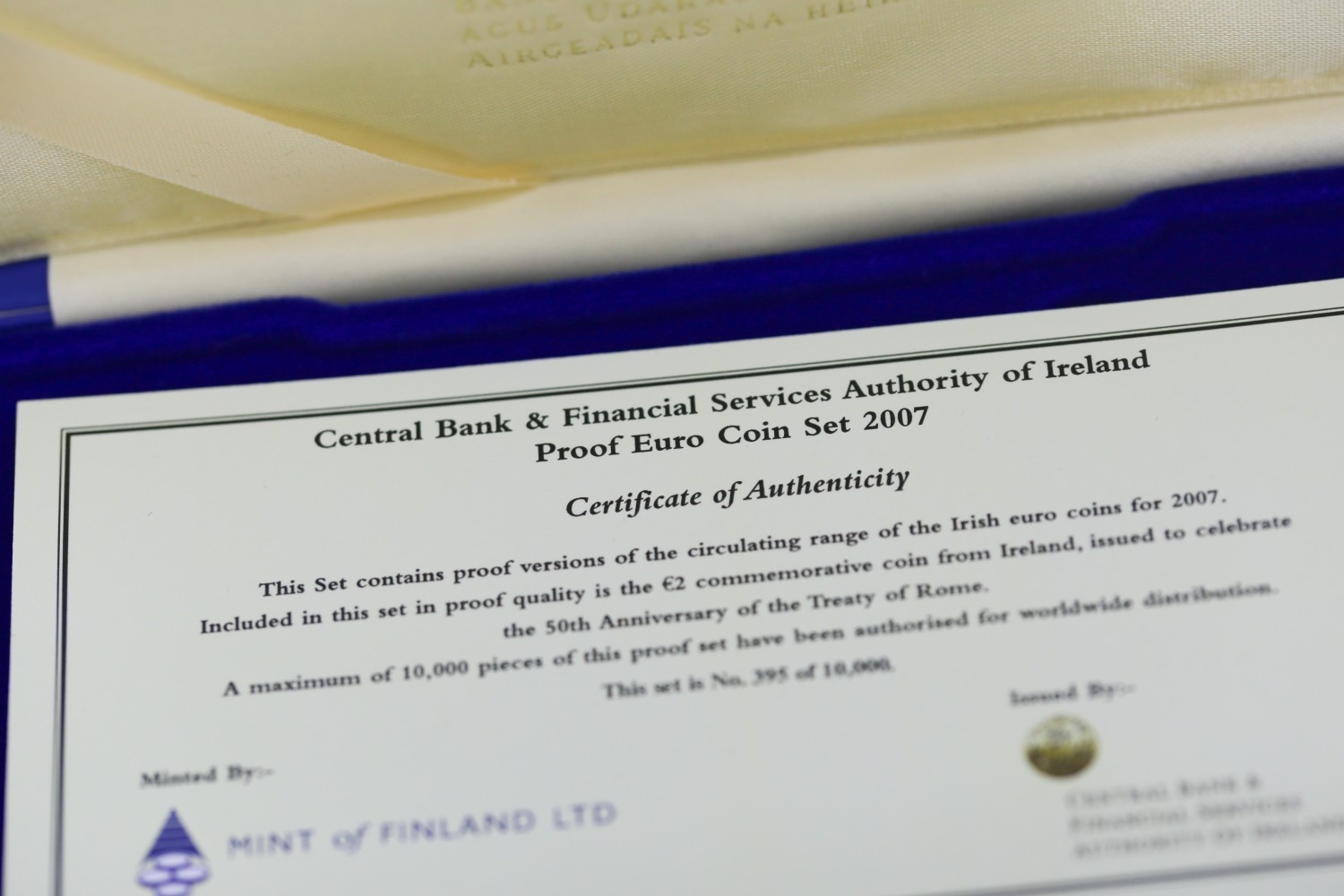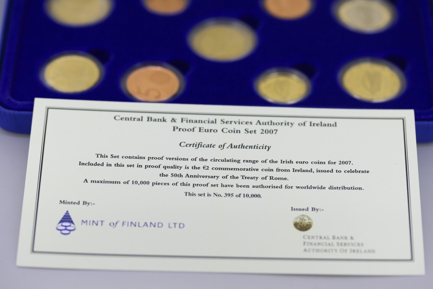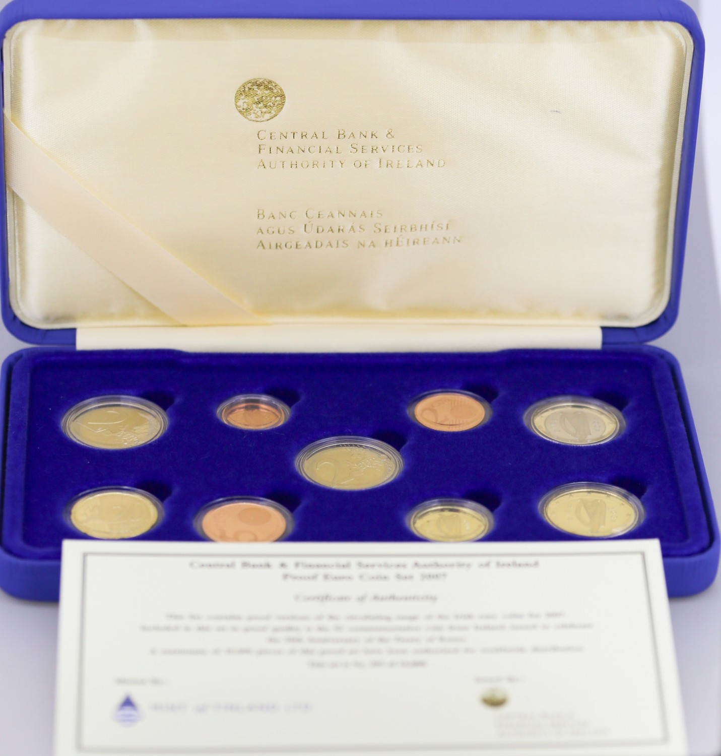 Central Bank and Financial Serviced Authority of Ireland Proof Euro Coin Set Dated 2007 Encapsulated with Original Presentation Case and Certificate