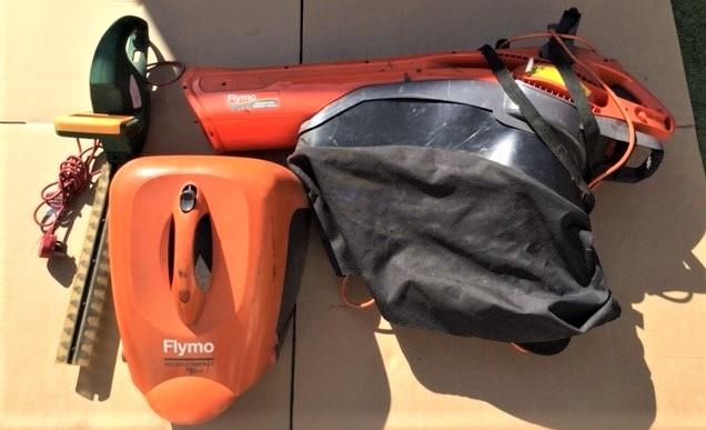 FLYMO GARDEN VAC 220W TURBO, HEDGE CUTTER & FLYMO COMPACT GRASS BOX