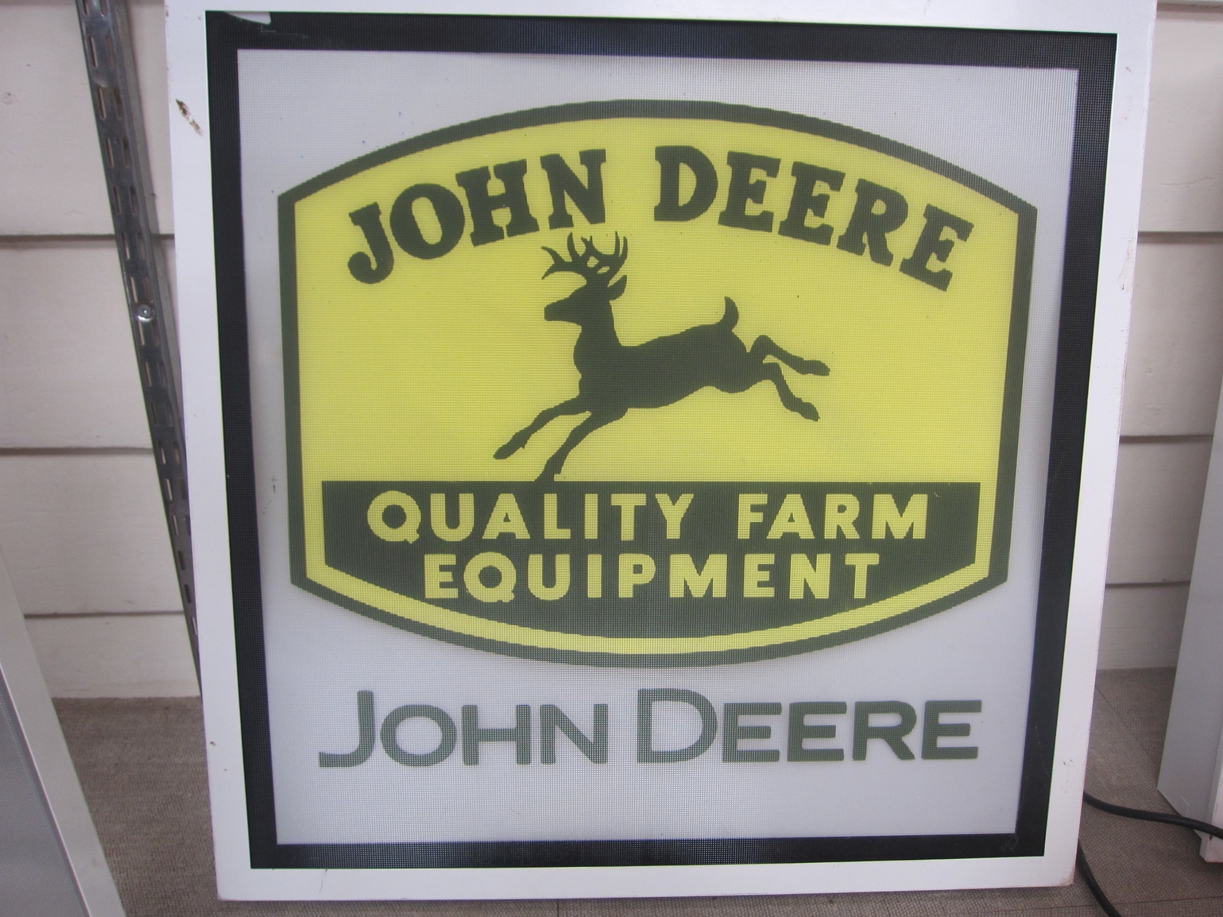 A Light-up advertising box with John Deere Quality Farm Equipment detailing. 58.5cm x 58.5cm. DTI FAILURE: Please see our information pages