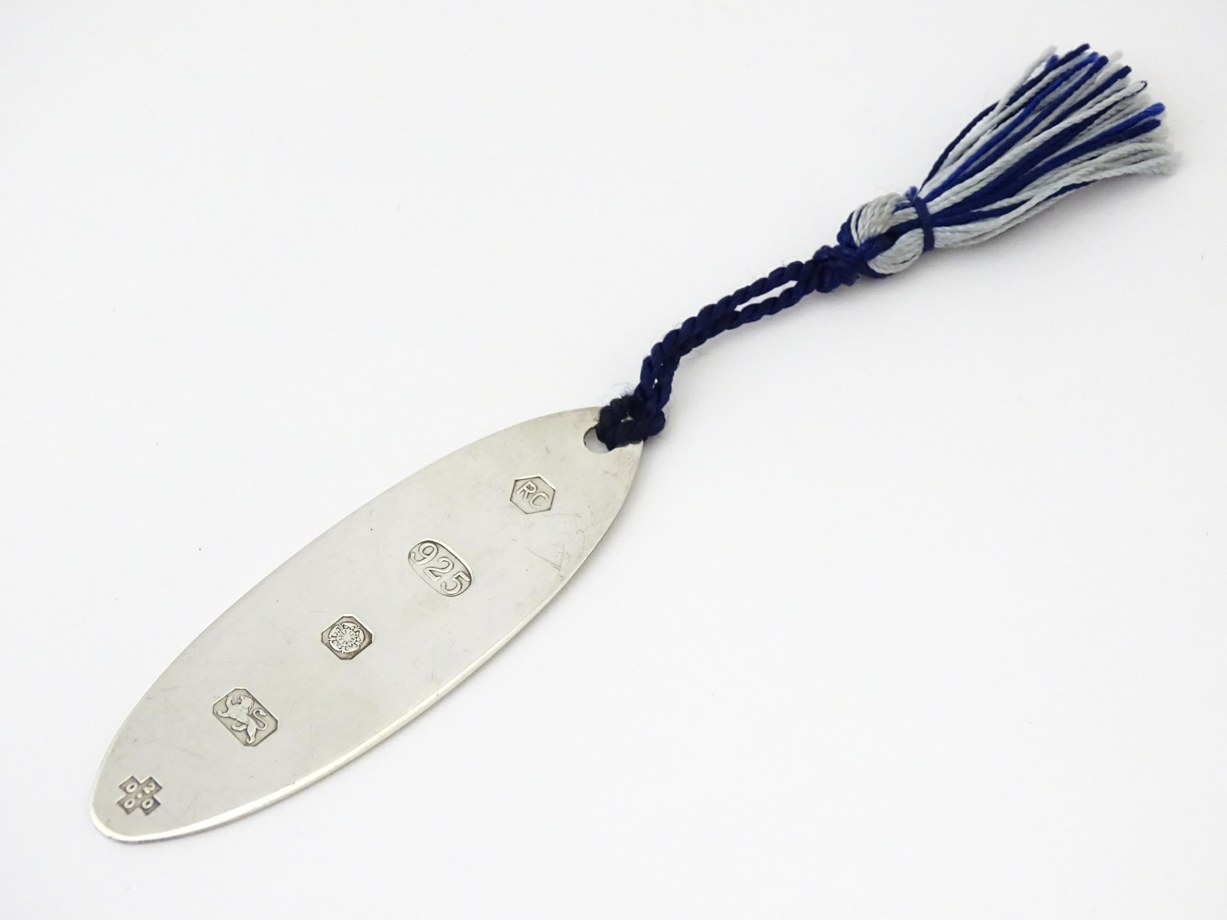 A silver bookmark, hallmarked Sheffield 2000, maker Carrs of Sheffield. Approx. 3 1/4" long