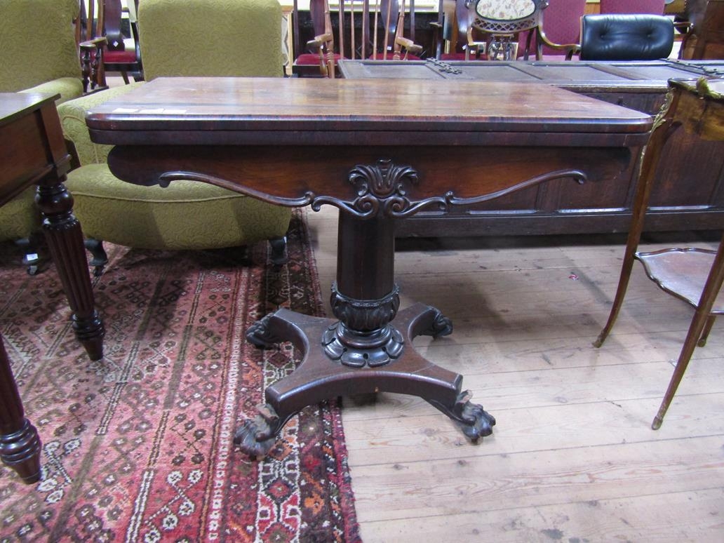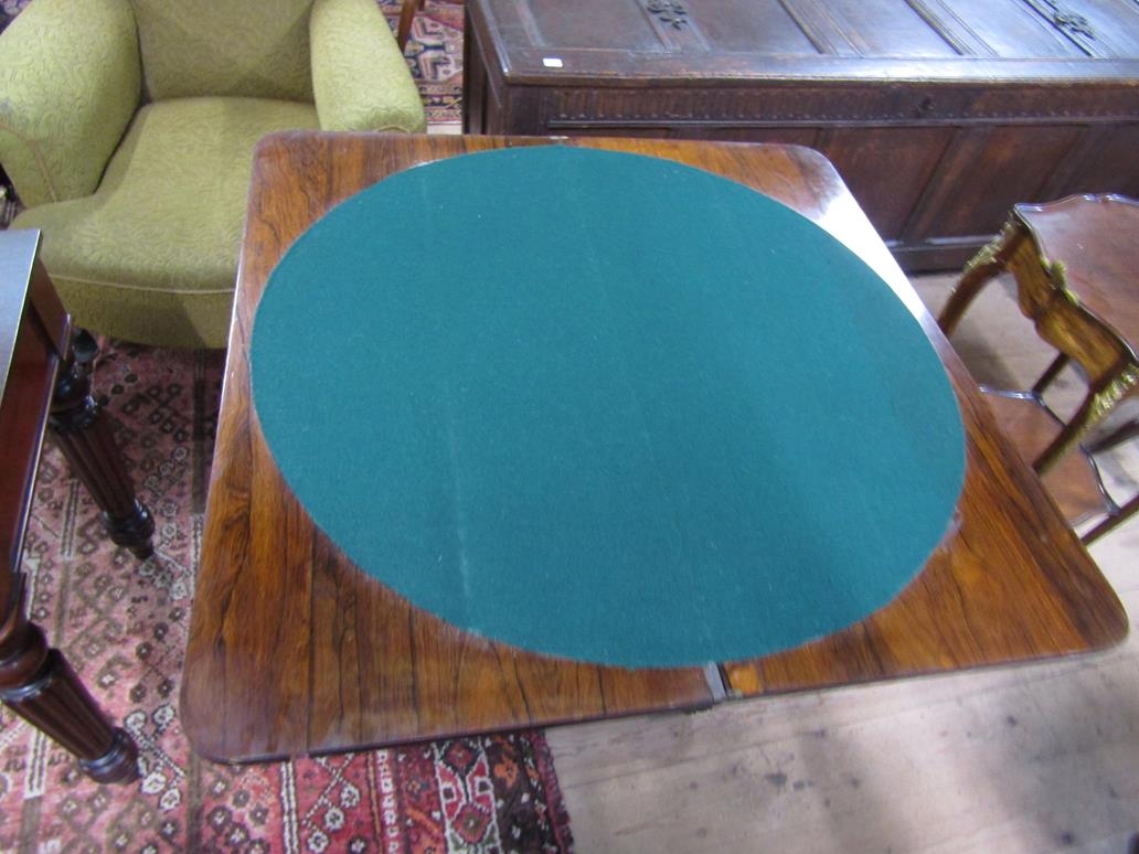 WILLIAM IV ROSEWOOD FOLD OVER CARD TABLE 73 x 92 cms