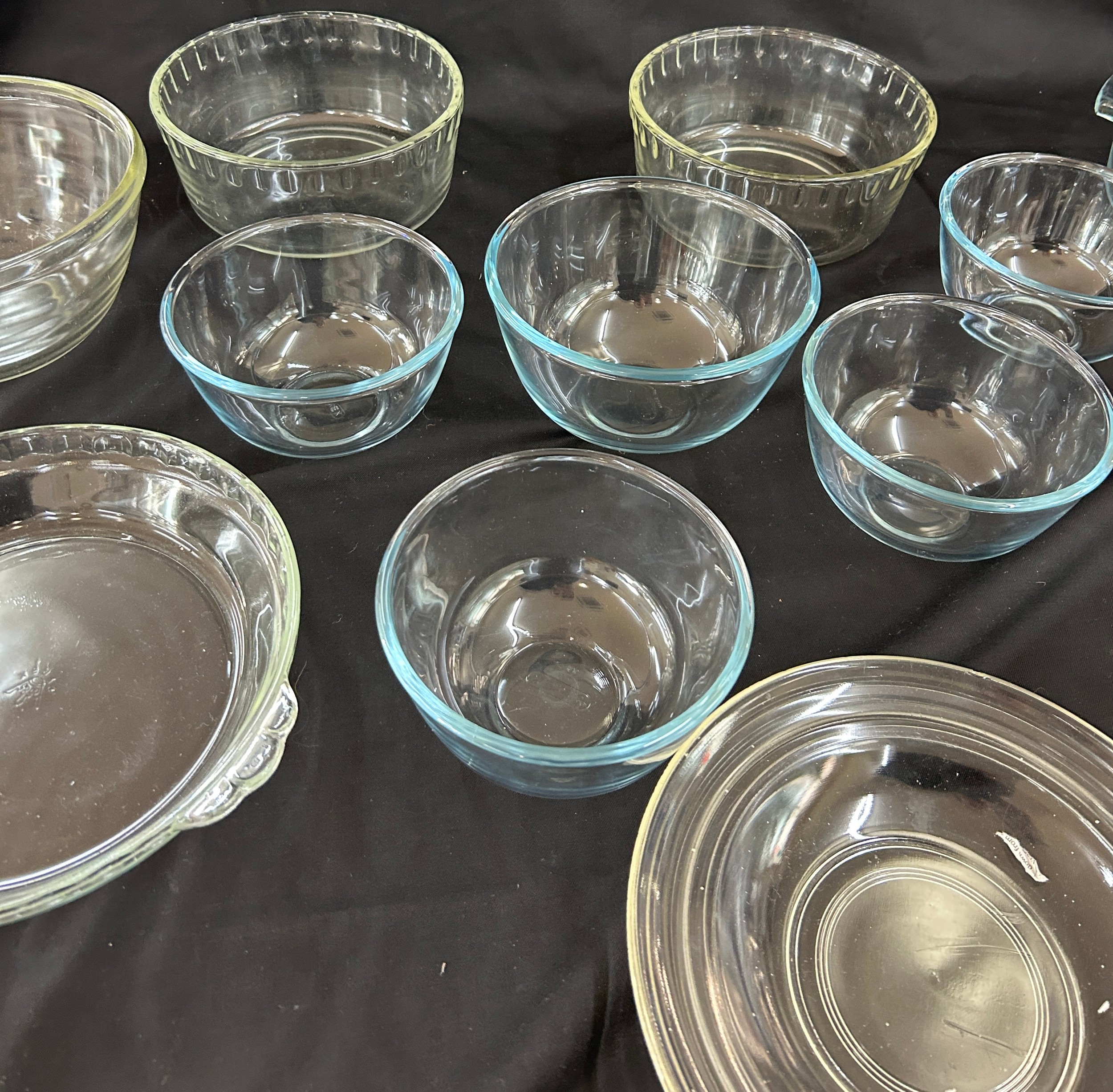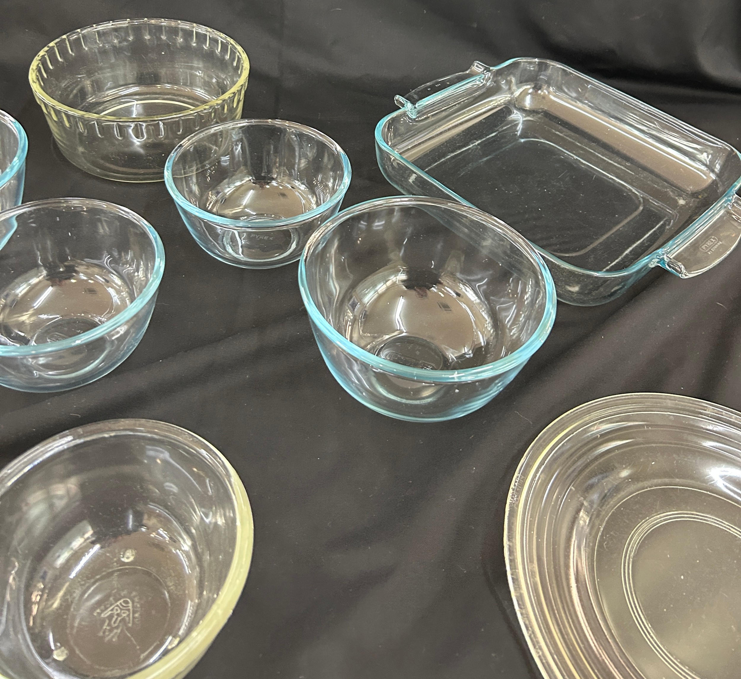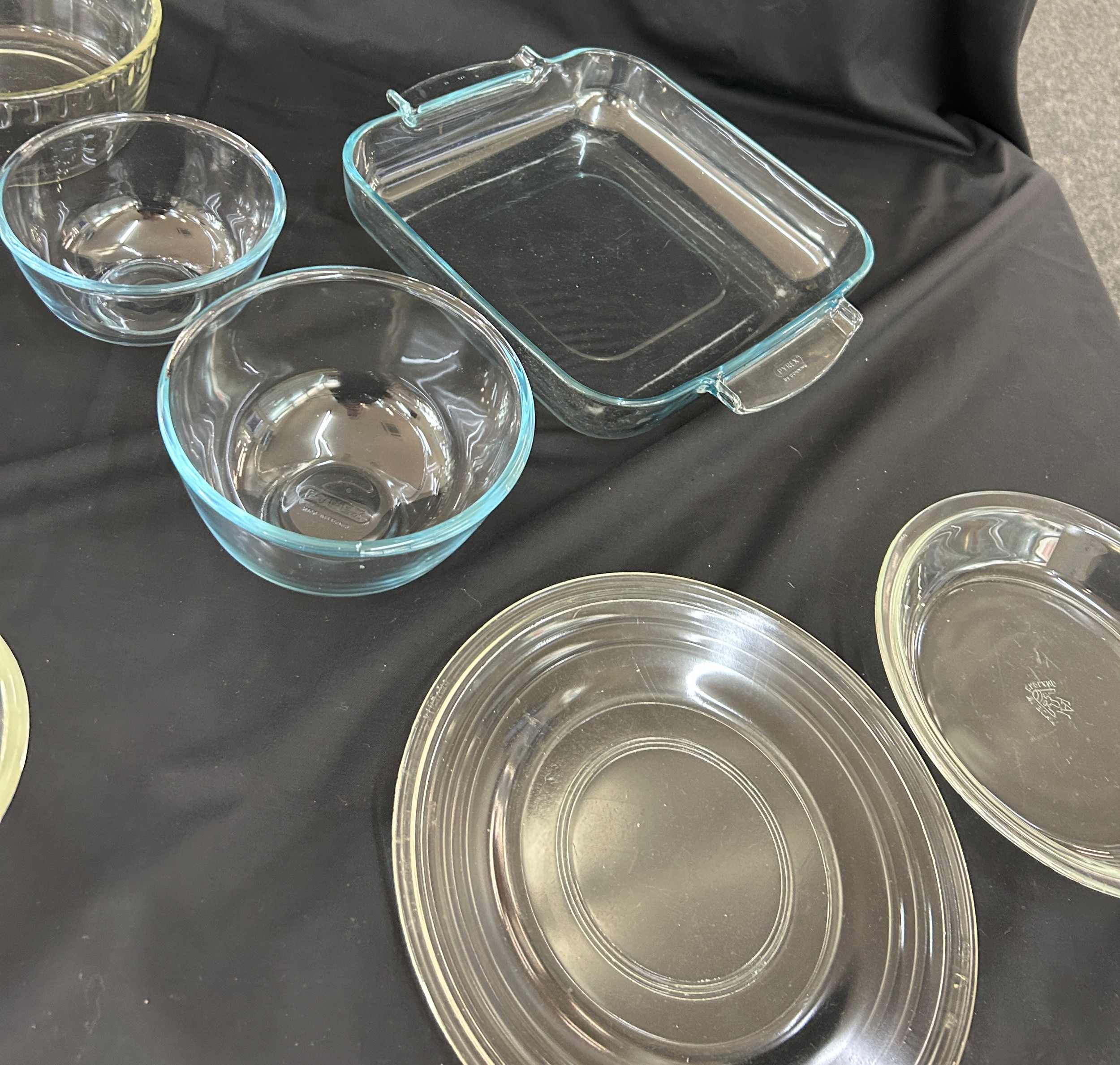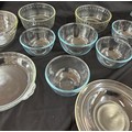 Selection of pyrex ware bowls, trays, pie dishes, etc