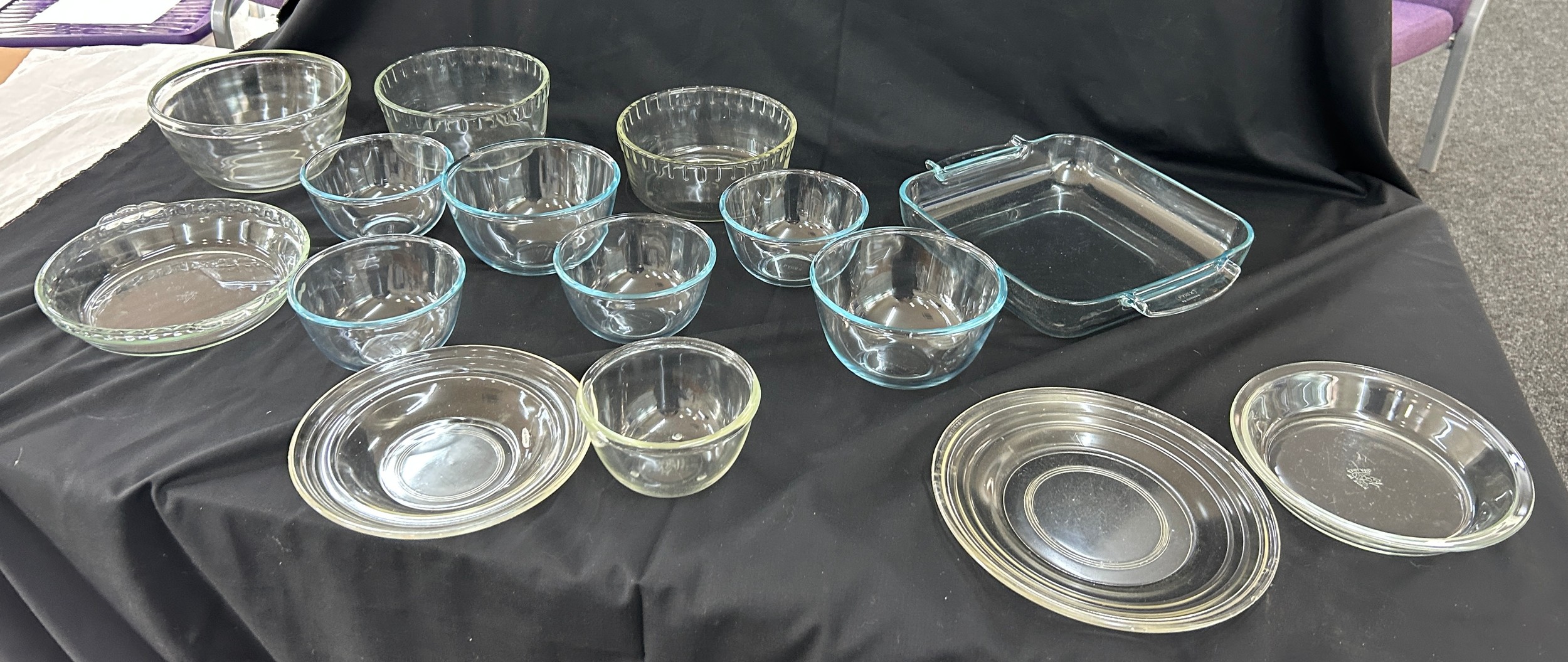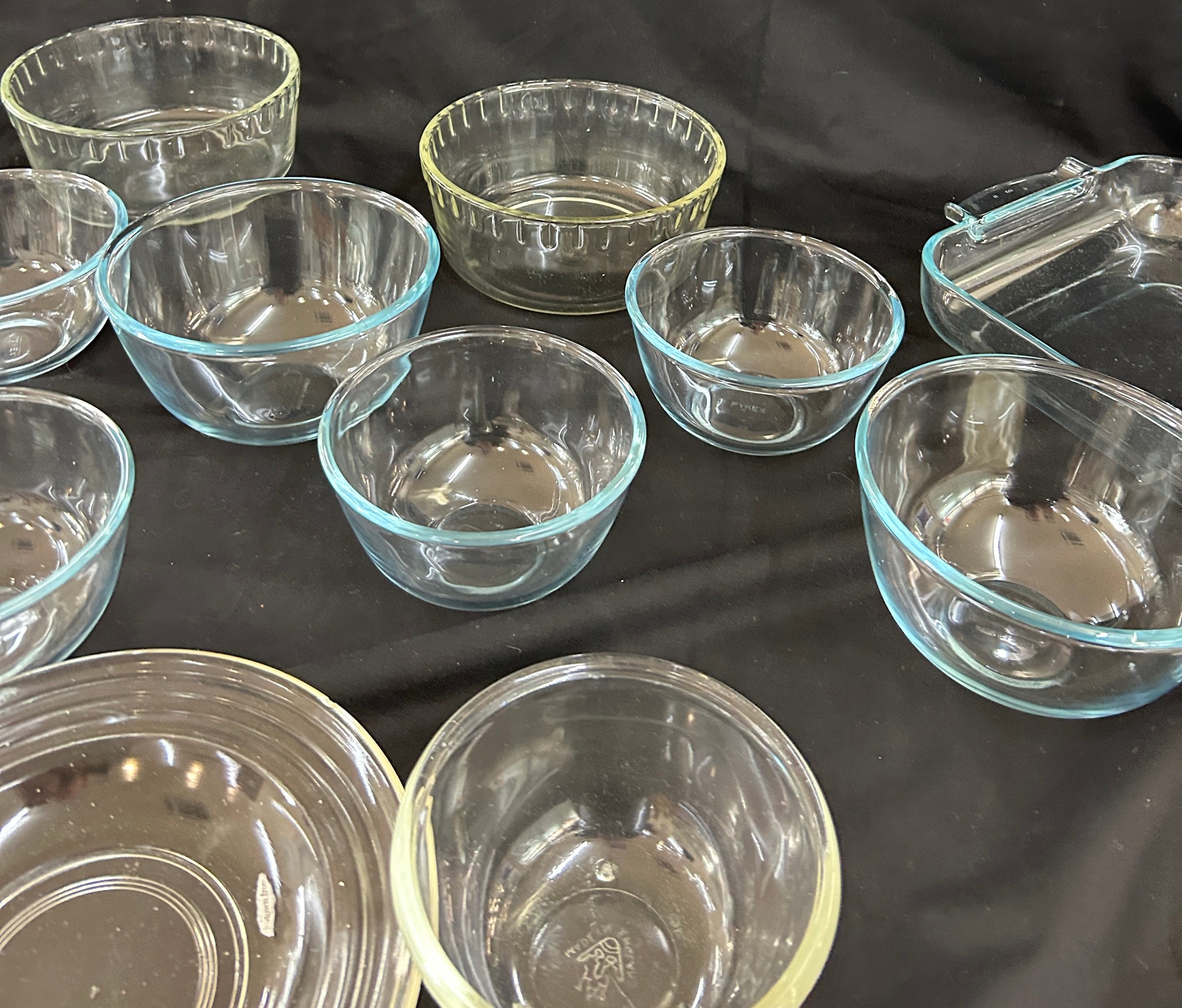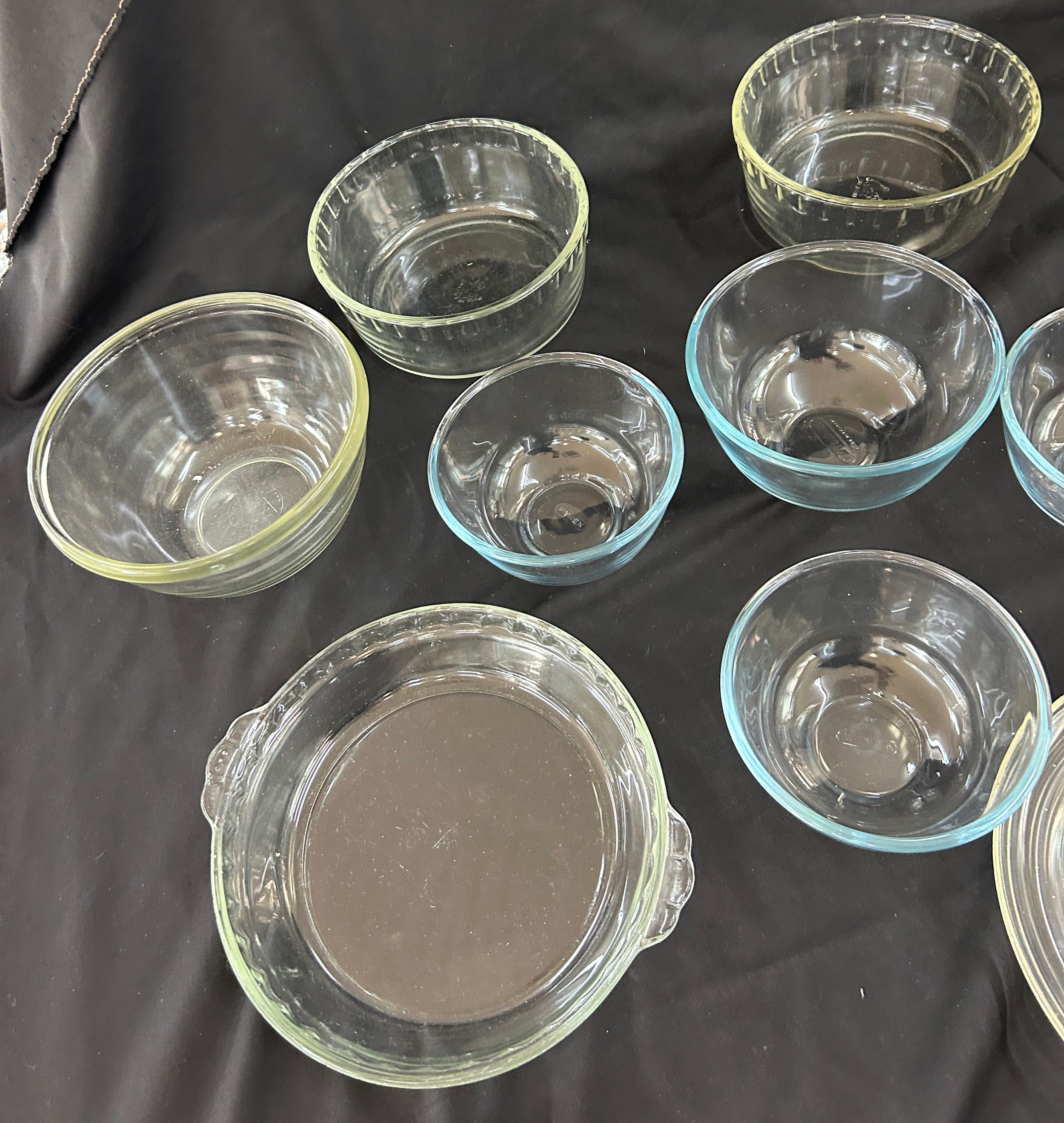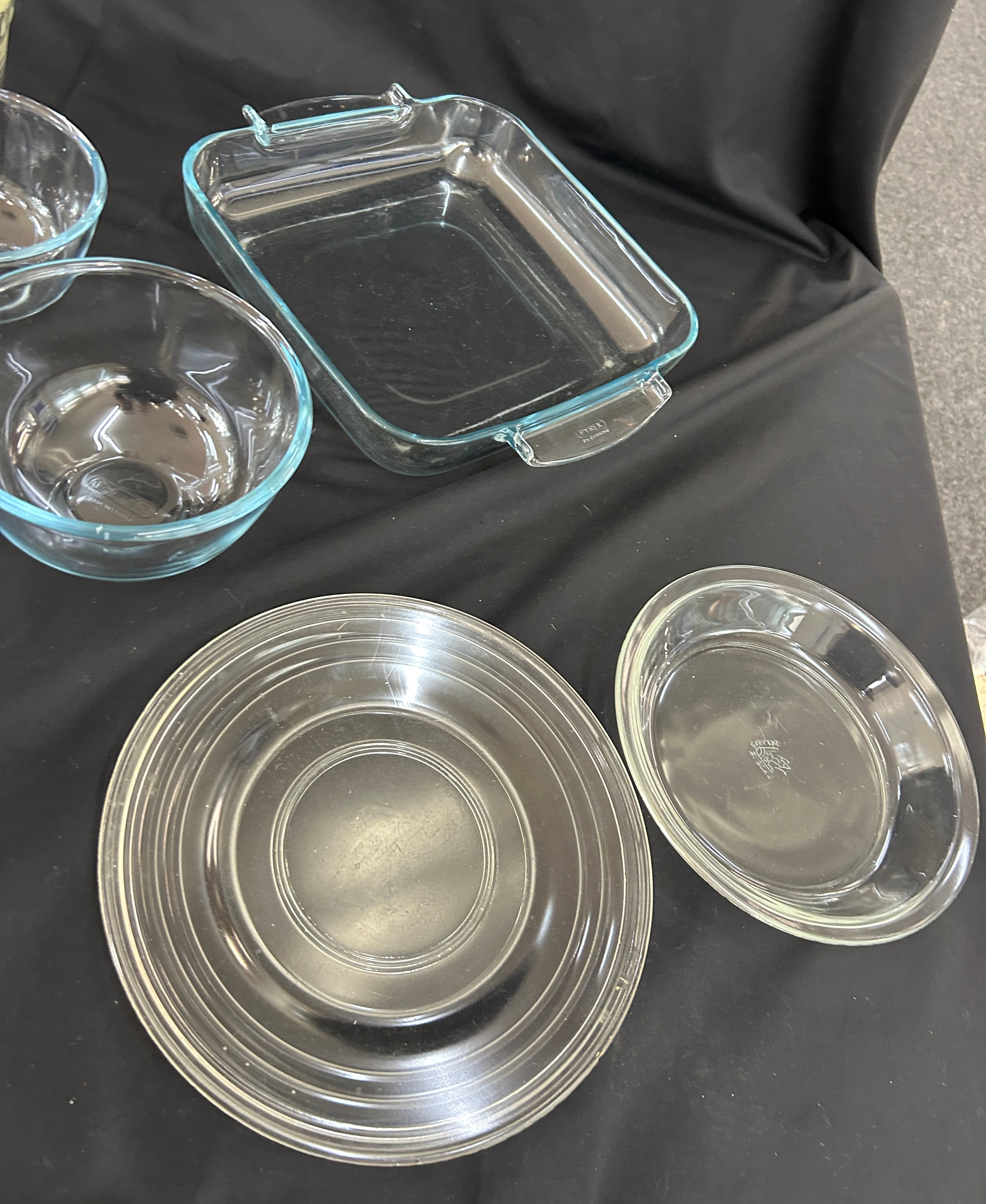 Selection of pyrex ware bowls, trays, pie dishes, etc