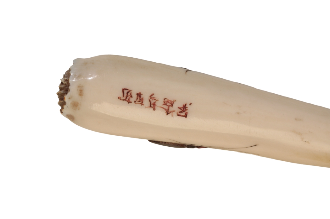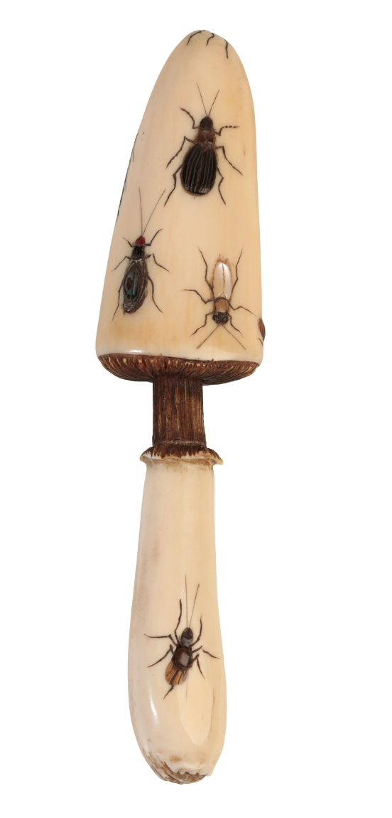 A JAPANESE IVORY OKIMONO in the form of a mushroom, with Shibayama decoration of insects, signed Meiji, 13cm.