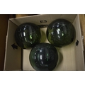 Three green glass fishing floats.
