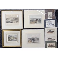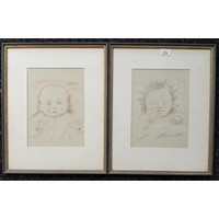 Pencil drawing of a dog saving a young girl in the water, signed Jane Miller.