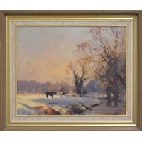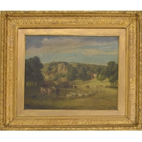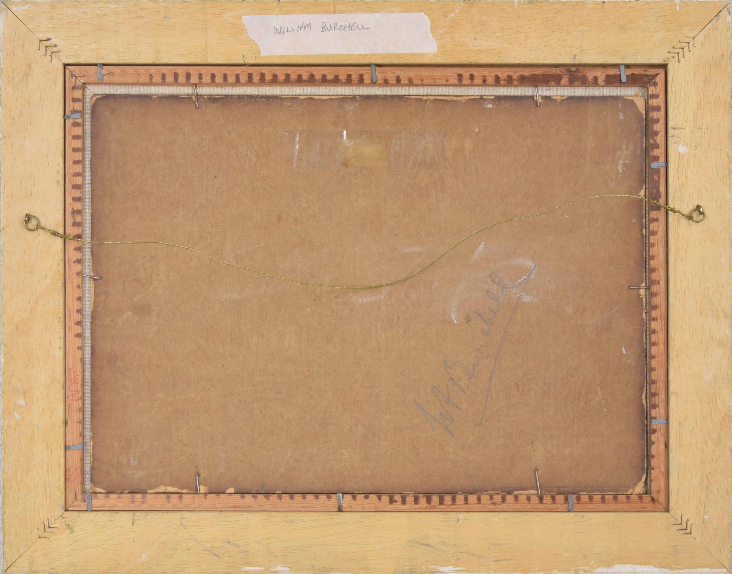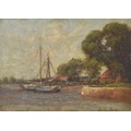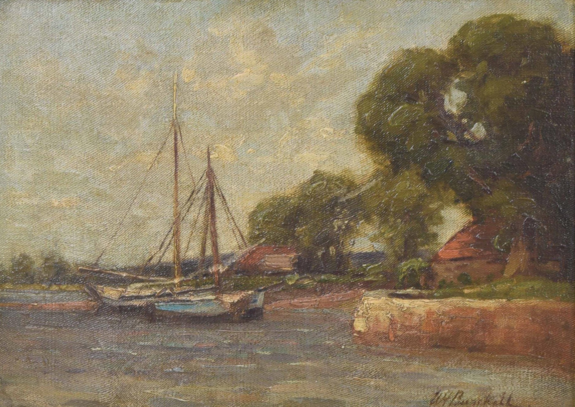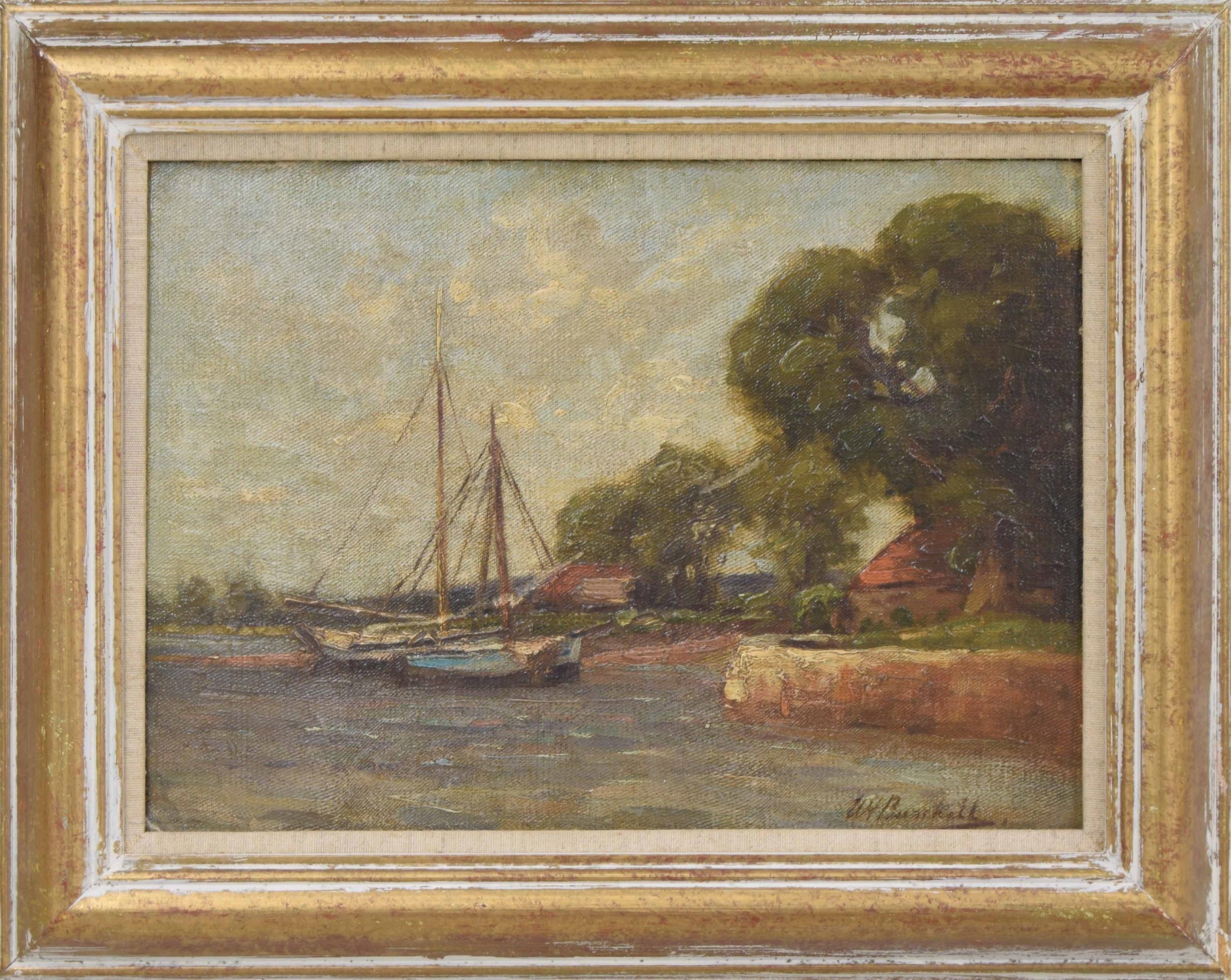 William F. Burchell (ex. 1909-1937) - River landscape with boats, signed, oil on canvas board, 10.25" x 14.25"