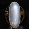 LARGE MOONSTONE SOLITAIRE RING, set with an elongated cabochon cut moonstone with nice blue shiller. L. 22 mm. Size I. 5 grams.