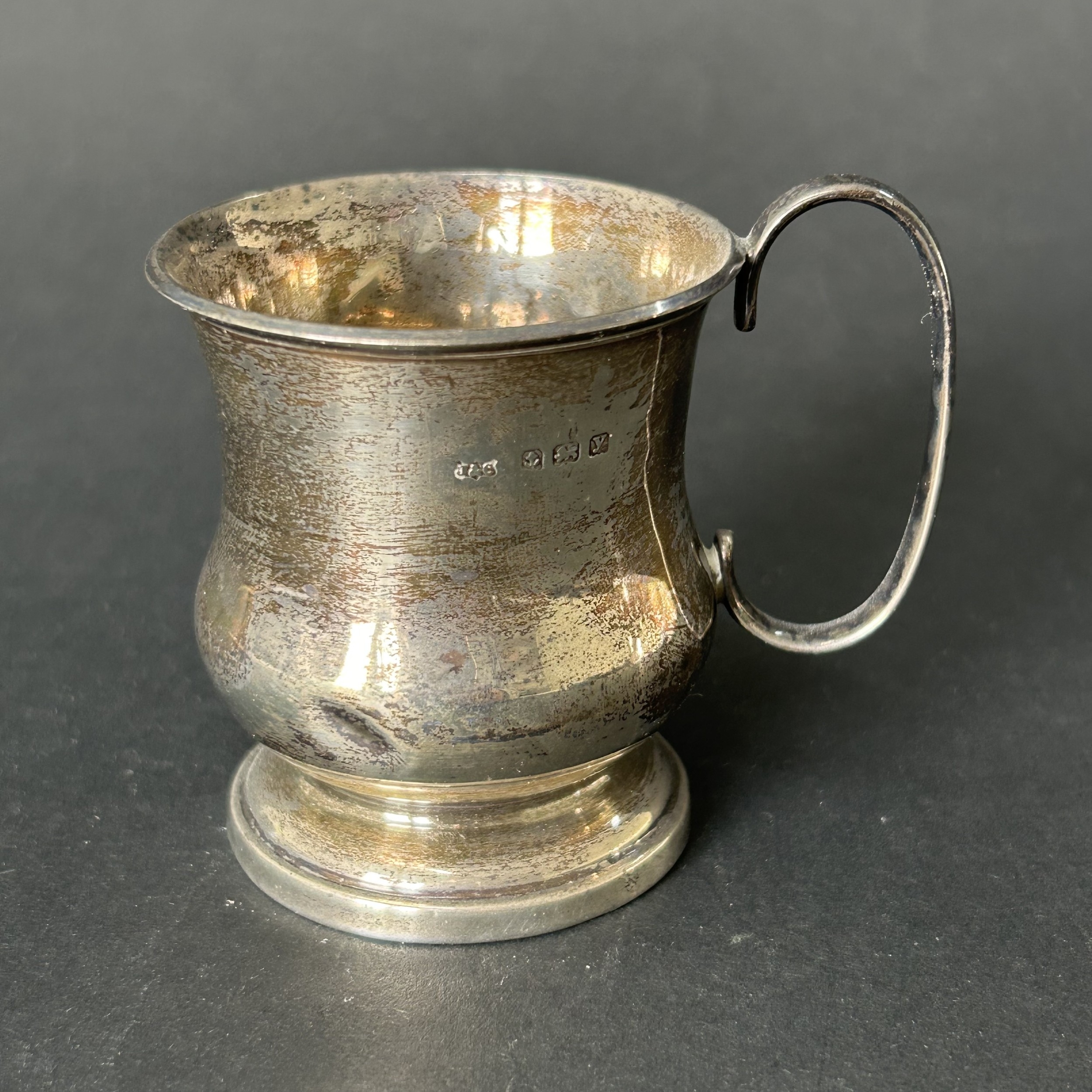 A hallmarked silver small christening cup with loaded base, ...