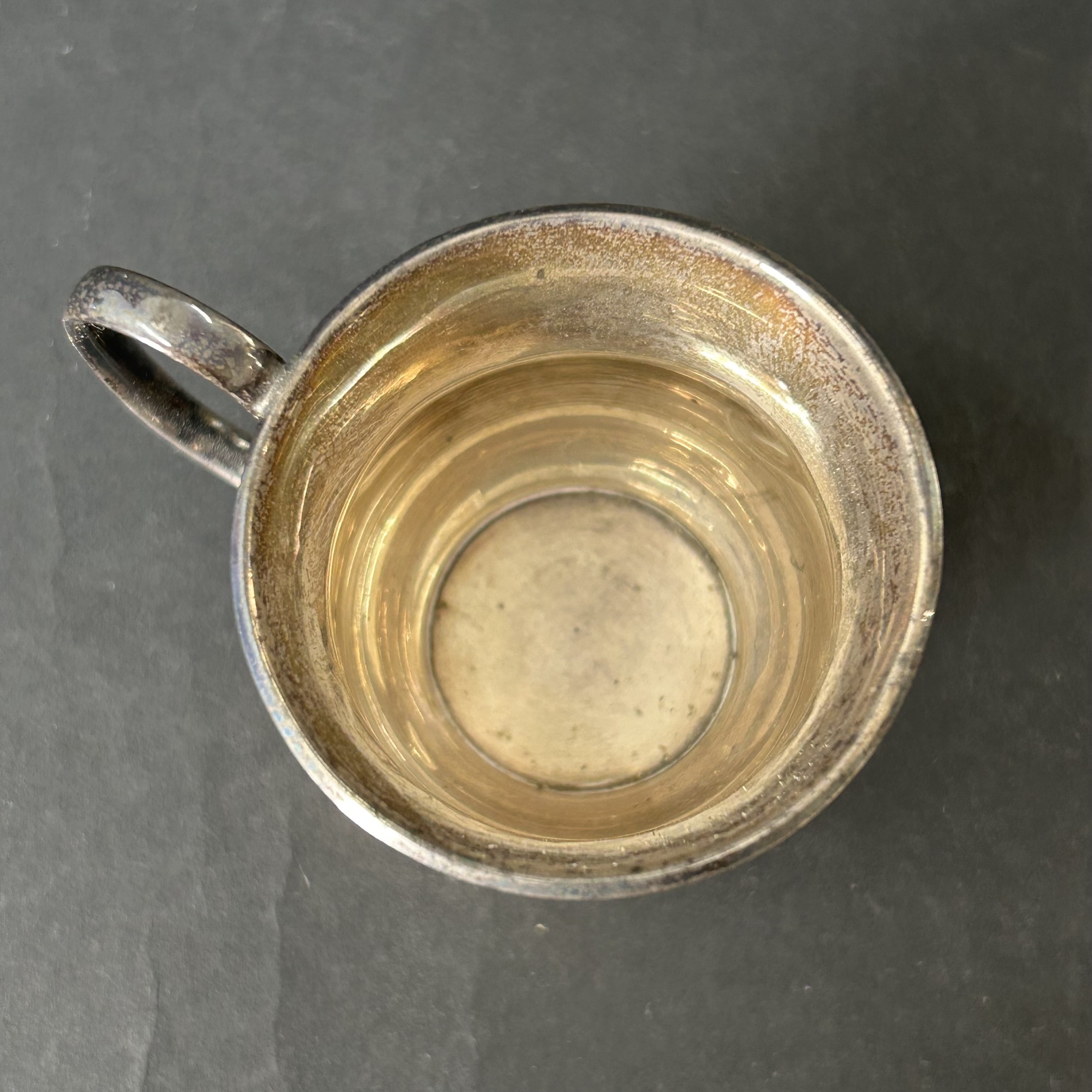 A hallmarked silver small christening cup with loaded base, approx. 2 3/4" tall (some dents)