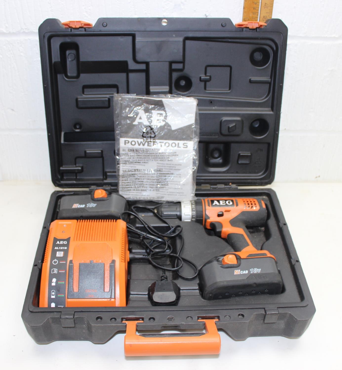 AEG battery drill and 2 batteries in box