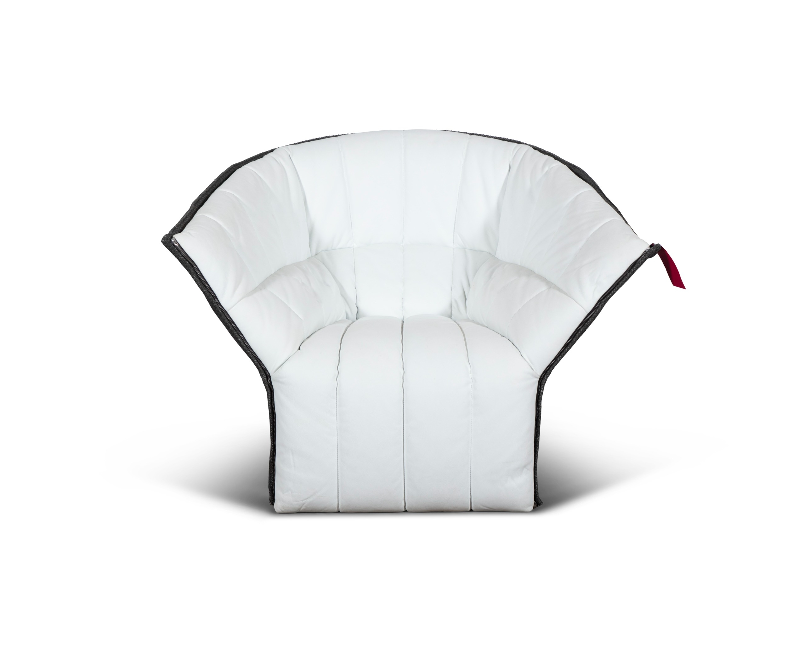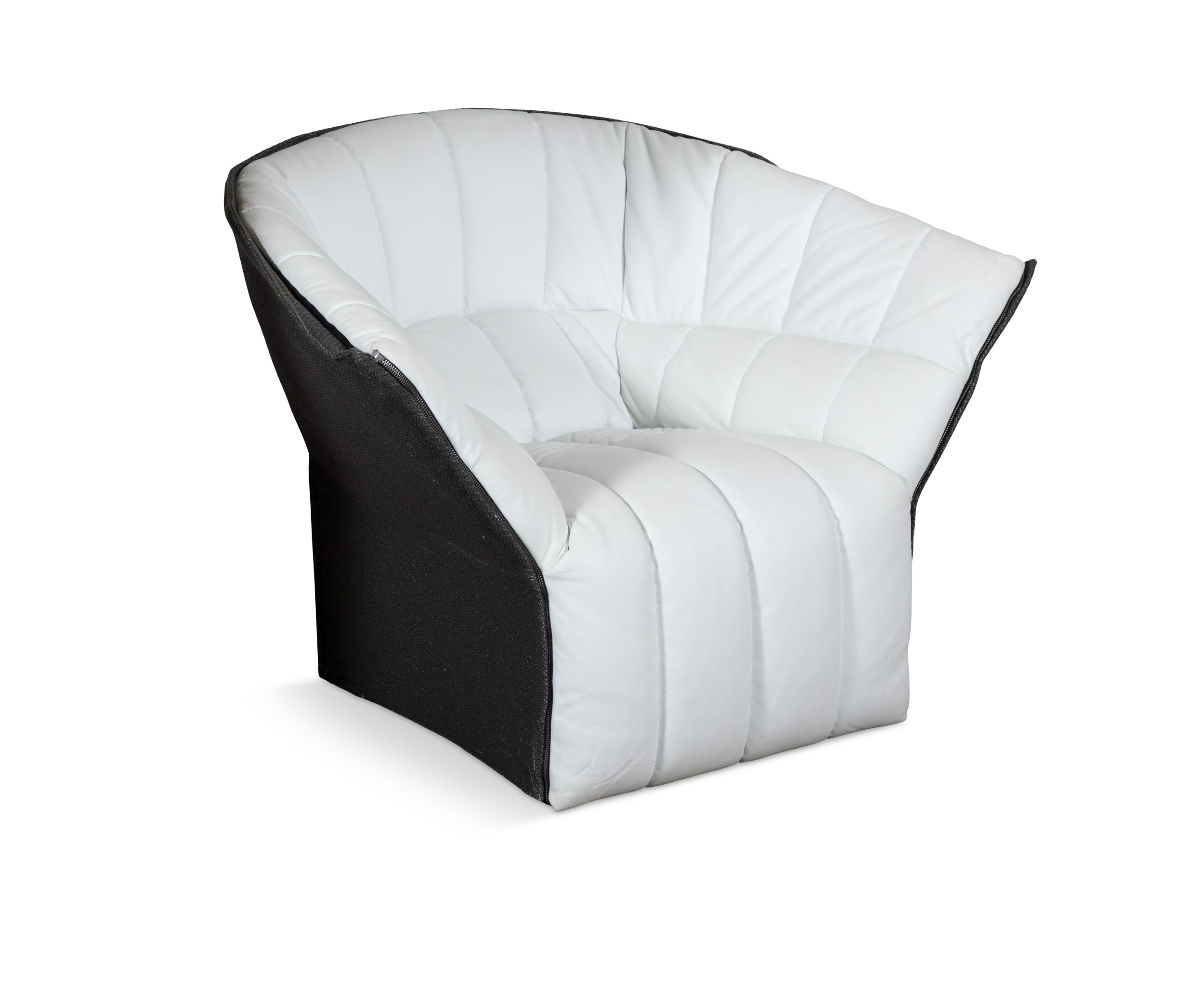 A 'Moel' armchair by Inga Sempé for Ligne Roset, upholstered in white leather. 100 x 89 x 81cm (h); Seat 41cm (h)