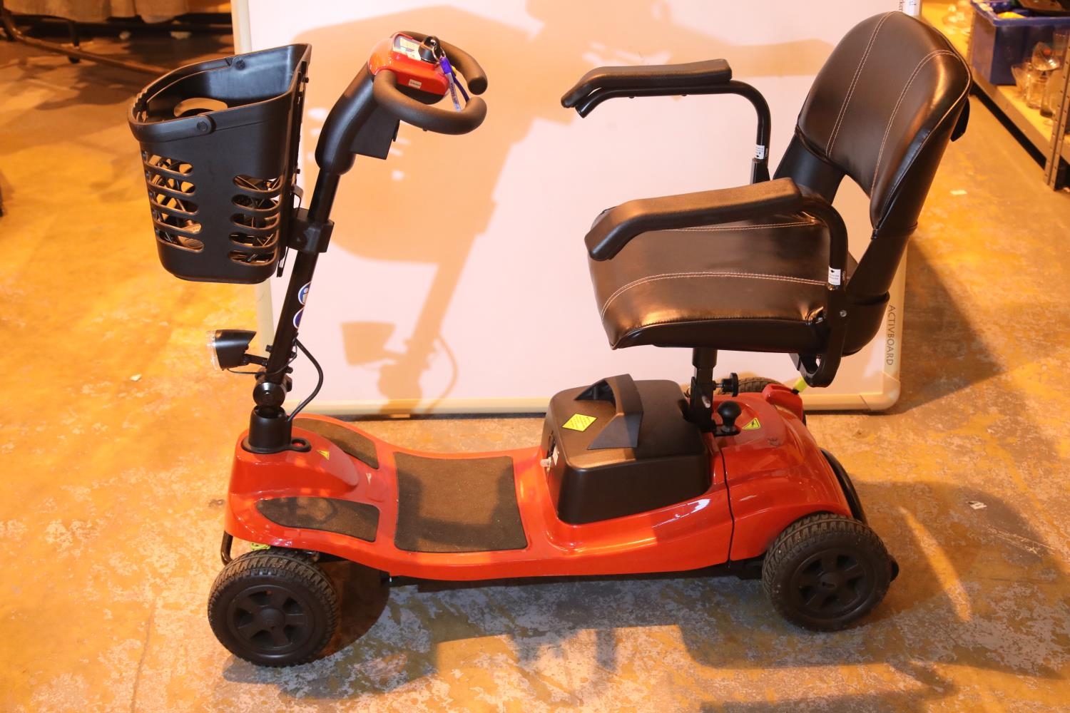 Four wheel electric mobility scooter in working order with key and charger. Not available for in-house P&P, contact Paul O'Hea at Mailboxes on 01925 659133
