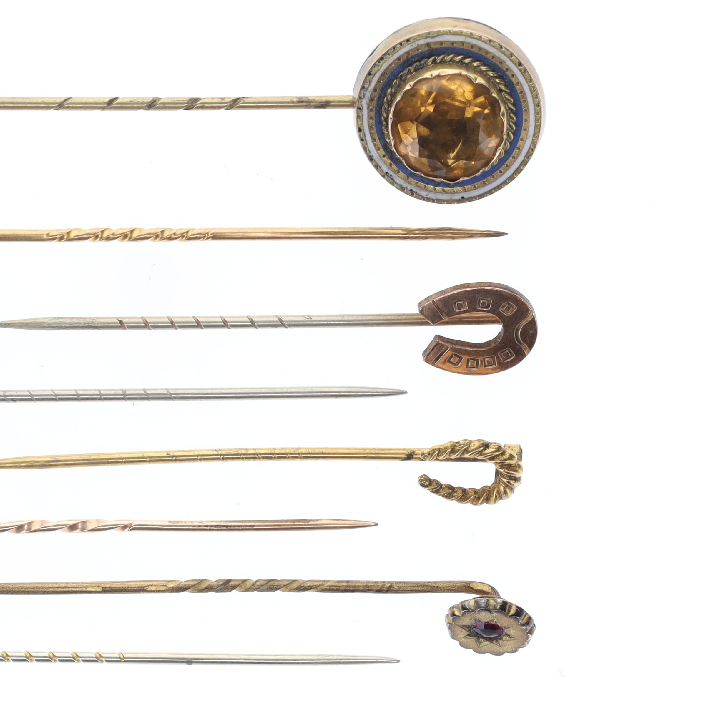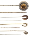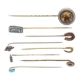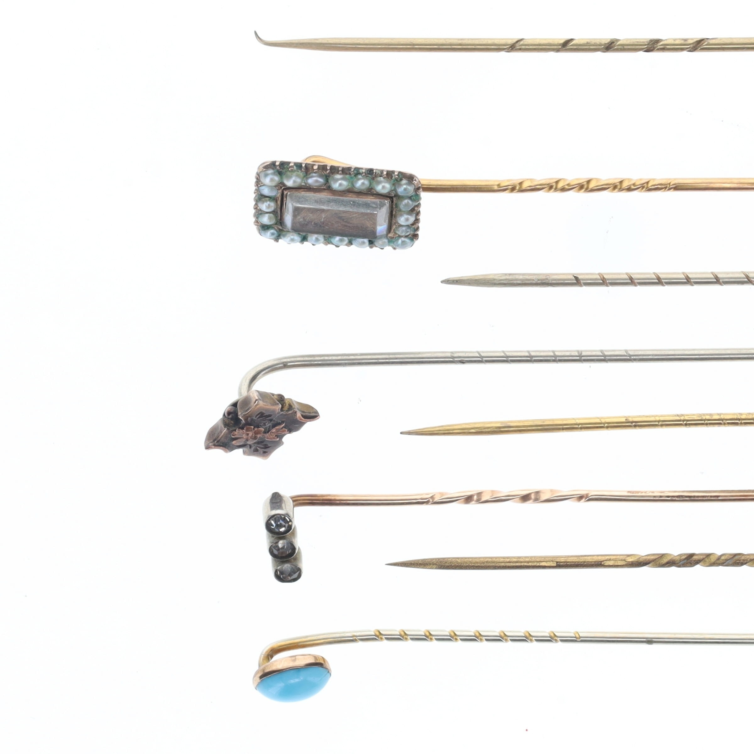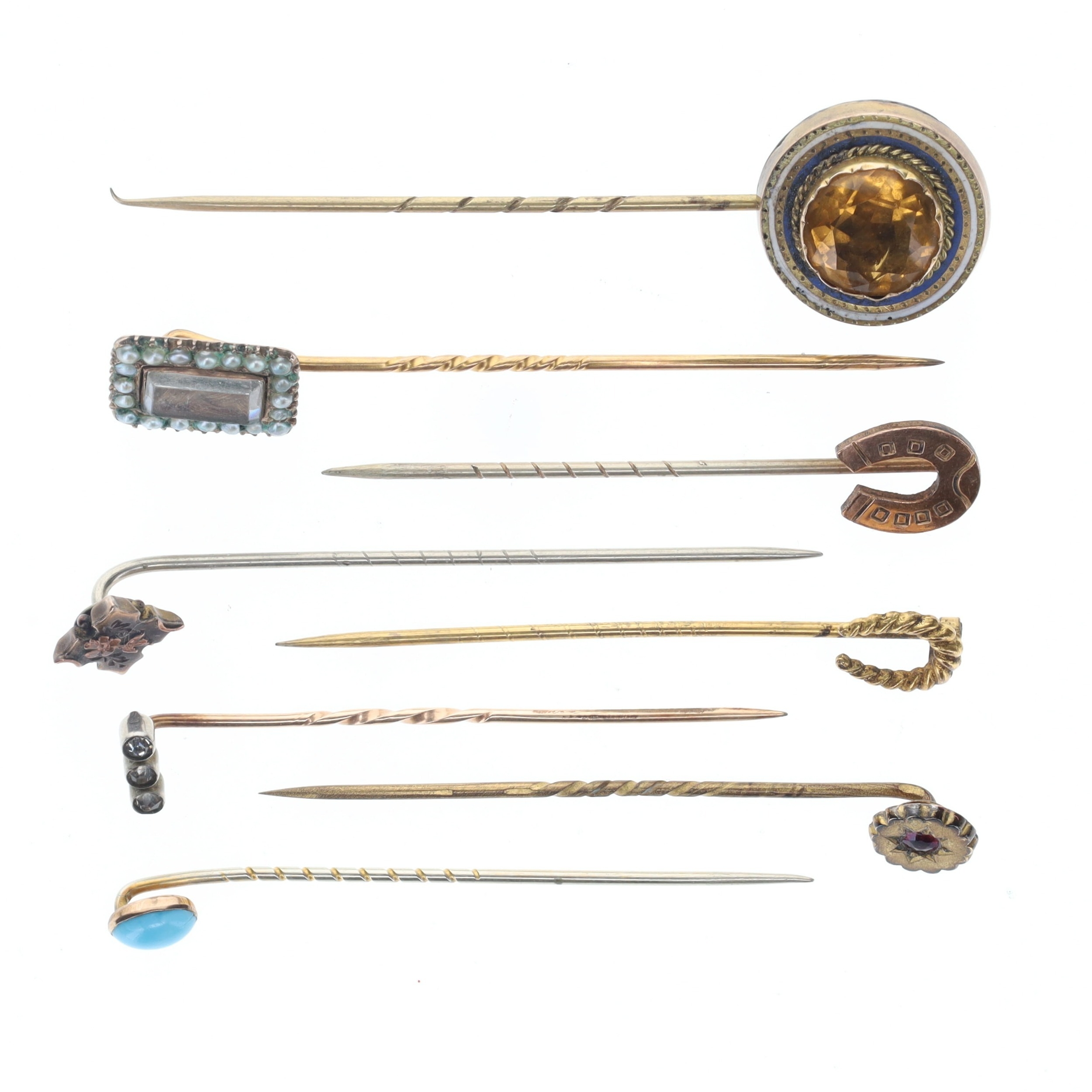 Antique Stick Pin Collection inc. Gold, Victorian, Split Pearl, Hairwork, Paste. Weighs in total 11.3g.