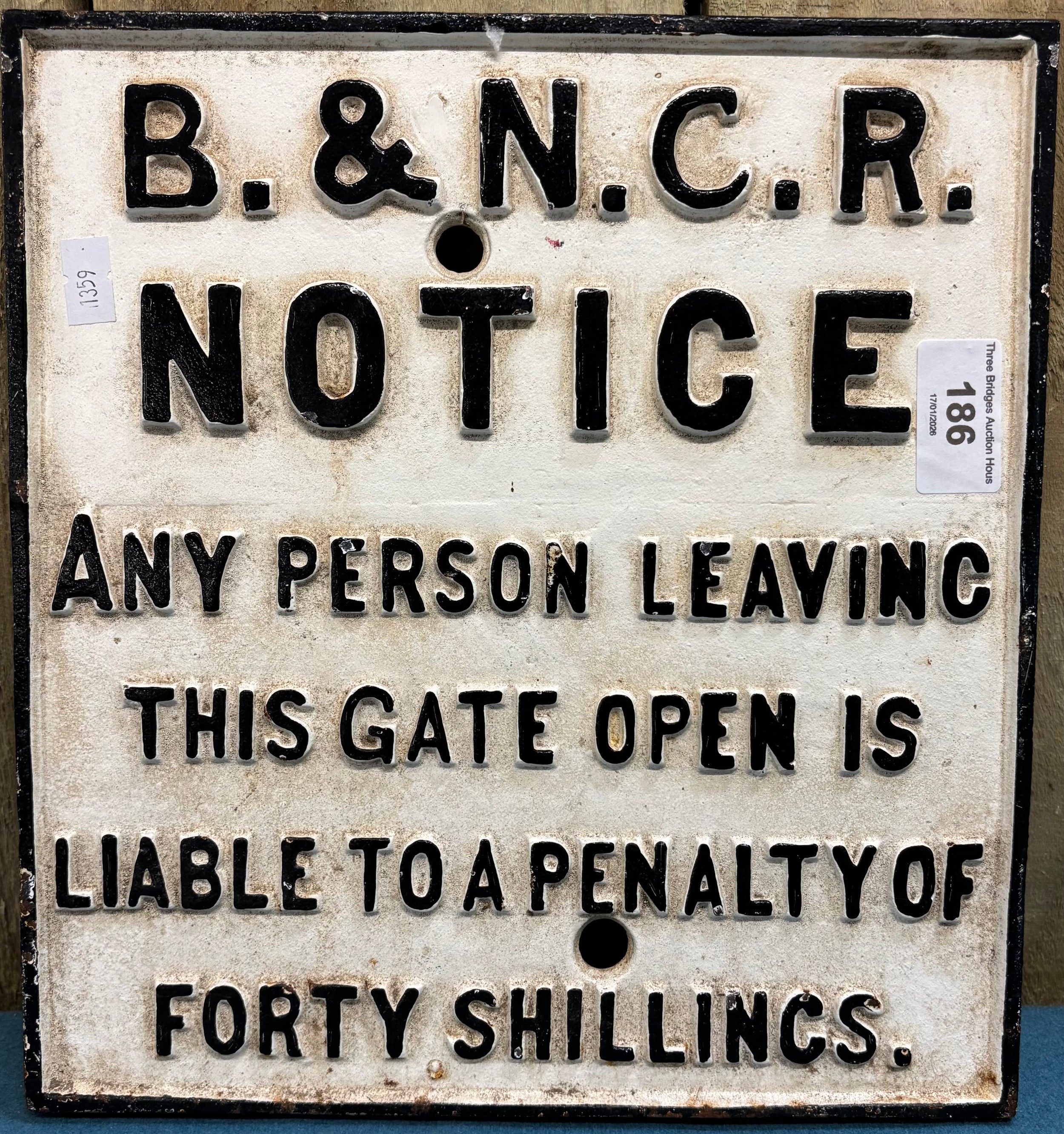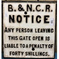 Cast iron penalty sign. B.&.N.C.R. Notice. 28x26cm.