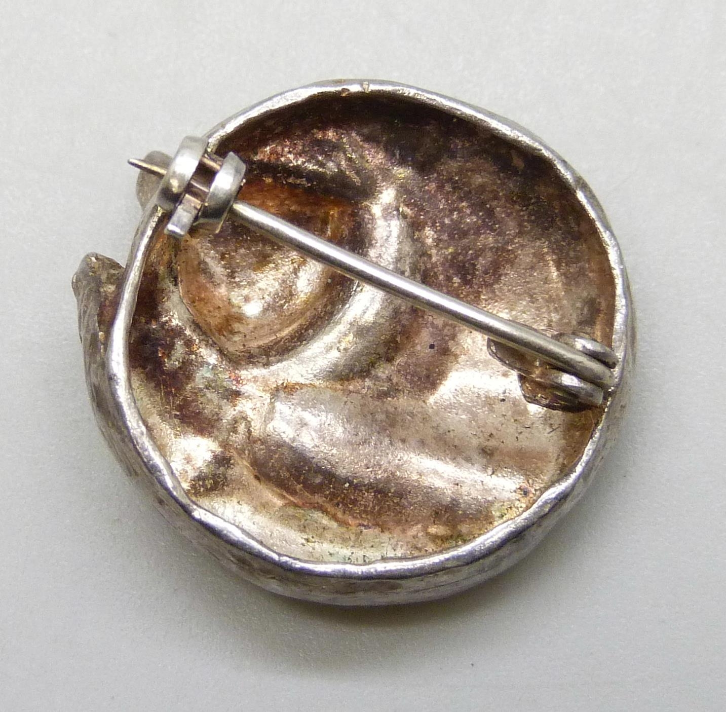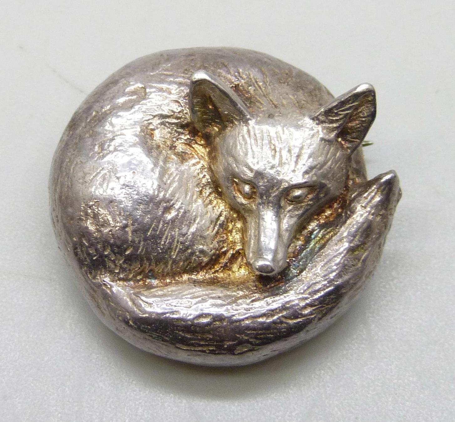 A silver animal brooch in the form of a sleeping fox, hallmarked, 2.2cm