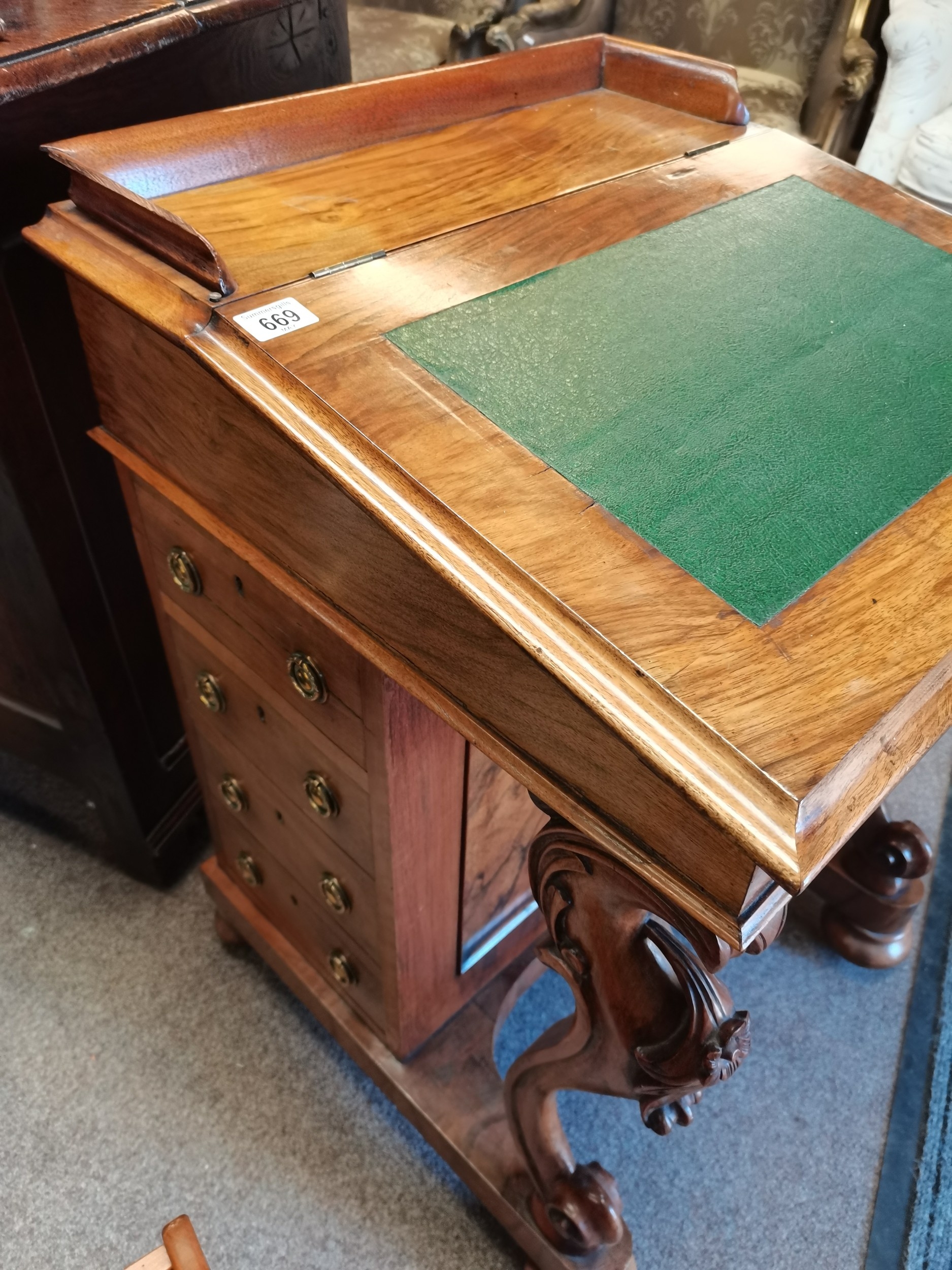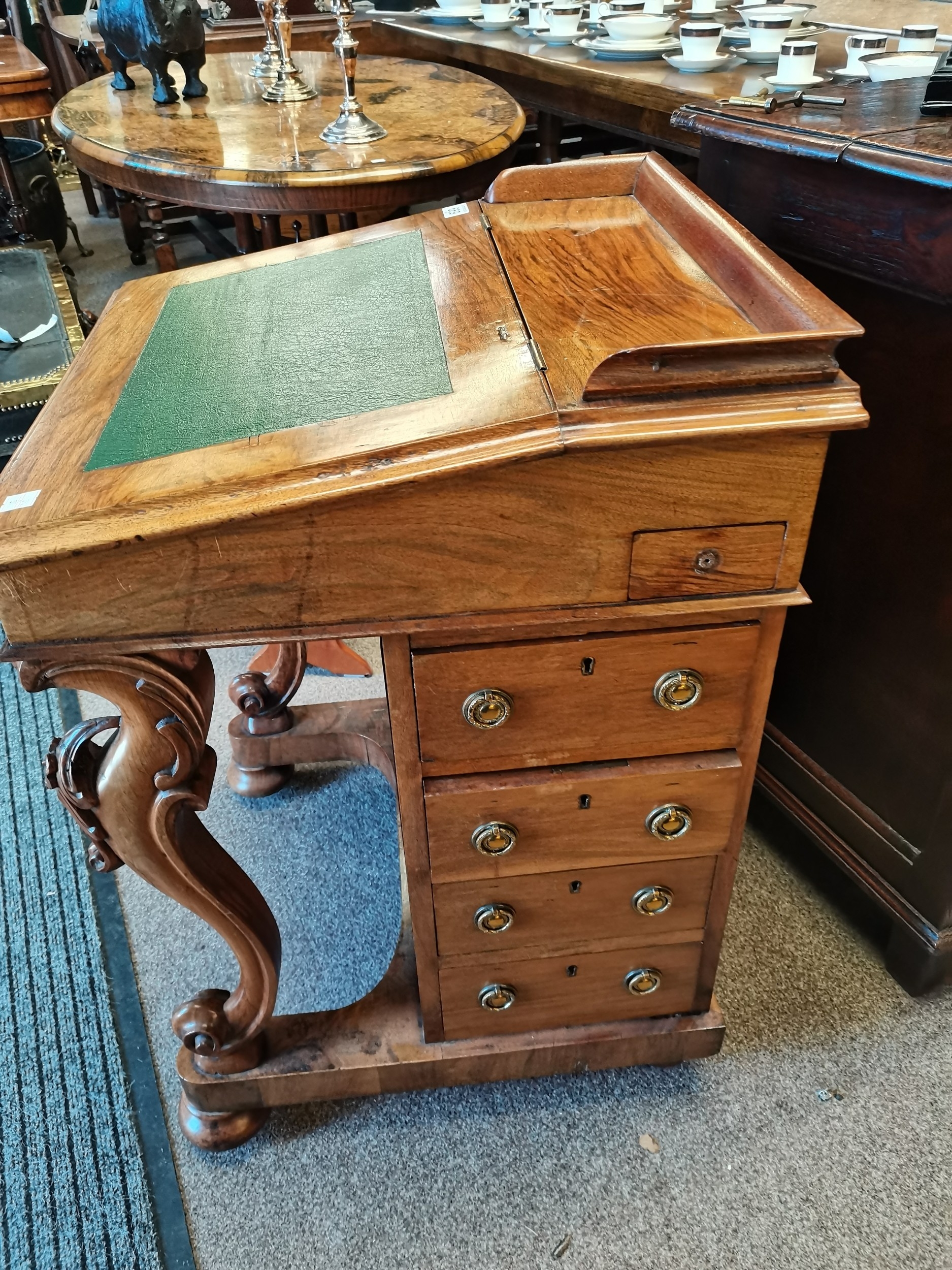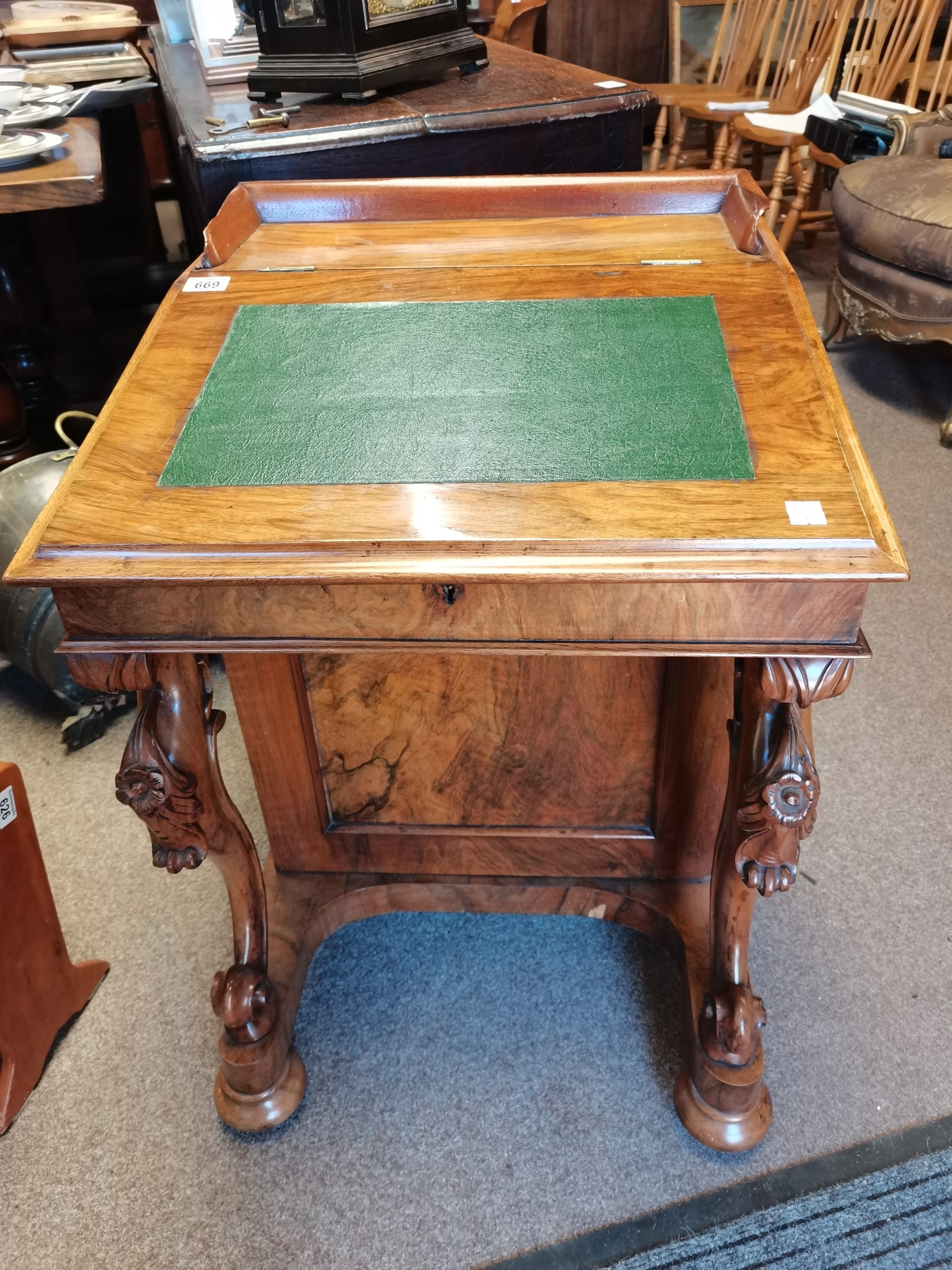 Victorian Walnut Davenport with lift up stationery compartment with elegant carved cabriole legs