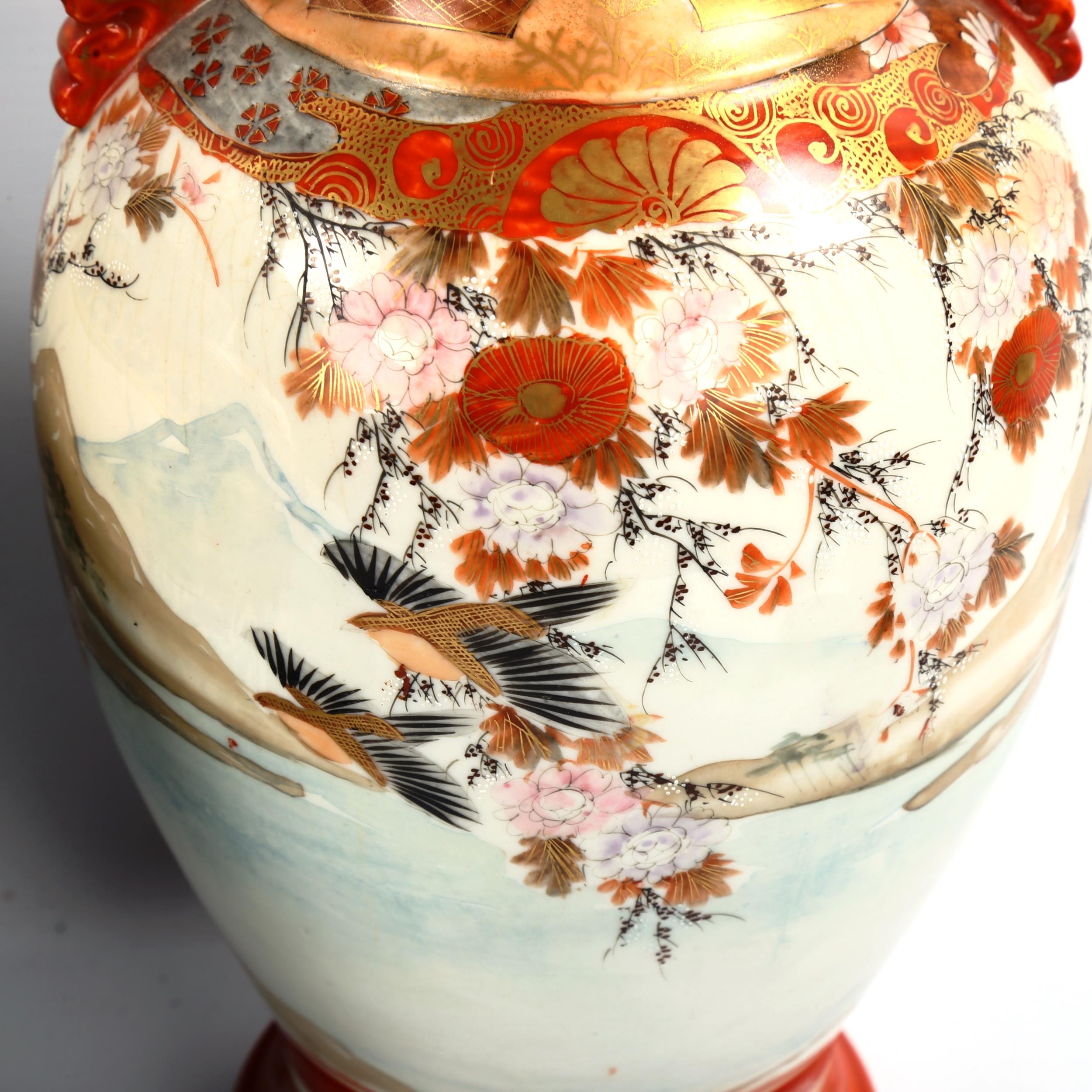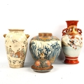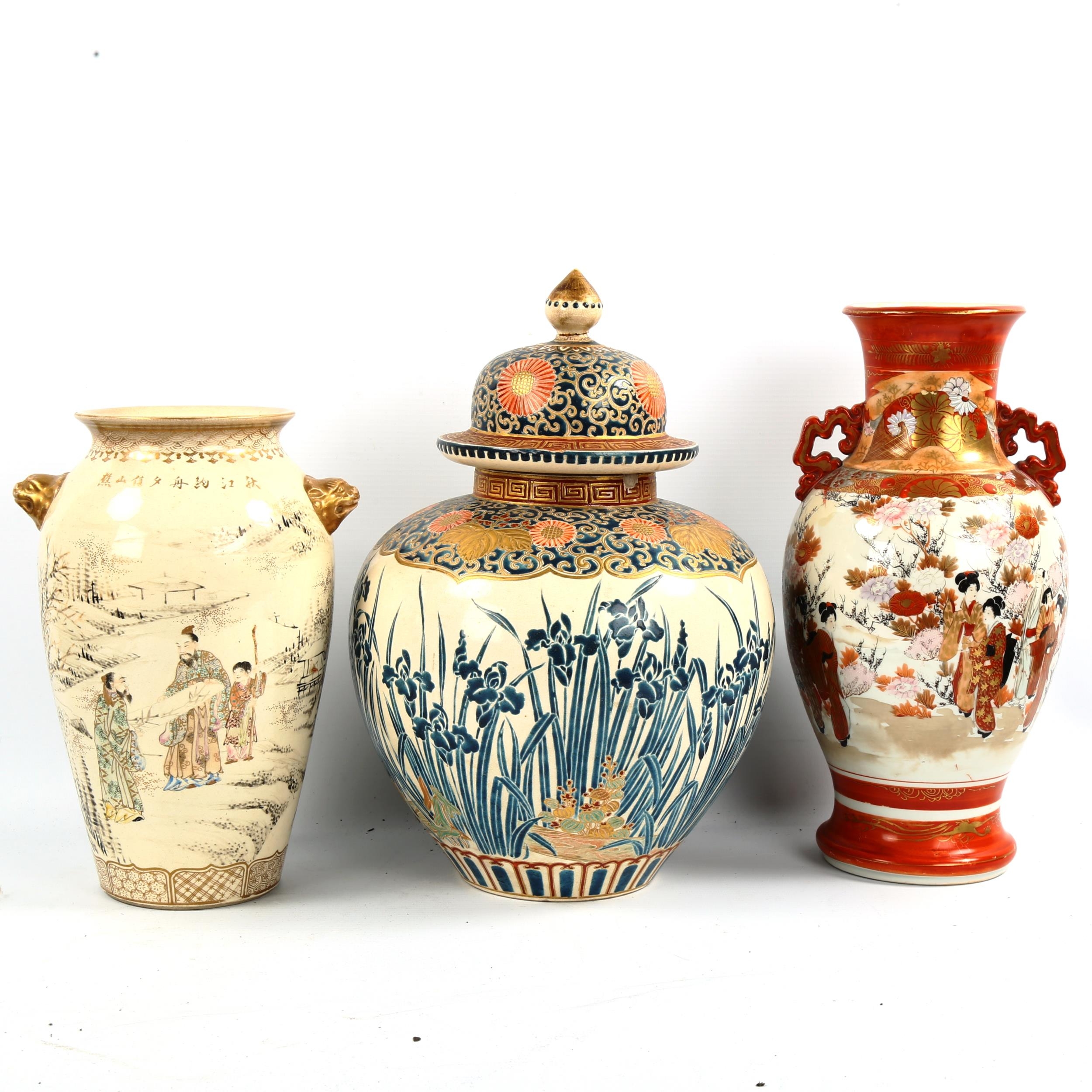 A Chinese porcelain jar and cover with gilded shoulders, height 32cm, and 2 Japanese porcelain vases (3)