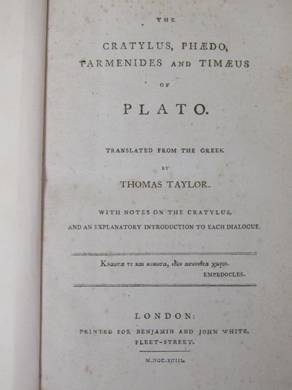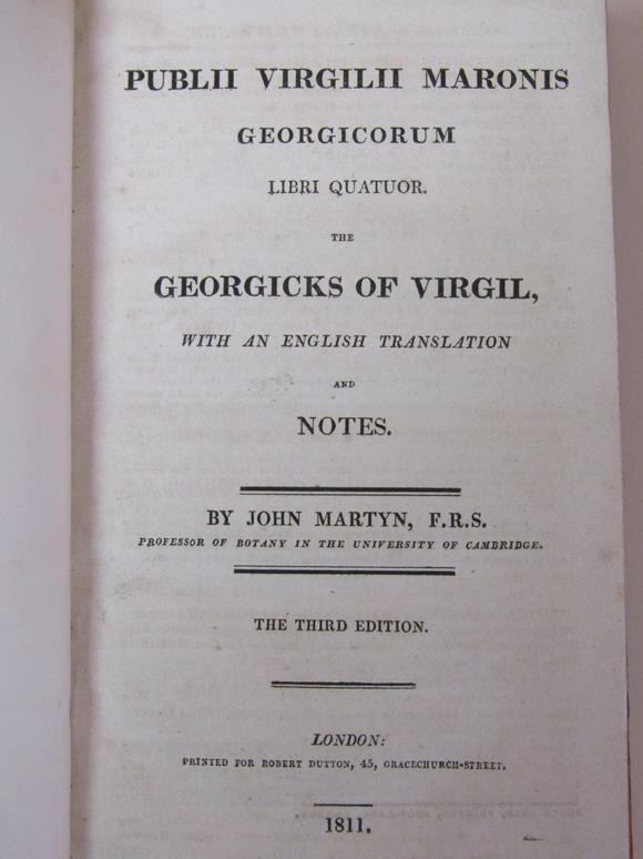 Two books - The Georgicks of Virgil with an English translation and notes by John Martyn, being the third edition, printed in London 1811, together with the Cratylus, Phaedo, Tarmendises and Timaeus of Plato, translated from the Greek by Thomas Taylor, printed in London 1793.