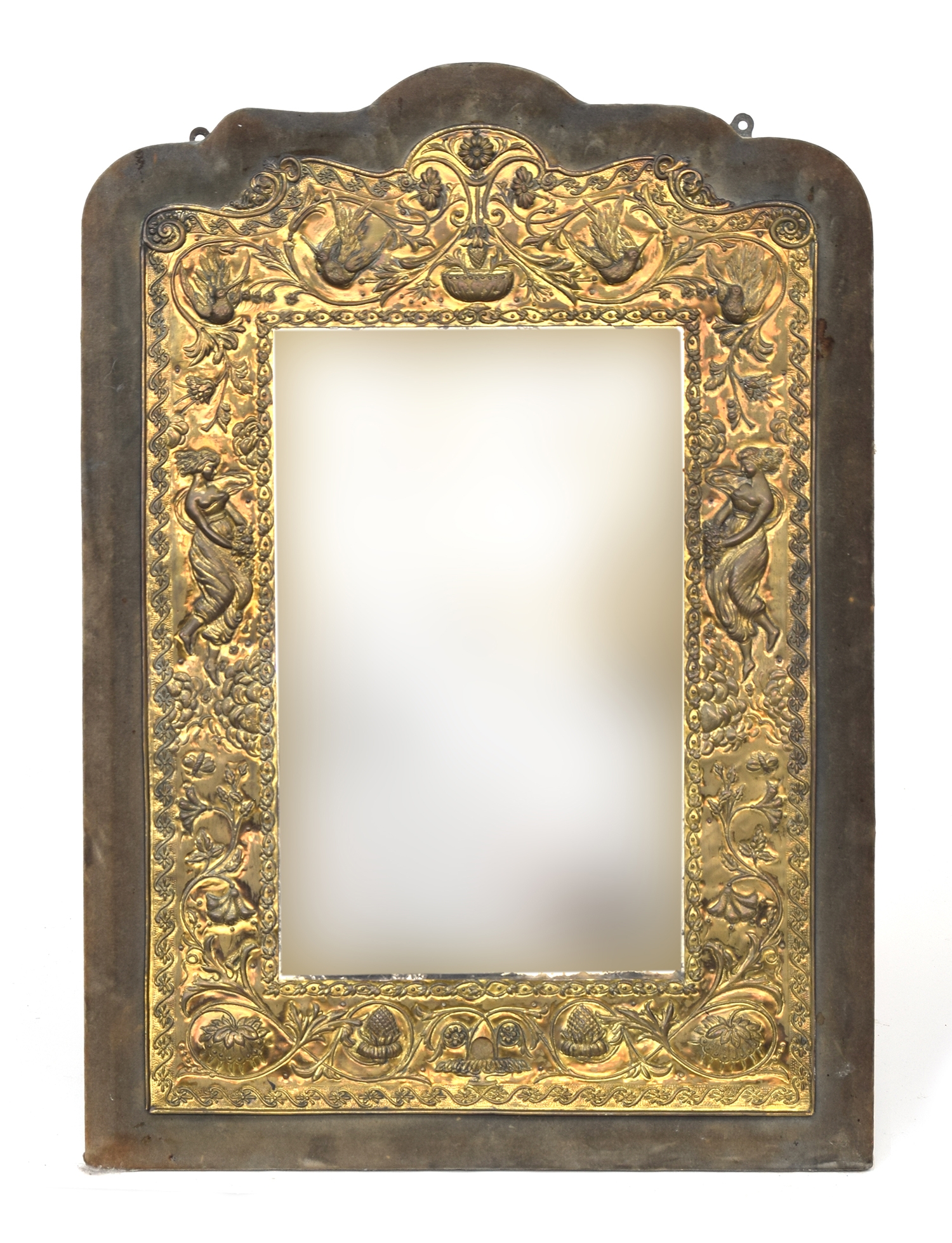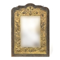 A 19th century stamped brass and velvet framed wall mirror, with bevelled glass, 61cm wide, 86cm high