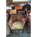 A Victorian mahogany framed bergere tub chair, another bergere armchair and a mahogany three tiered occasional table (3)