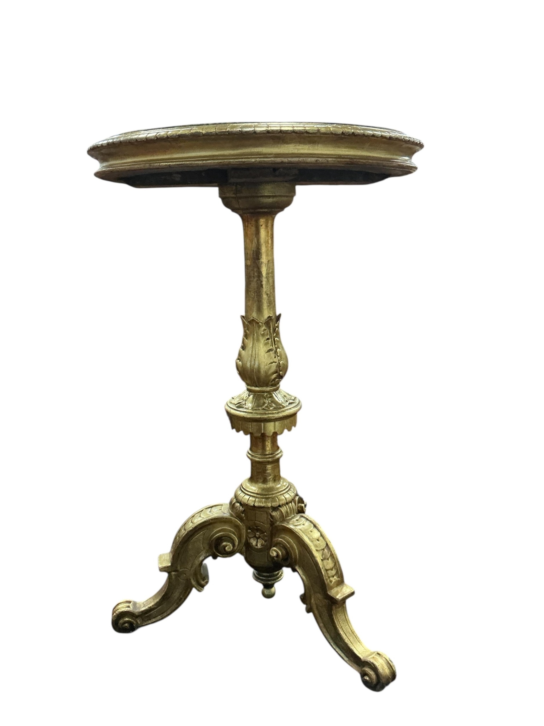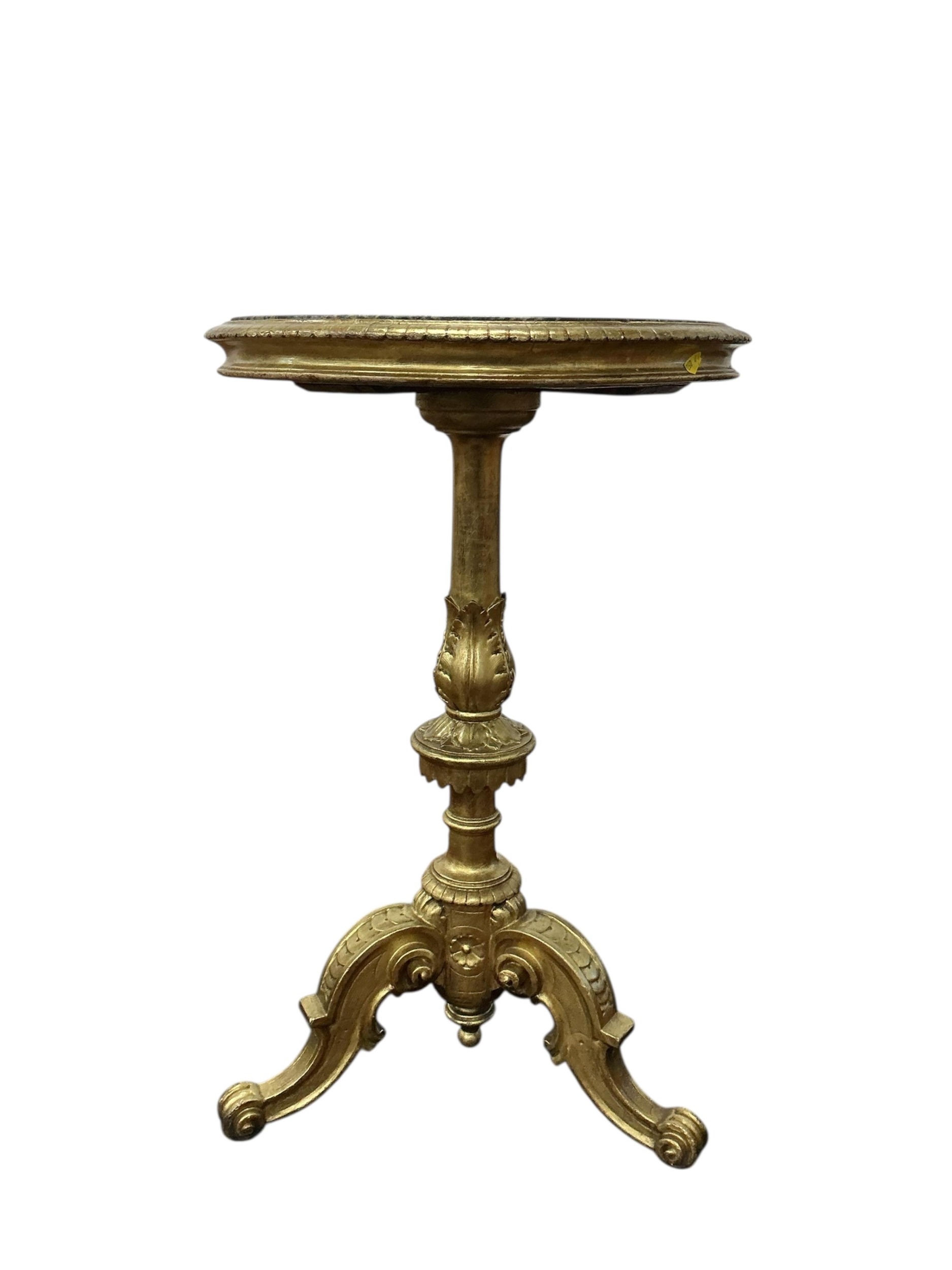 A Victorian giltwood and marble topped circular occasional table, diameter 49cm, height 79cm