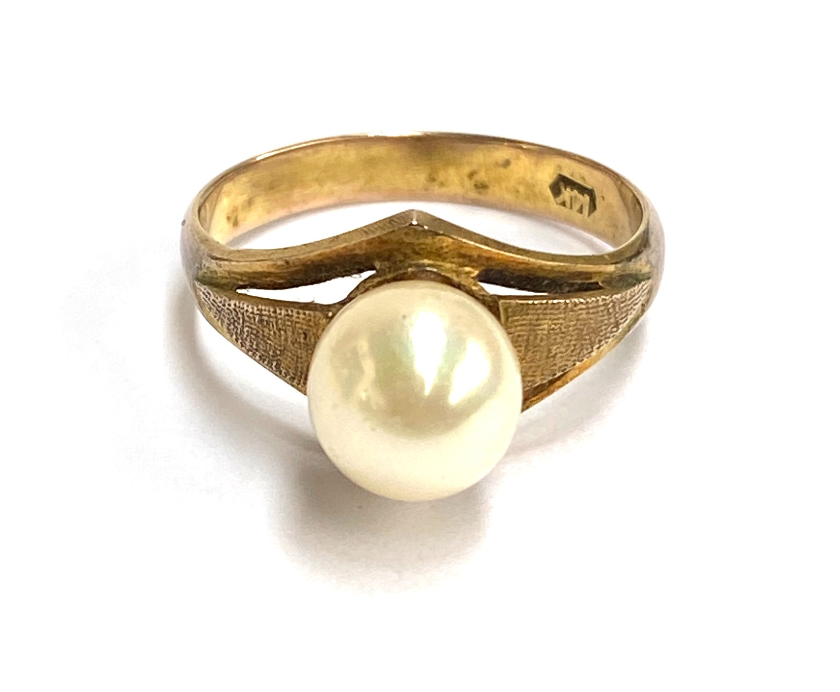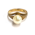 A 14ct gold ring set with a cultured pearl, stamped 14k, size N, 2.7g