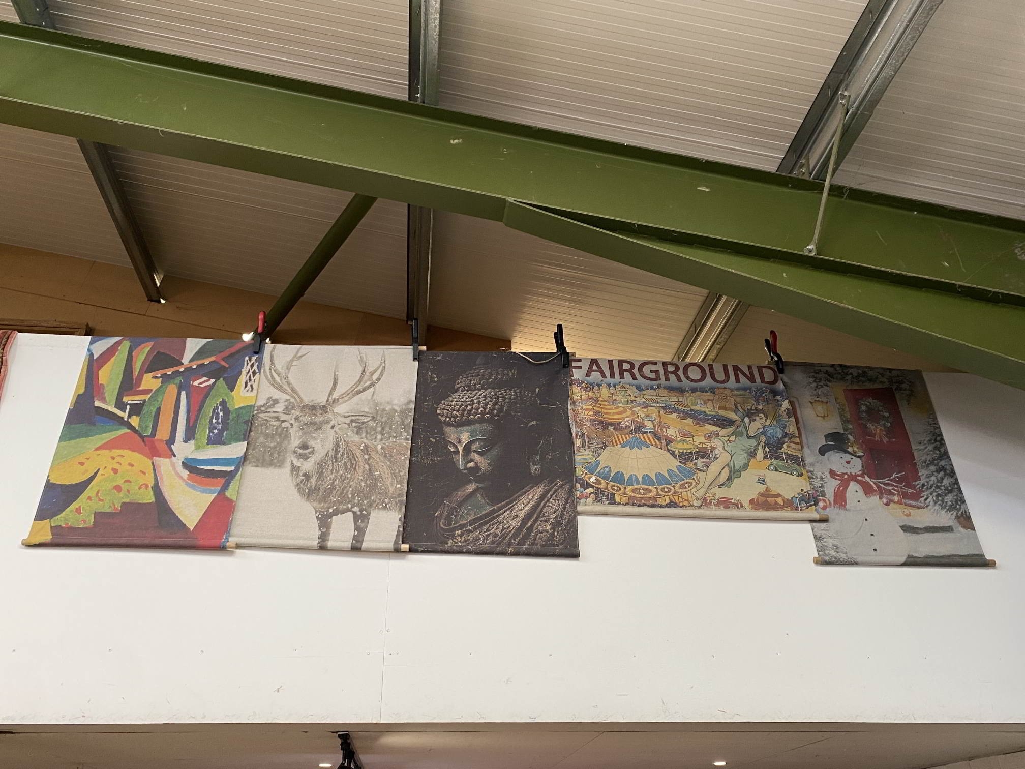 5 modern scrolls, including Buddha & Fairground 97 x 77cm, 81 x 106cm, 99 x 76cm, 97 x 77cm & 97 x 77cm