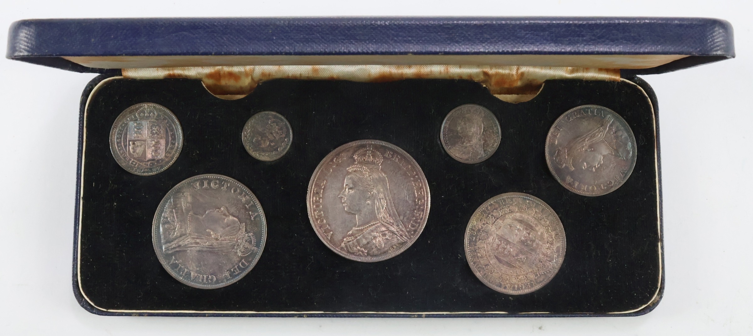 Specimen Set 1887 Jubilee silver (7) Crown to Threepence (Arabic 1 Double-Florin).GVF - EF with a matching tone
