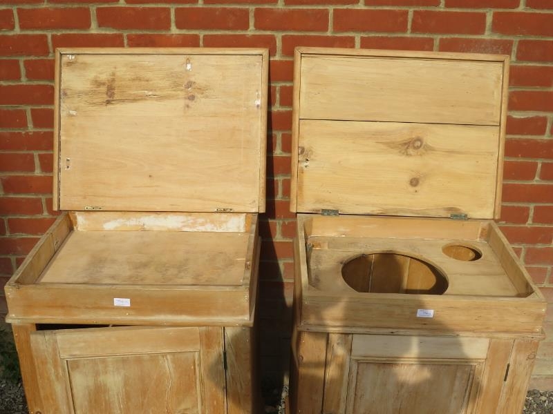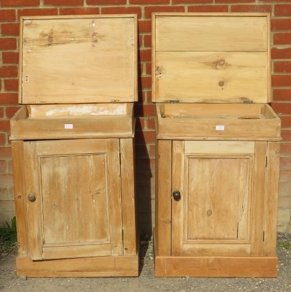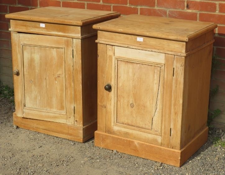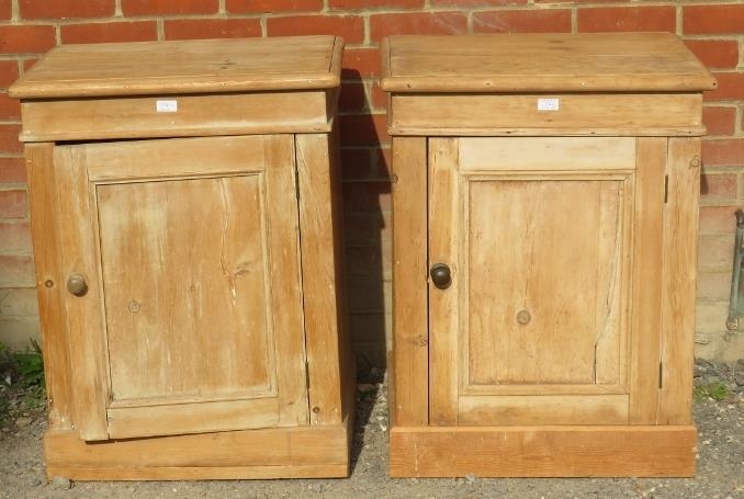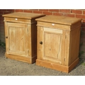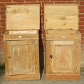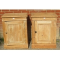 A near pair of antique stripped pine side cabinets, both with fitted internal shelf.