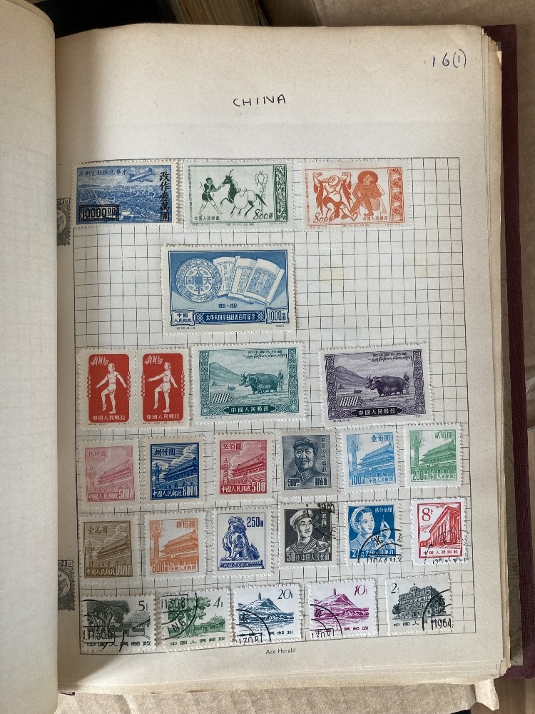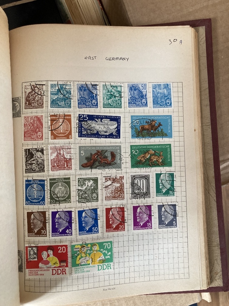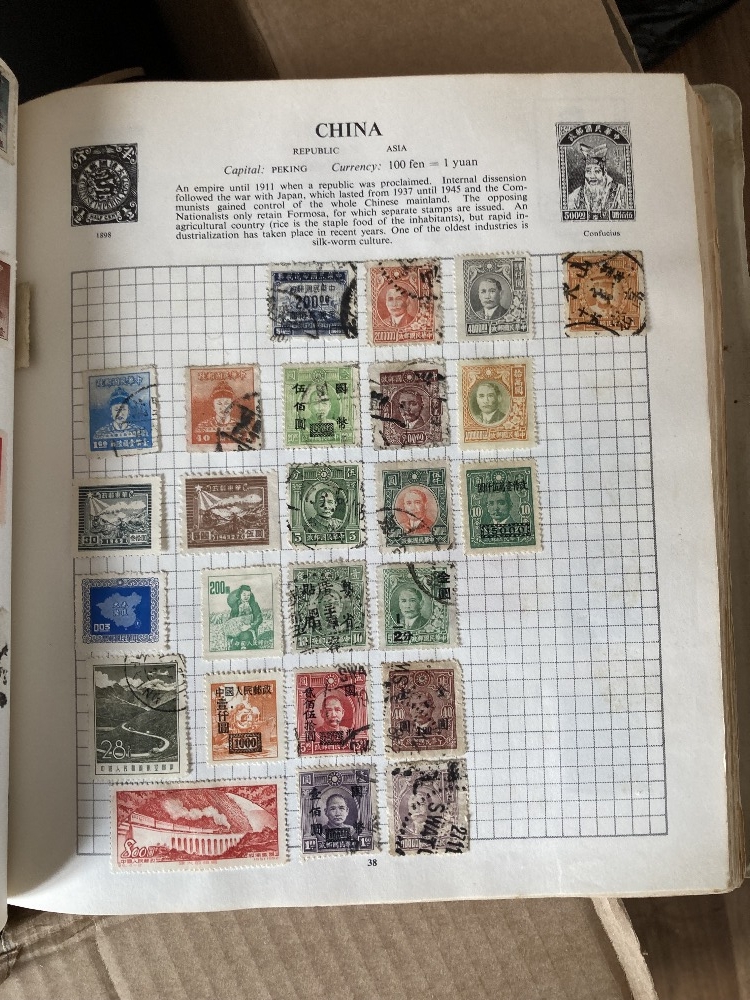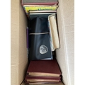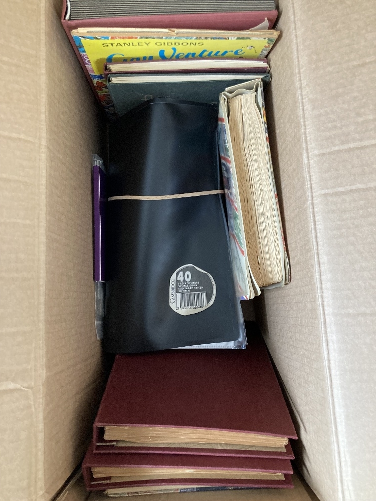 STAMPS WORLD, box with various albums, stockbooks, loose etc. A good rummage and sorting lot with various mint and used.