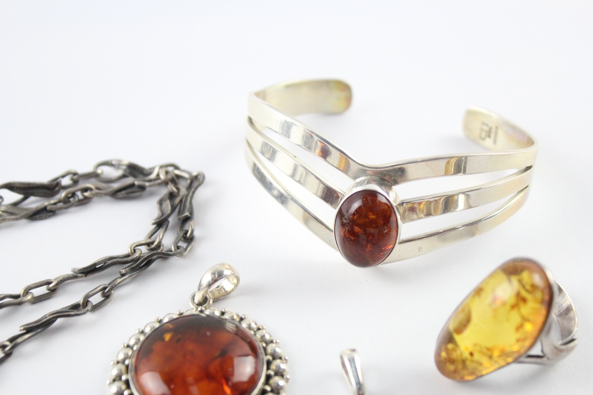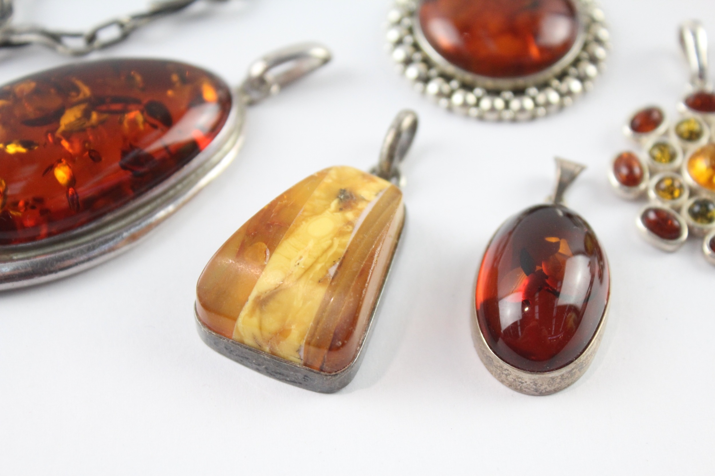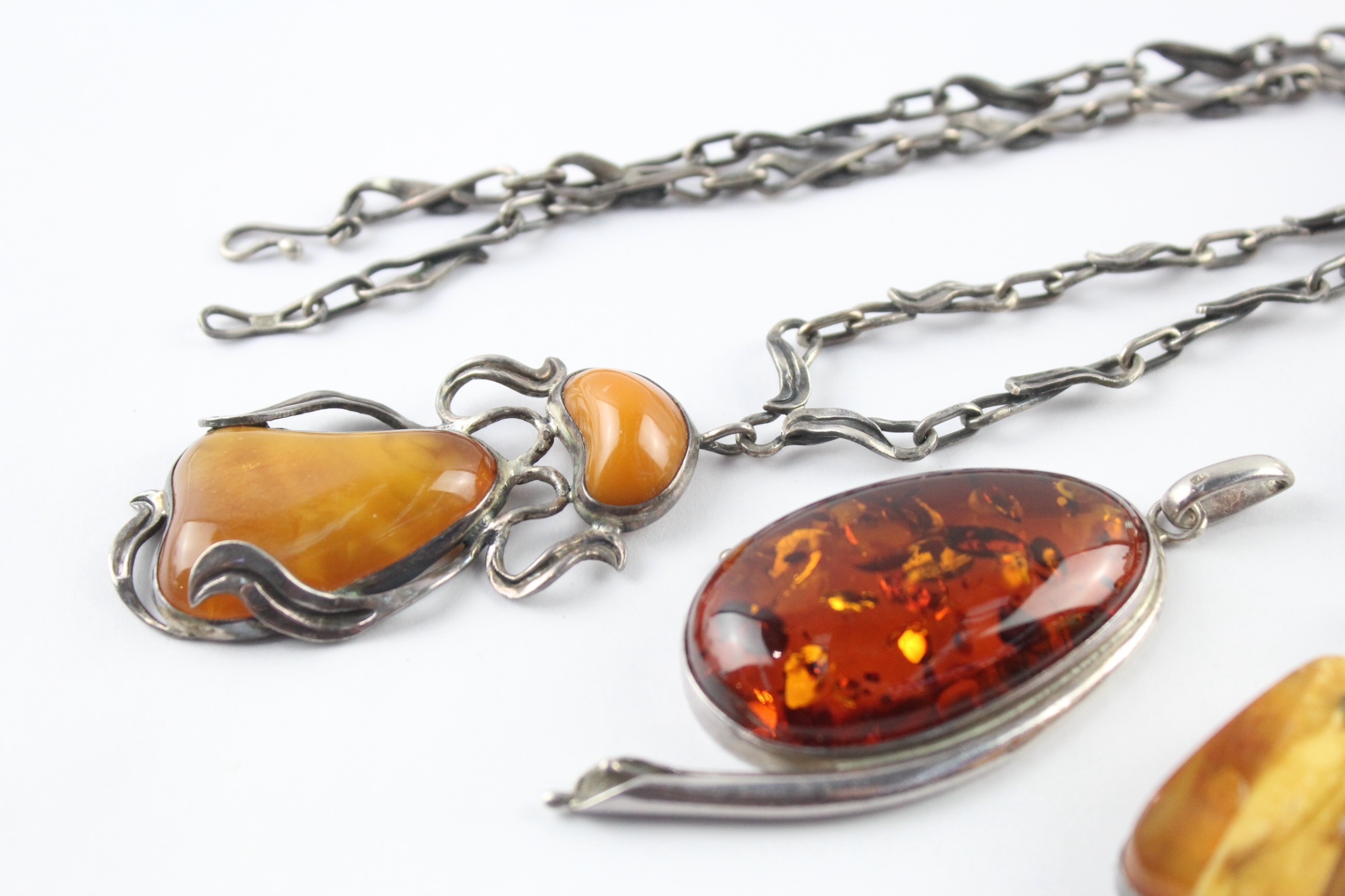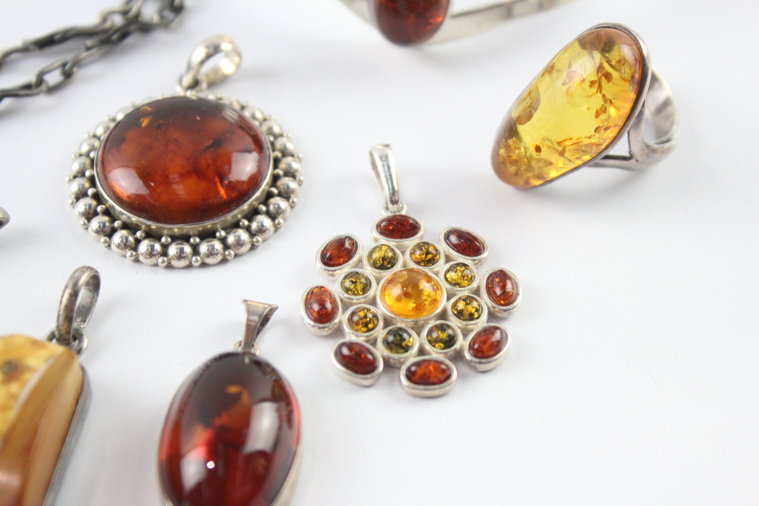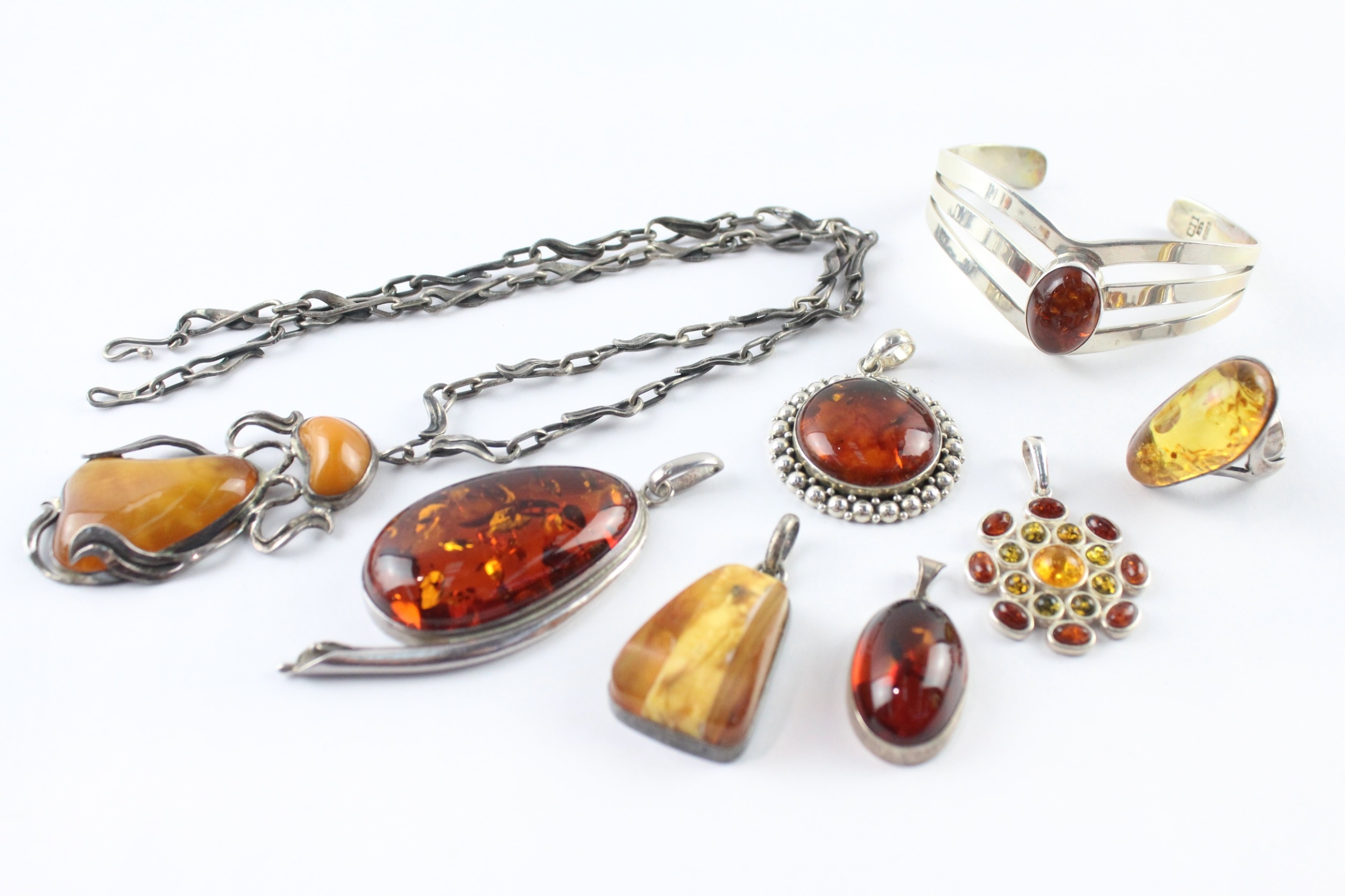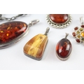 Collection of Sterling Silver Amber Jewellery inc. Modernist, Baltic, Butterscotch x 8 (126g)