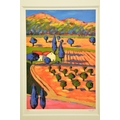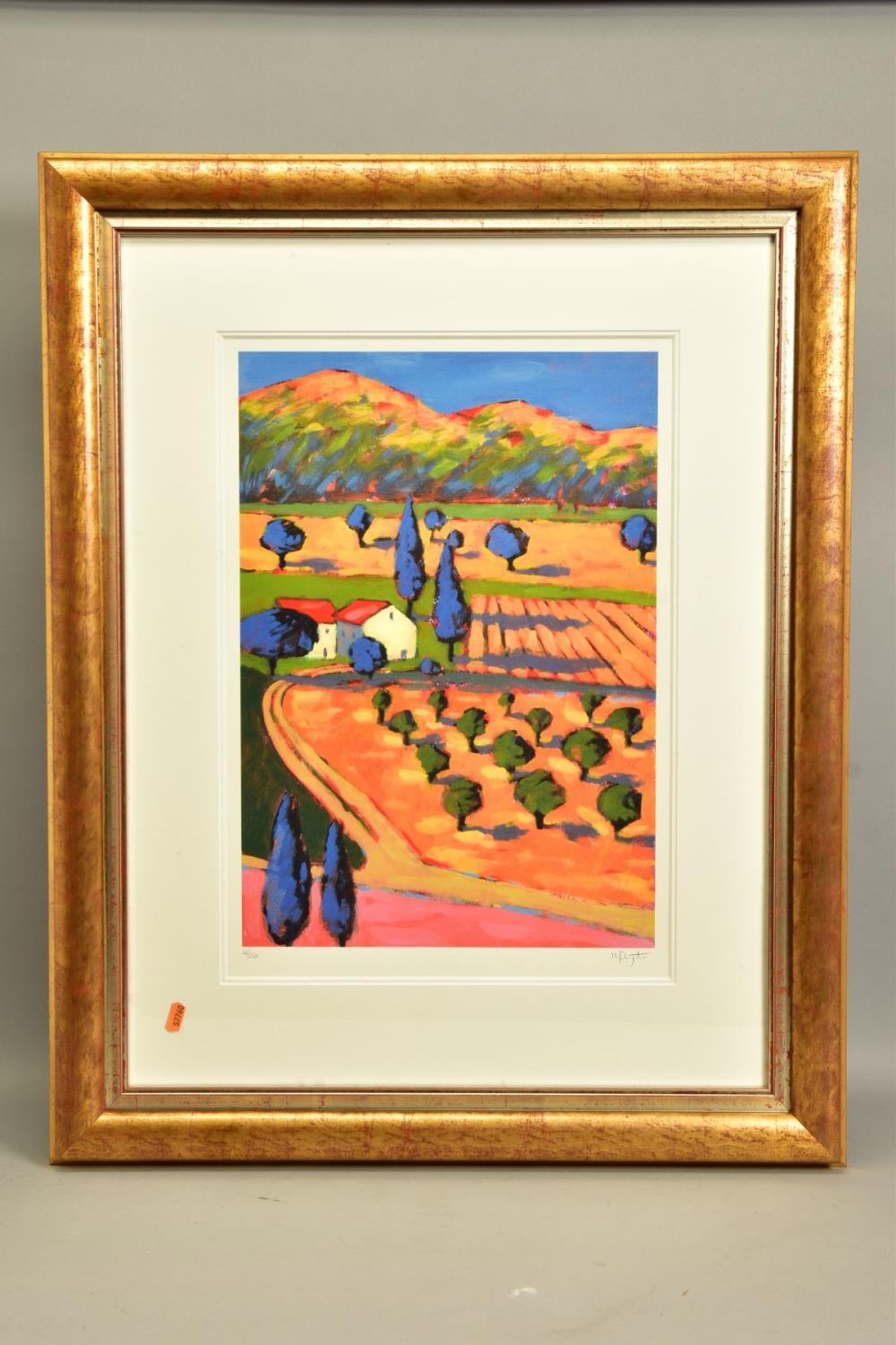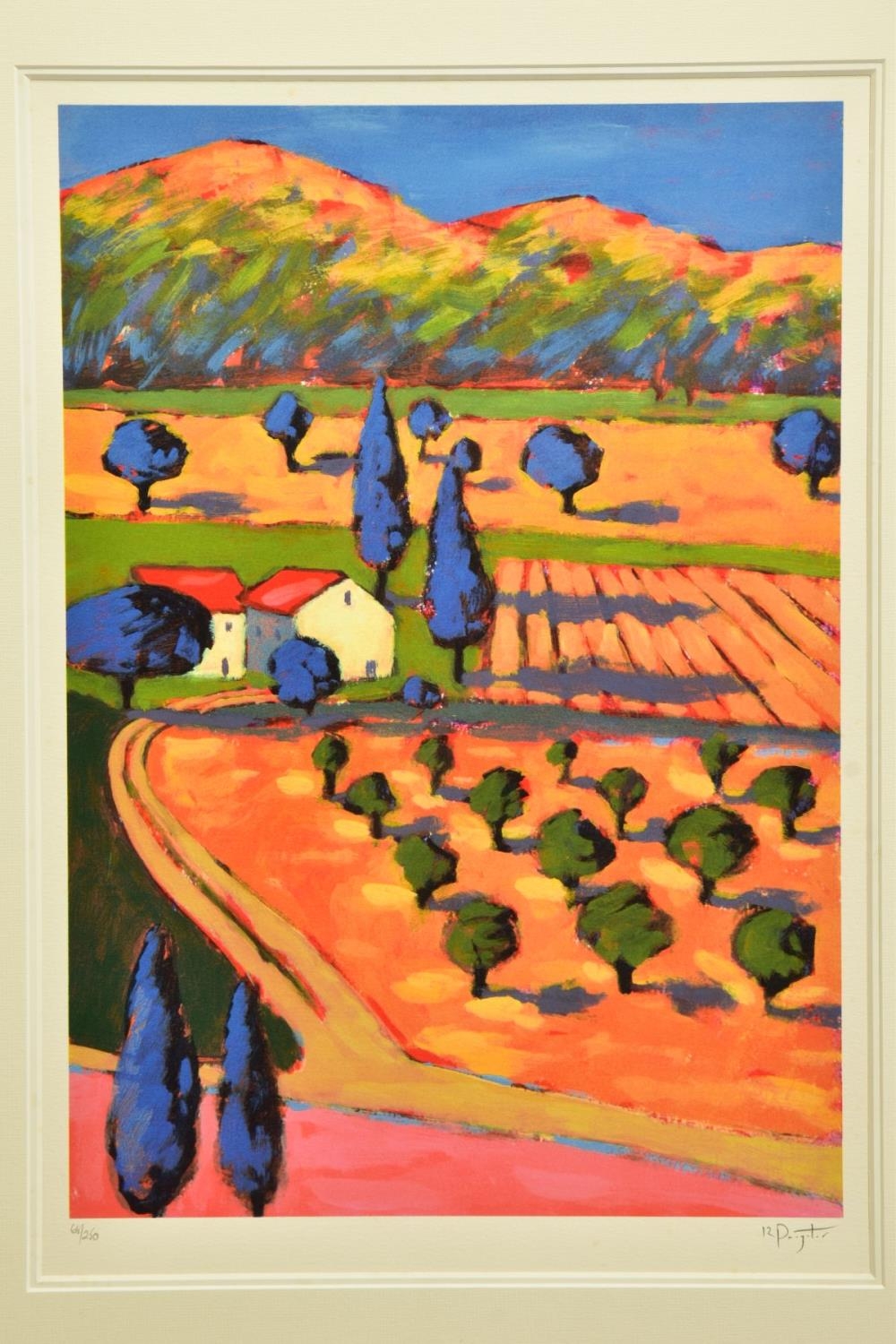 RICHARD PARGETER (BRITISH 1976) 'LE PAYS DES REVES III / THE LAND OF DREAMS III', a signed limited edition print depicting a colourful French landscape, 68/250 no certificate, approximate sizes: image 54cm x 37cm frame 86cm x 69cm, (Condition report: small amount of paint loss to corners of the frame) (artist resale rights apply)