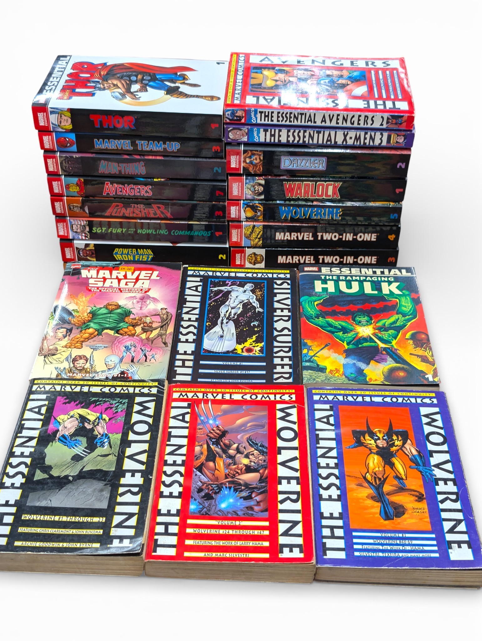 Quantity (22) Marvel Comics Essentials Volume paperbacks, X-Men, Wolverine, Amongst Other Good Examples
