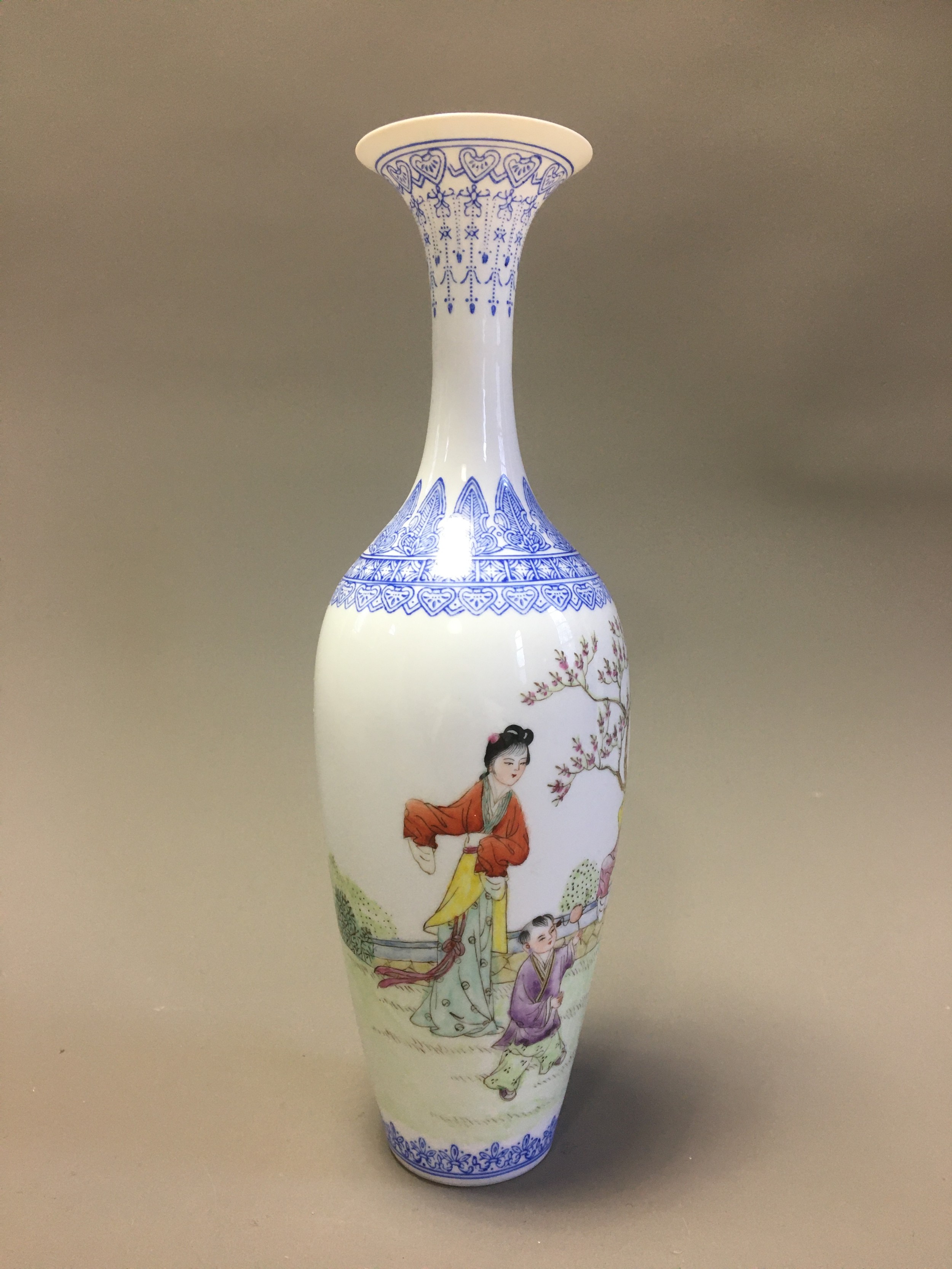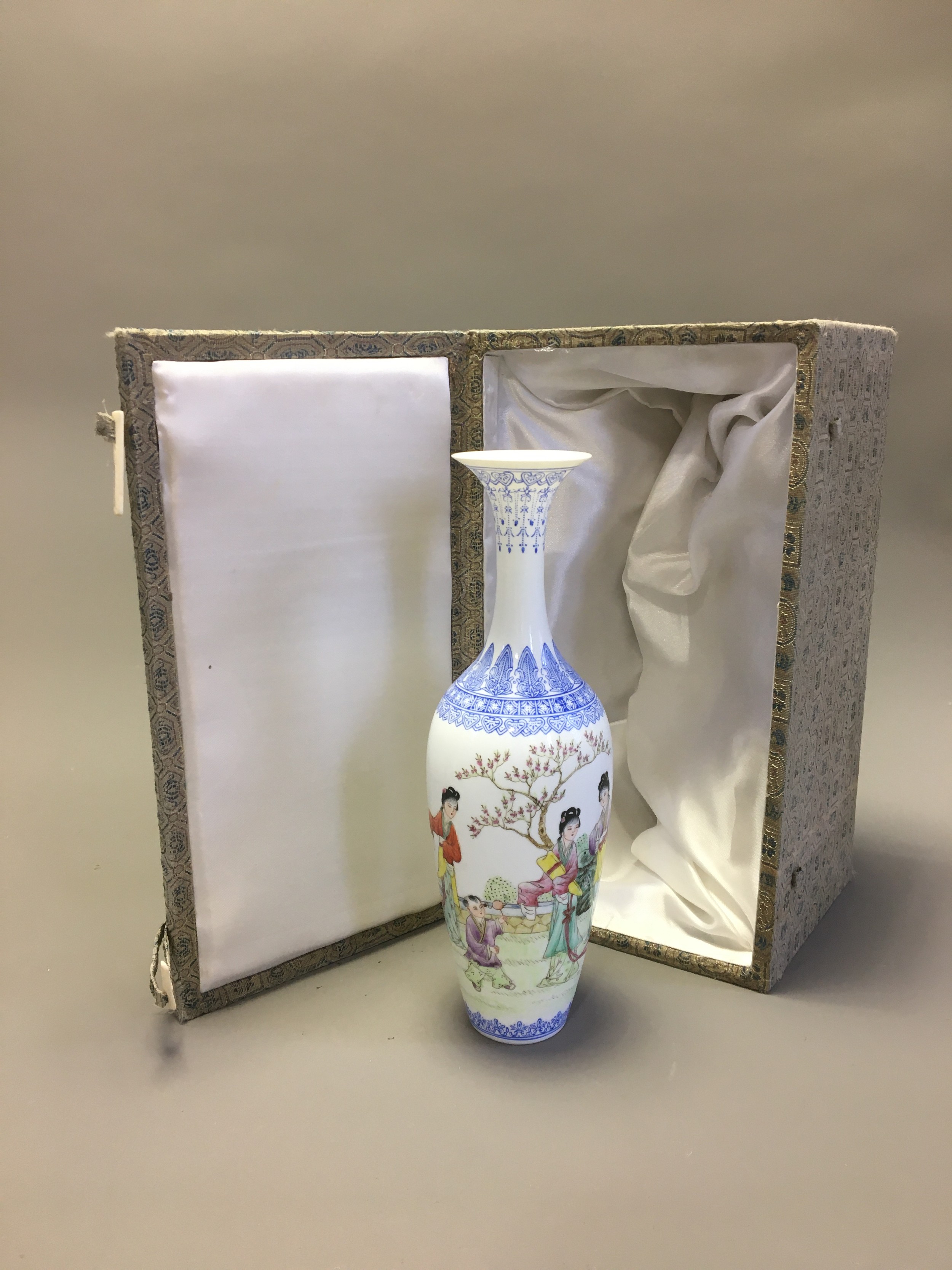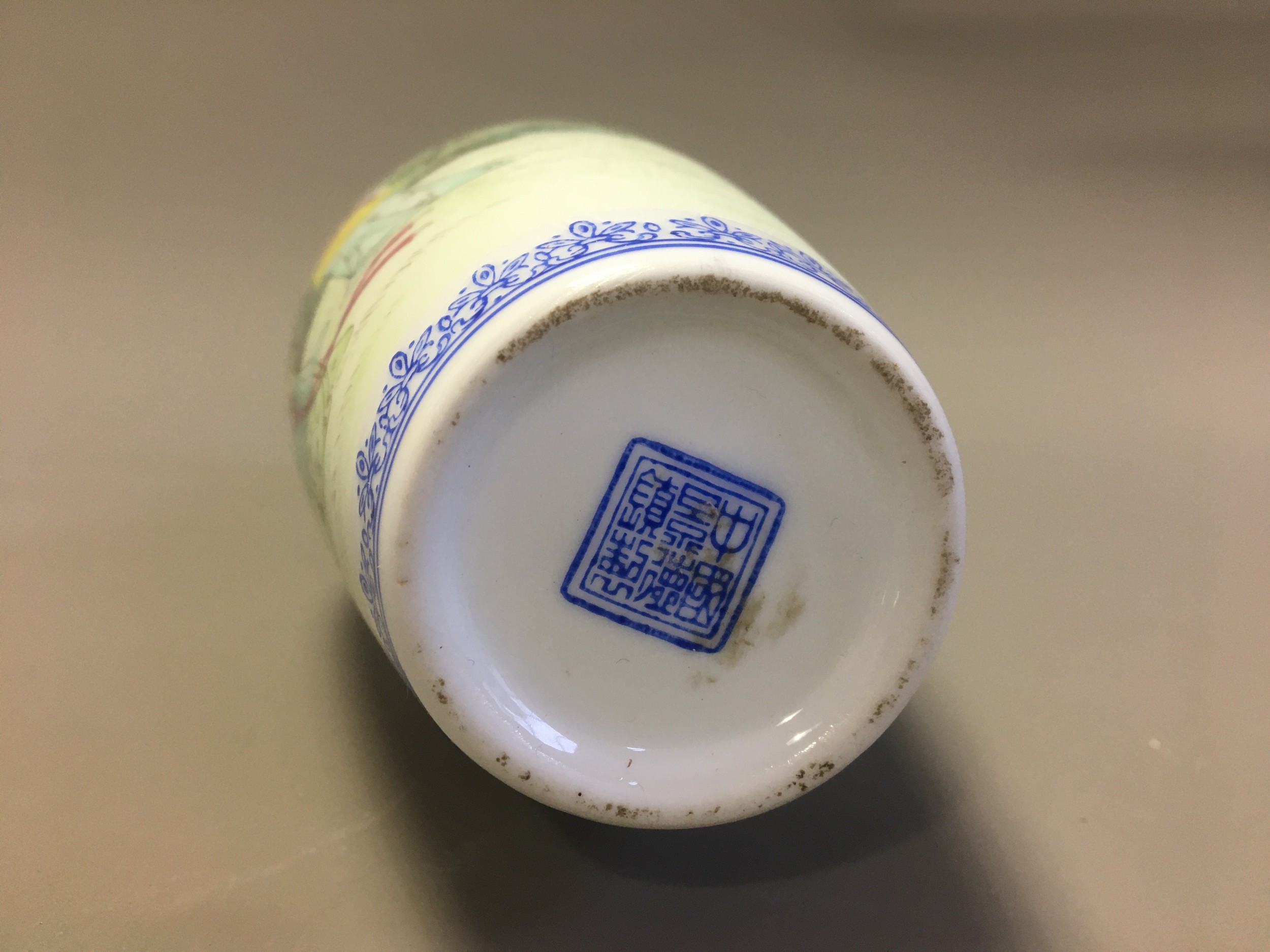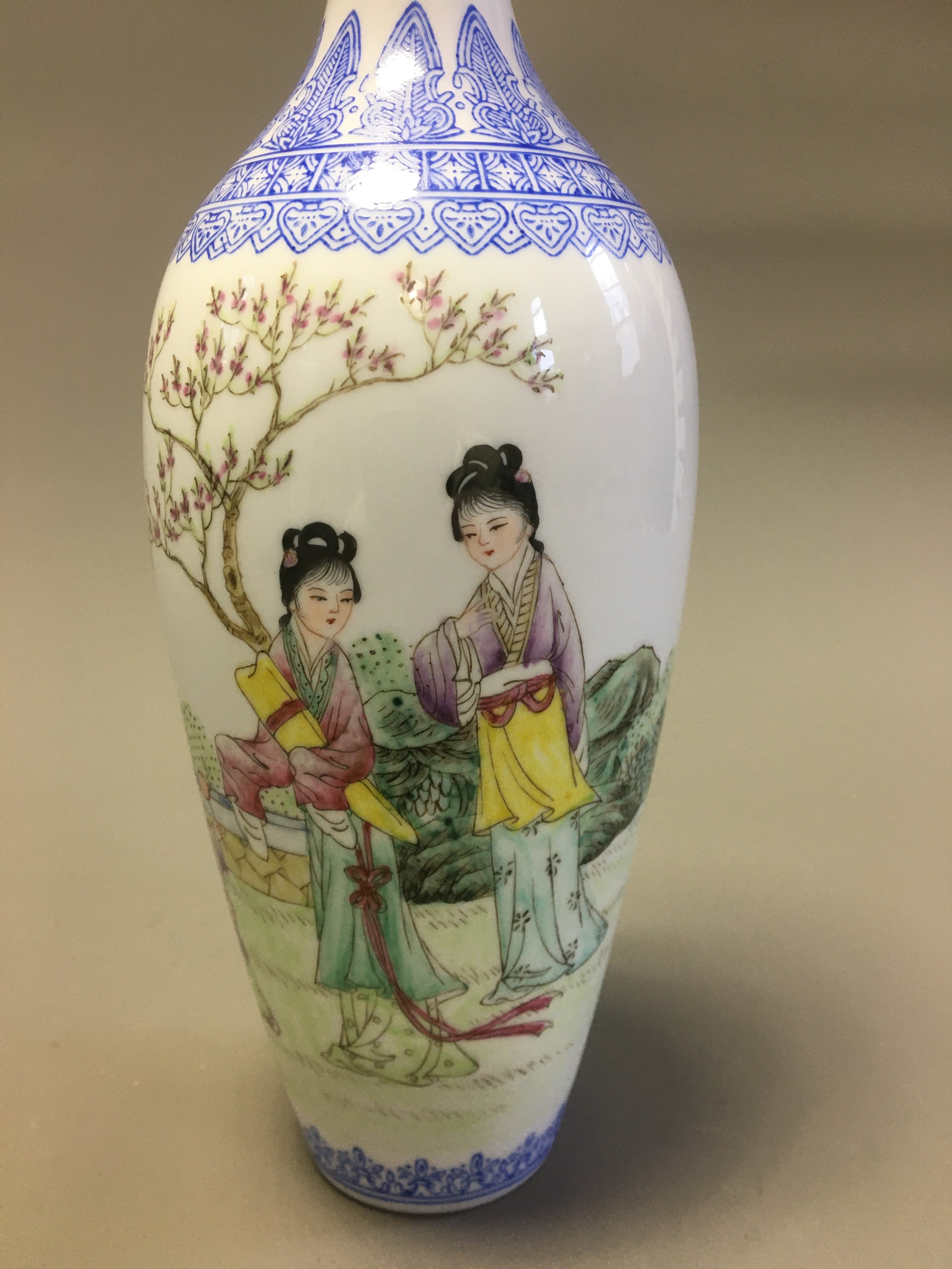 Chinese Republic Period Cased Eggshell Porcelain Vase. Having Hand Painted Figural and Script Decoration with Marks to the Base.