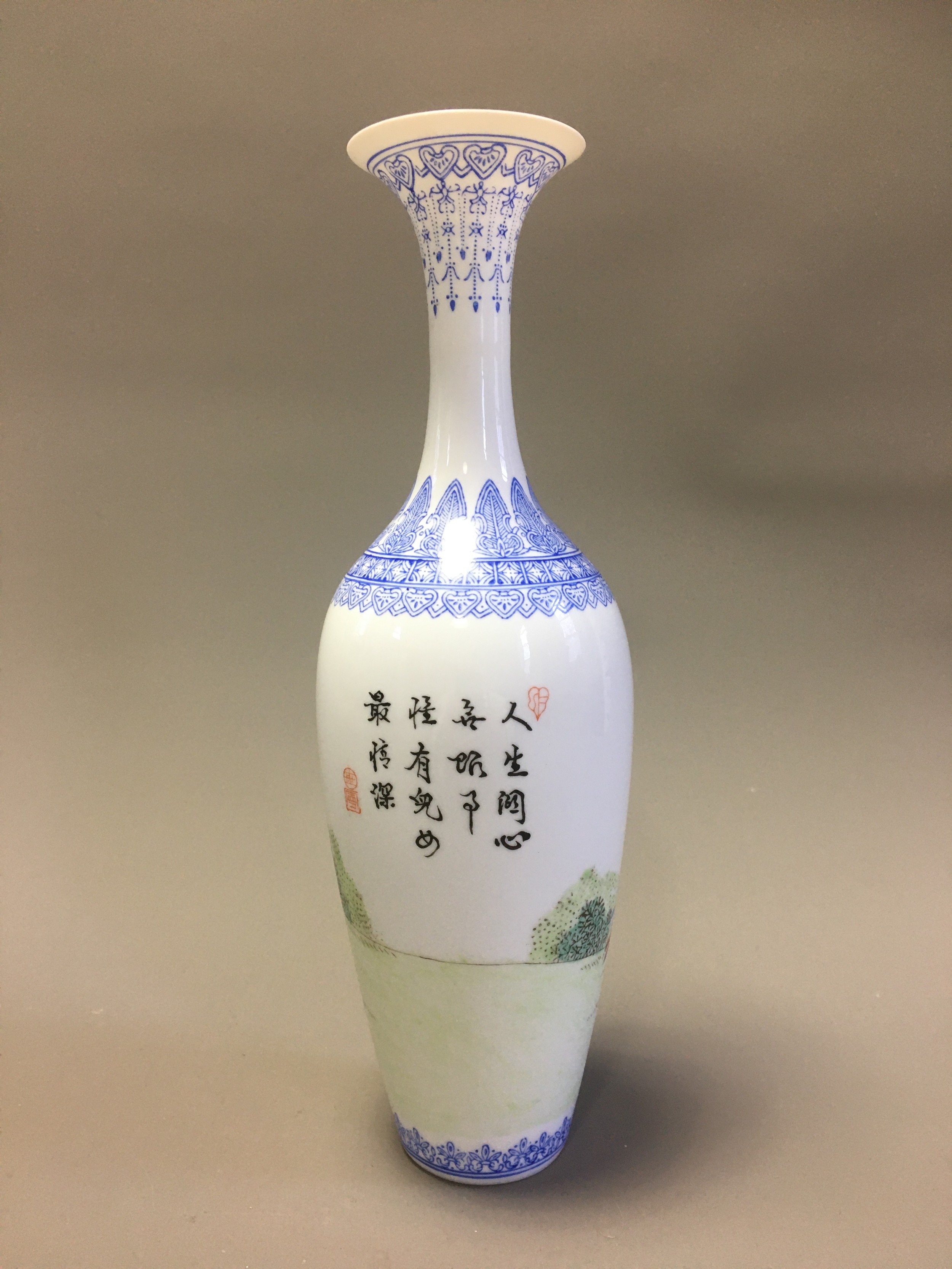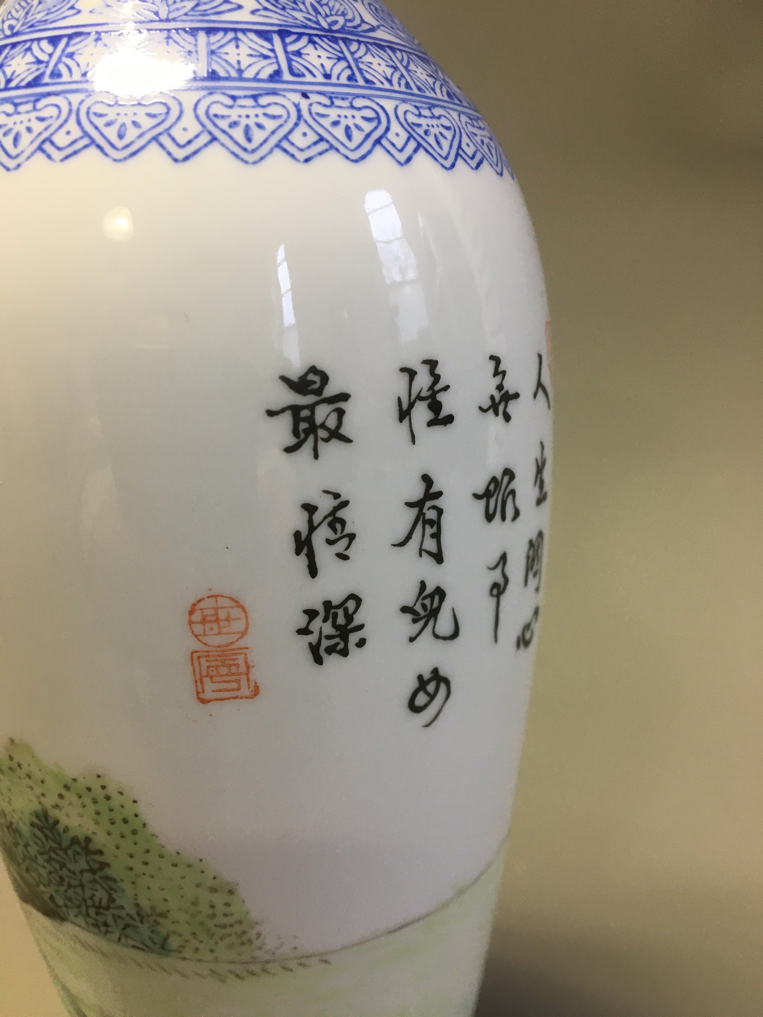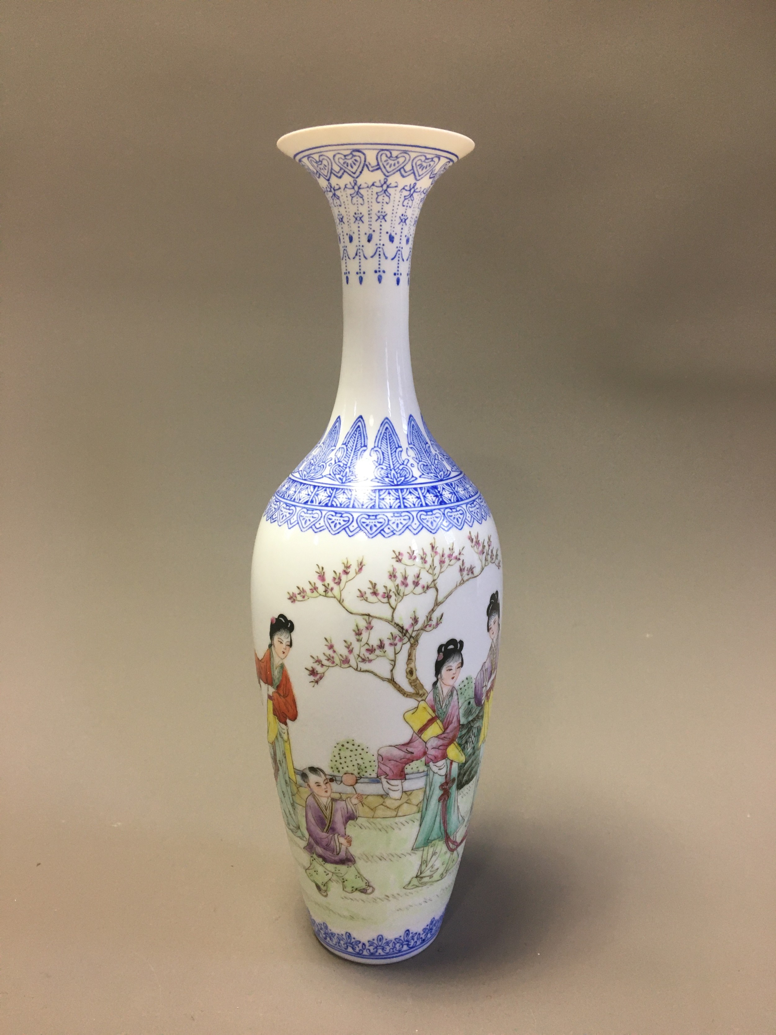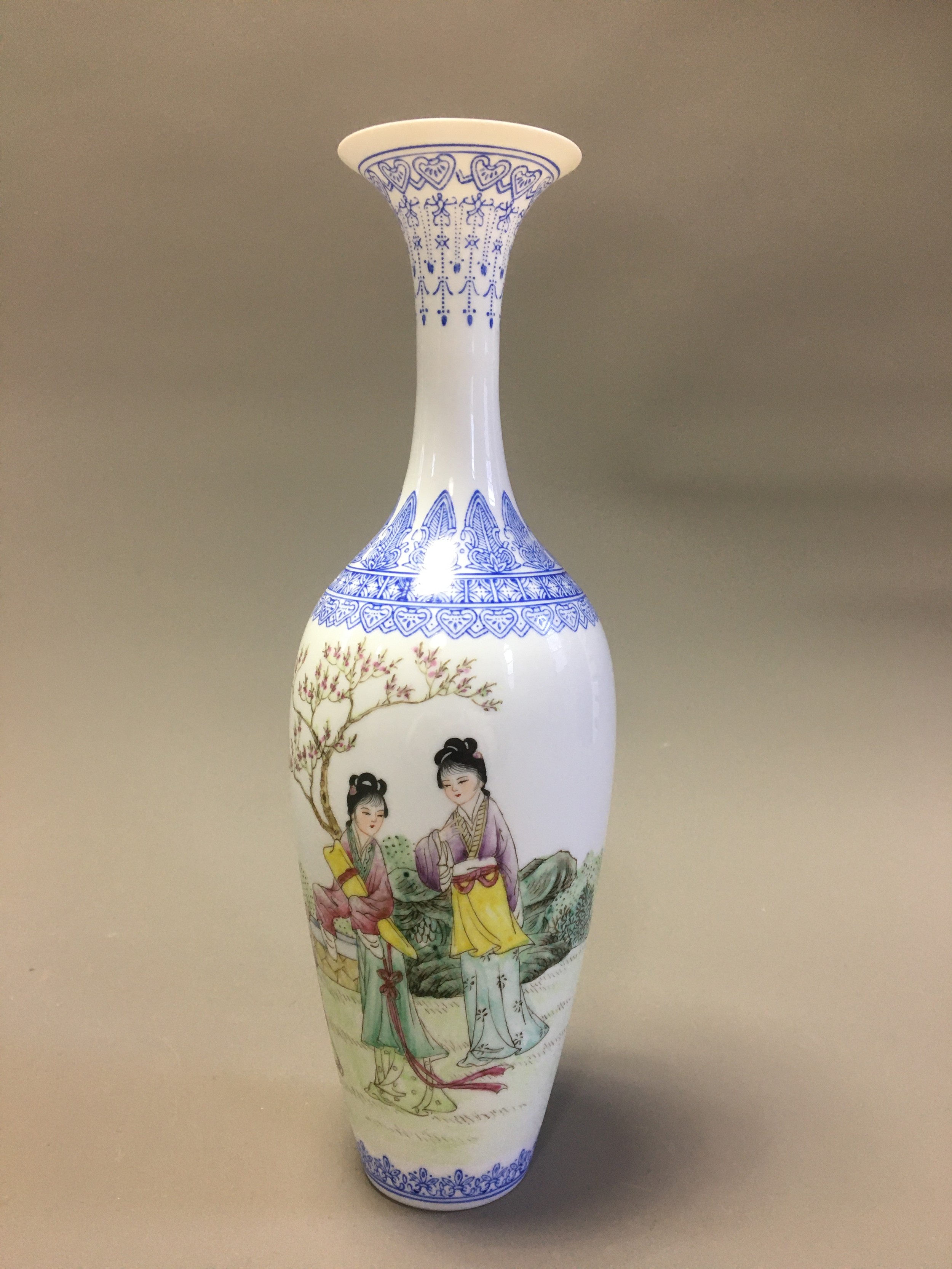 Chinese Republic Period Cased Eggshell Porcelain Vase. Having Hand Painted Figural and Script Decoration with Marks to the Base.