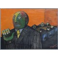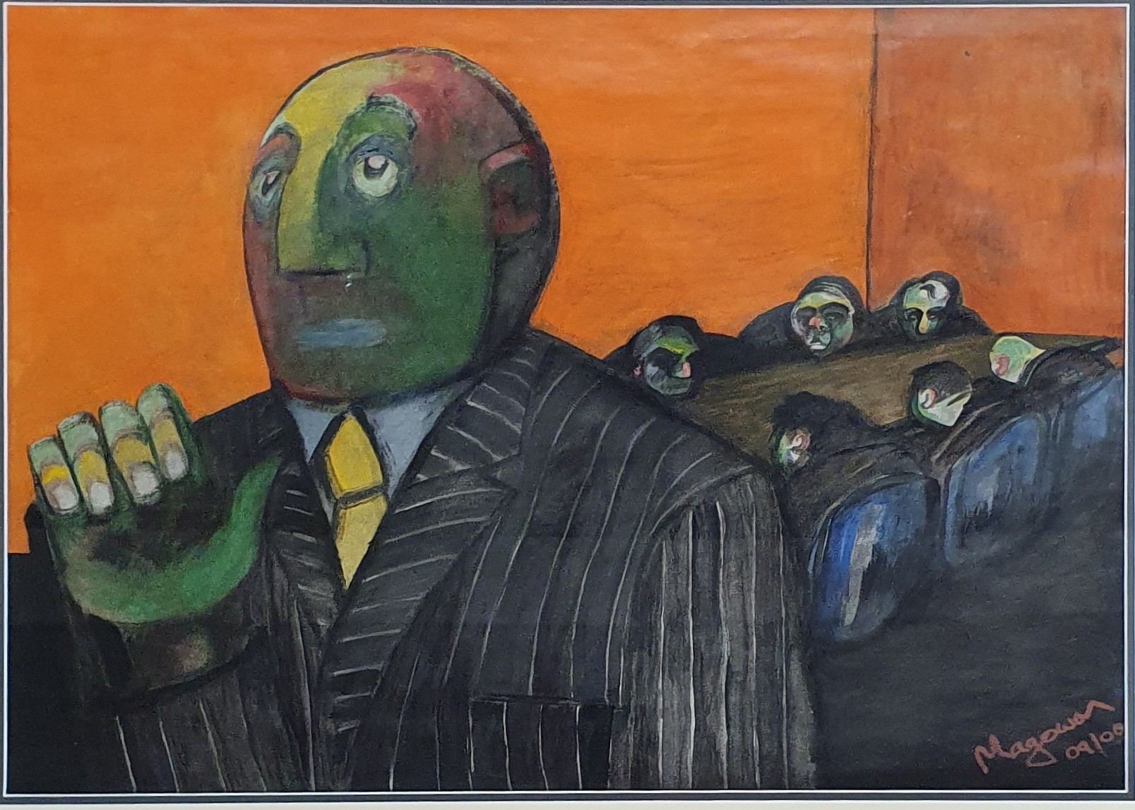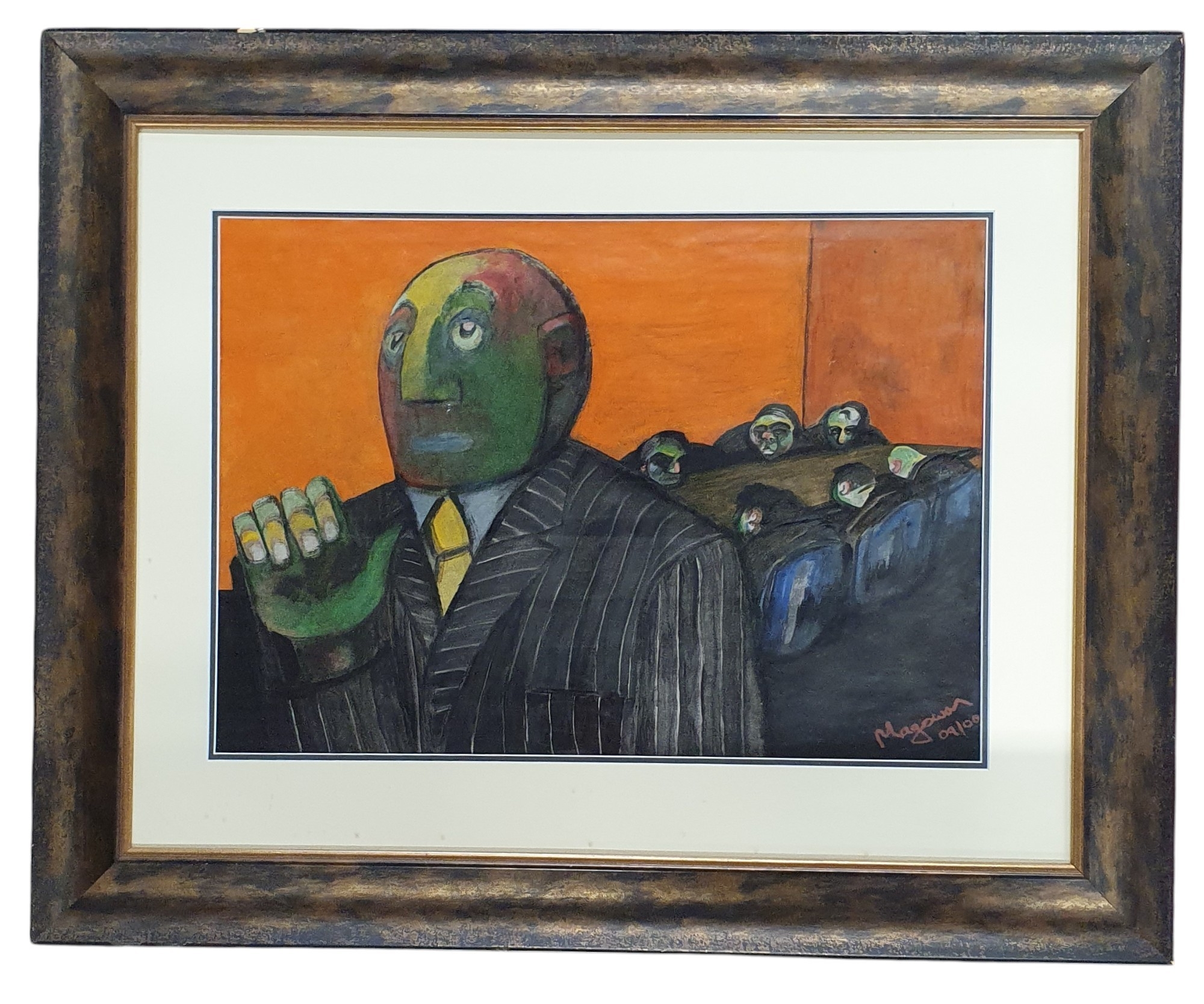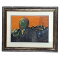 Samantha Magowan (Irish) born 1979. 'Board Meeting' a Watercolour depicting men looking very bored around a boardroom table. Signed LR. 42 x 59 cm approx.